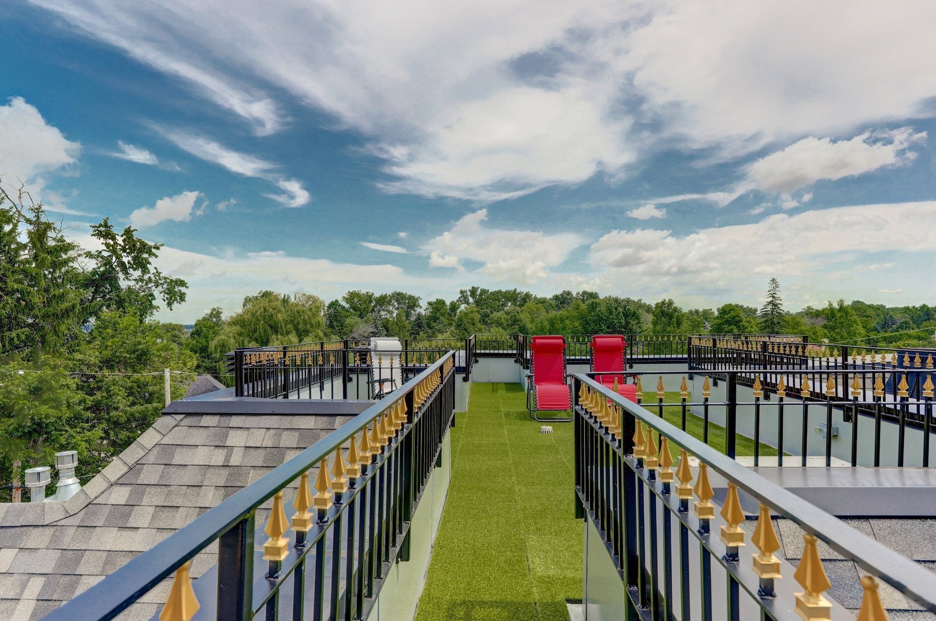 Balcons à chaque niveau, incluant une terrasse sur le toit