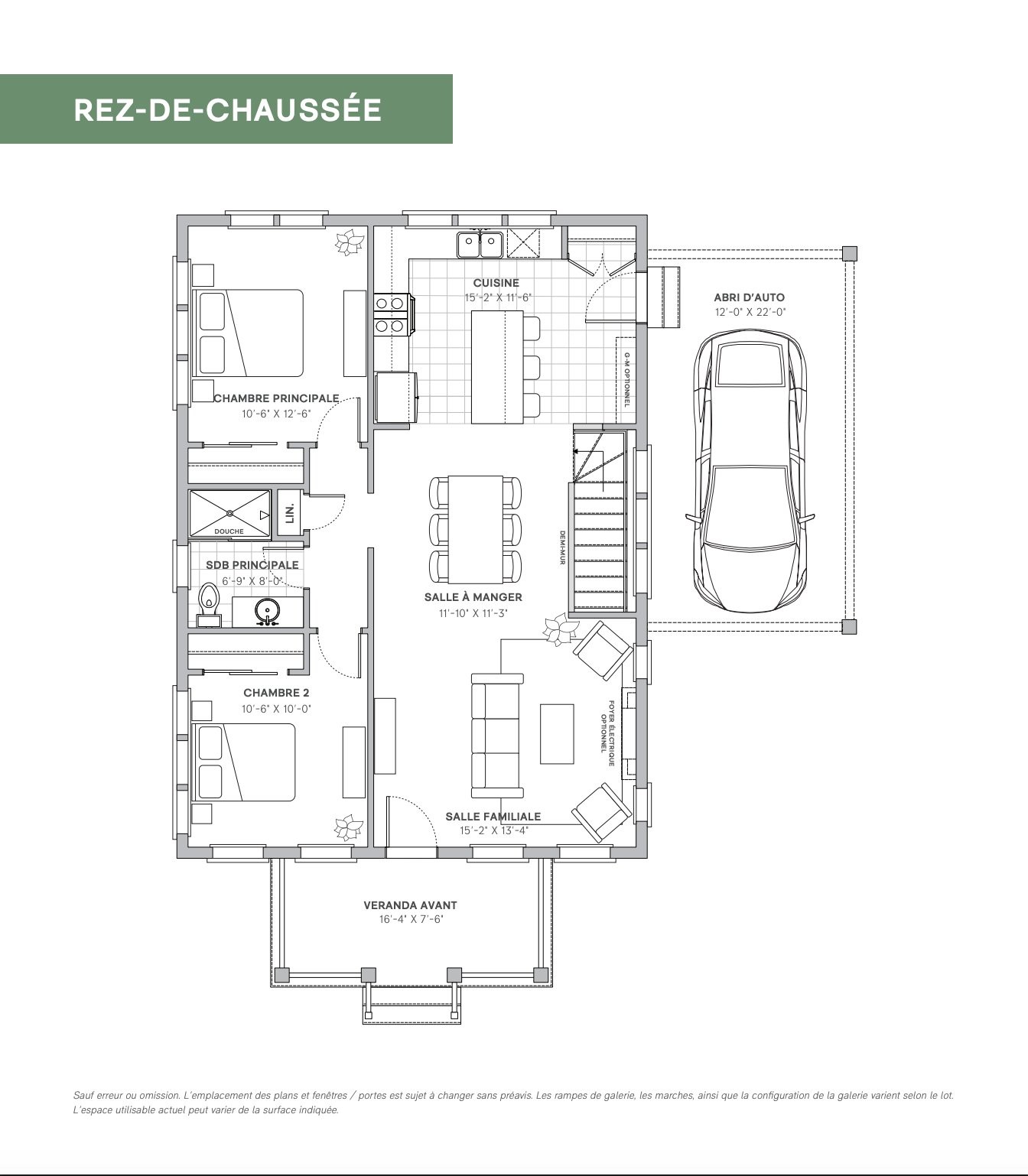 | Chambre à coucher | Rez-de-chaussée | 10.6x10.0 P | Bois | |