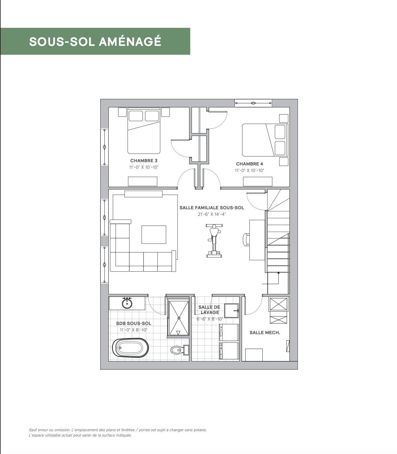 | Chambre à coucher | Sous-sol | 11.0x10.10 P | Plancher flottant | |
