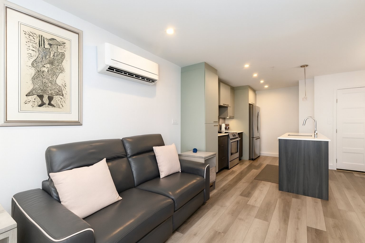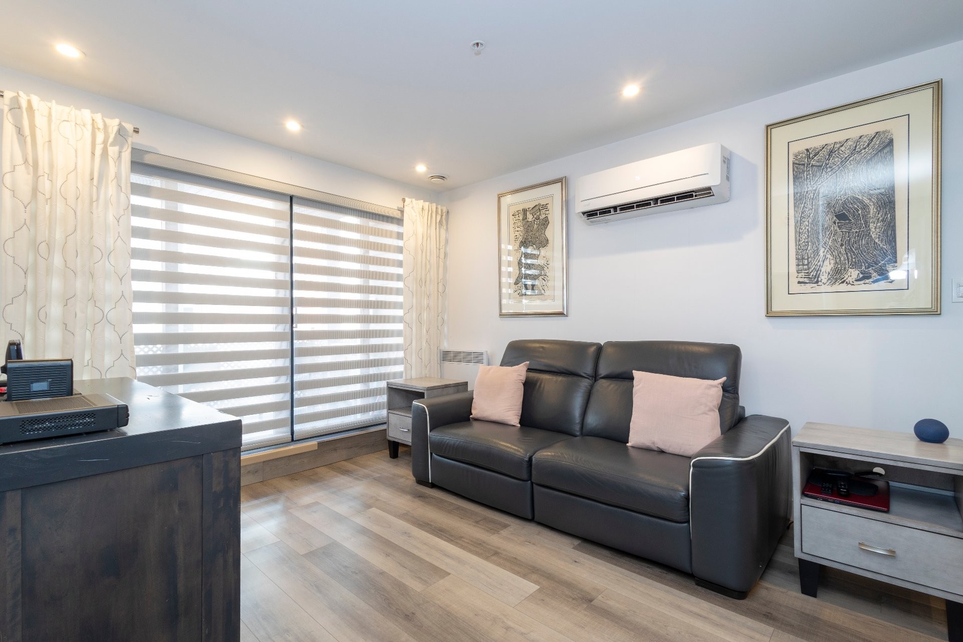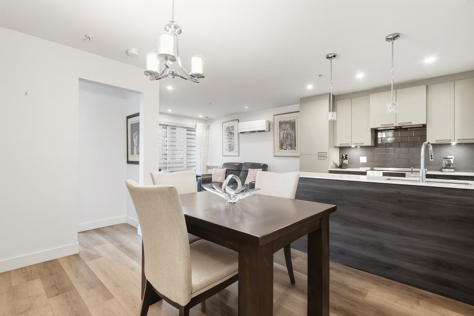 Bienvenue dans ce magnifique condo au premier étage, confortable et élégant. Cet condo fraîchement repeint comprend une chambre, la climatisation, un parking intérieur et un casier privé. Profitez d'une cuisine élégante et de nombreux espaces de rangement, notamment des meubles muraux sur mesure dans la salle à manger, la salle de bains et la chambre. Accédez facilement à votre terrasse privée directement depuis la salle à manger, idéale pour prendre votre café le matin ou vous détendre le soir. Les espaces communs comprennent une piscine et jacuzzi. À proximité des commerces, restaurants, des transport en commun et autoroutes.