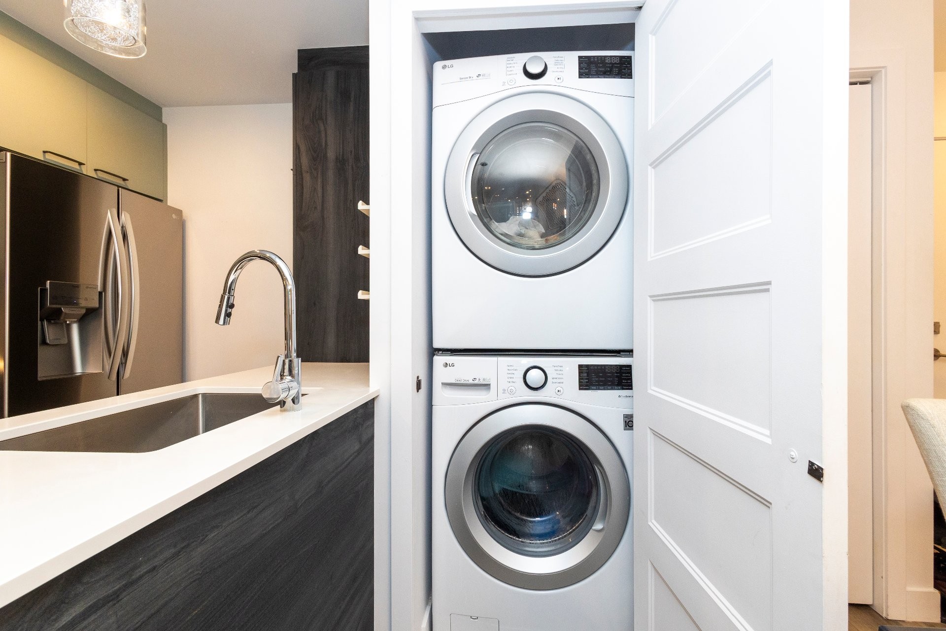 Lave-vaisselle, micro-ondes, laveuse, sècheuse, rideaux, placards encastrés, luminaires fixes, télécommande de garage