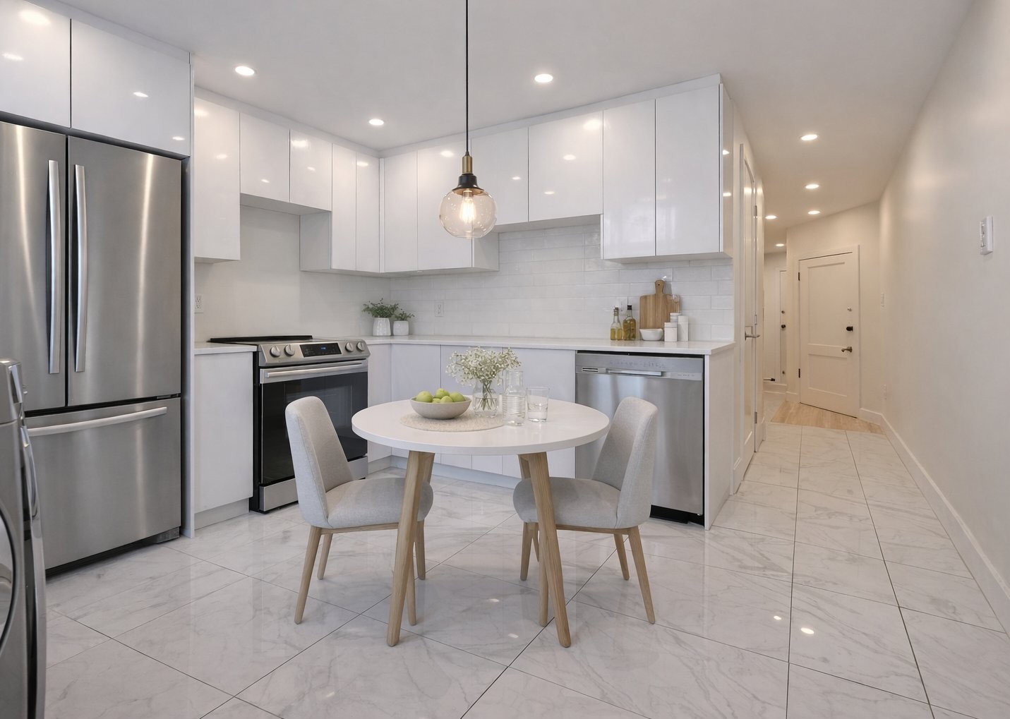 L'unité est entièrement rénovée avec goût et est louée avec tous les électroménagers inclus, offrant une solution clé en main pour le locataire.