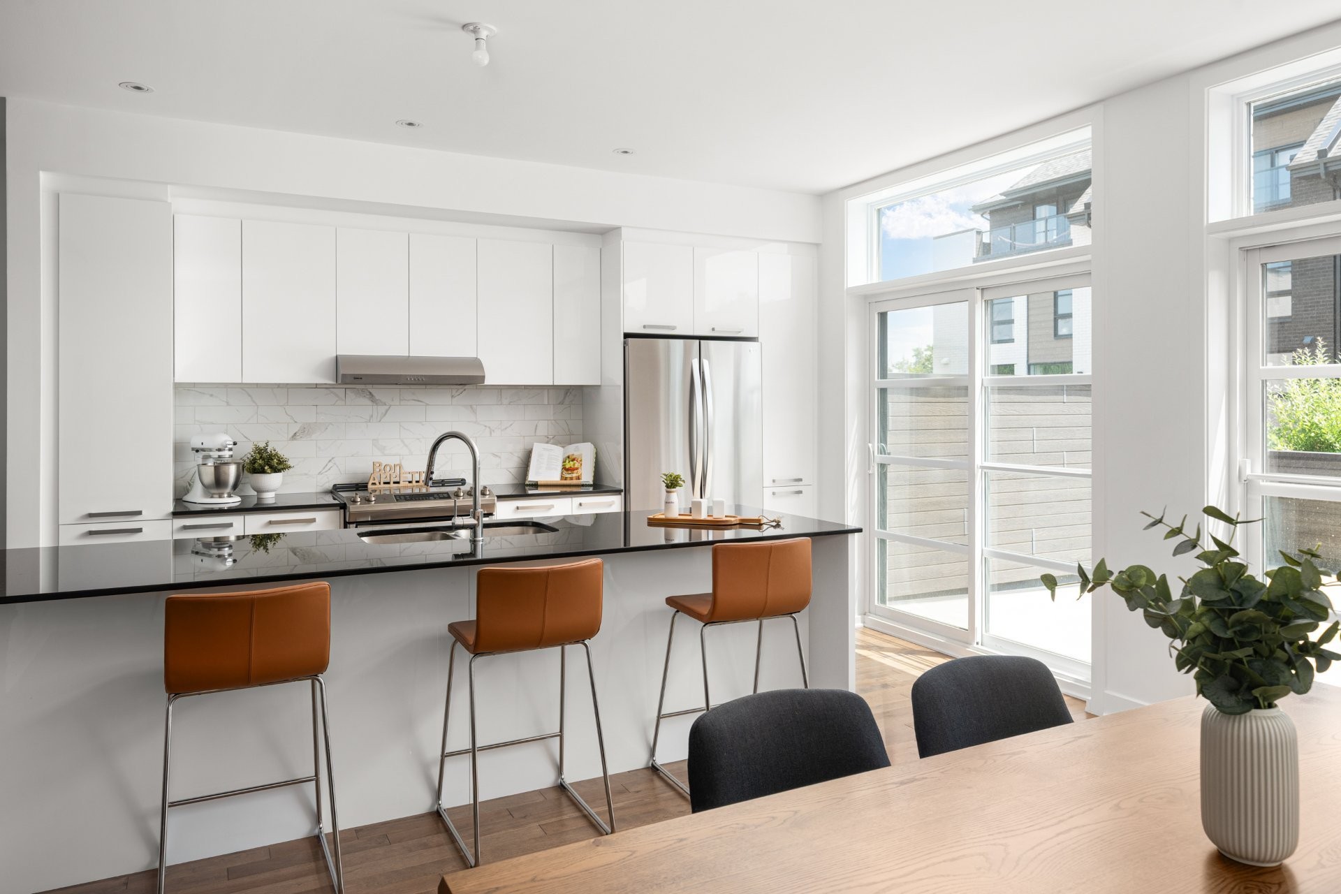 La maison de ville exécutive certifiée LEED dispose d'un patio principal orienté au sud et d'un balcon en mezzanine et est située dans un ca...