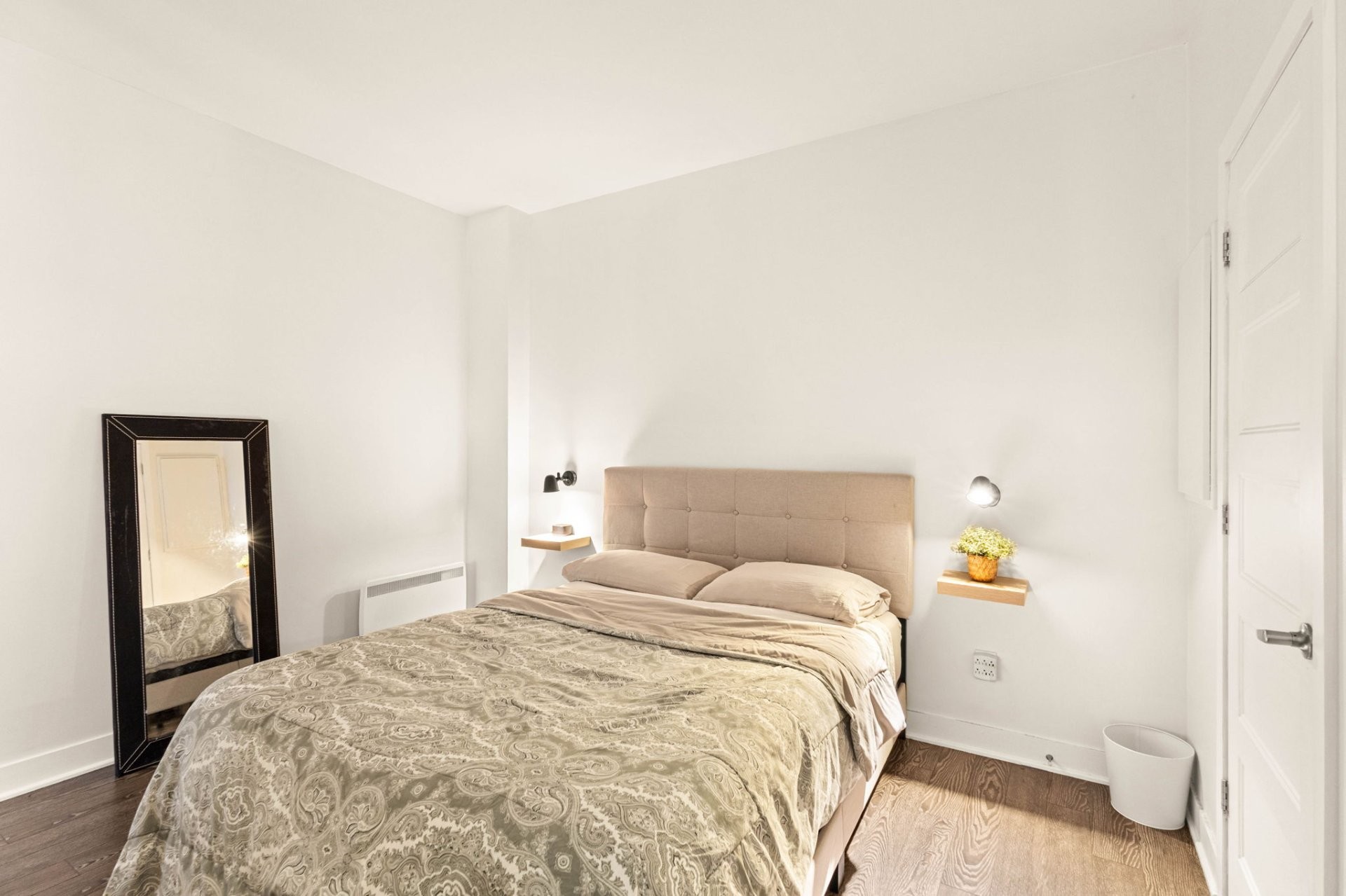 Climatisation murale, réfrigérateur, cuisinière, lave-vaisselle, laveuse, sécheuse, Internet, électricité, chauffage, couvre-fenêtres, luminaires, meubles, lit et sommier, tous les petits appareils électroménagers de cuisine, couverts, assiettes, plats, friteuse à air chaud, TV.