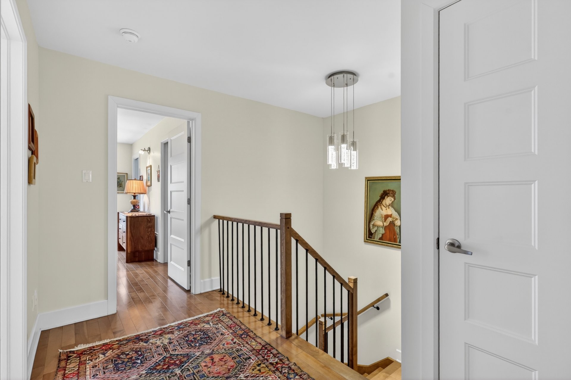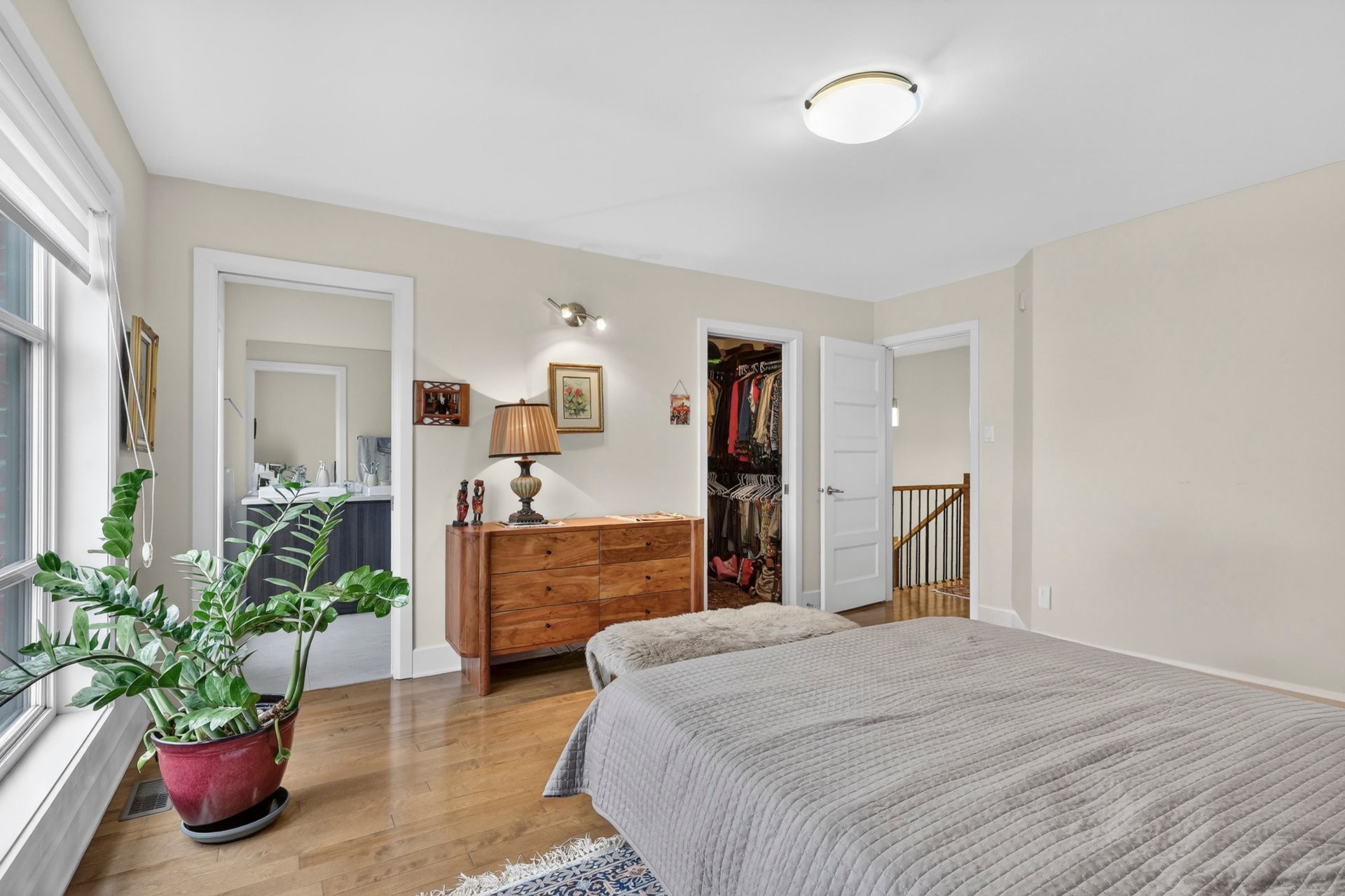 Grande chambre principale avec salle de bains attenante et walk-in. Deux autres chambres de bonnes dimensions ainsi qu'une salle de bains familiale avec douche indépendante et bain podium. Planchers de bois franc partout.
