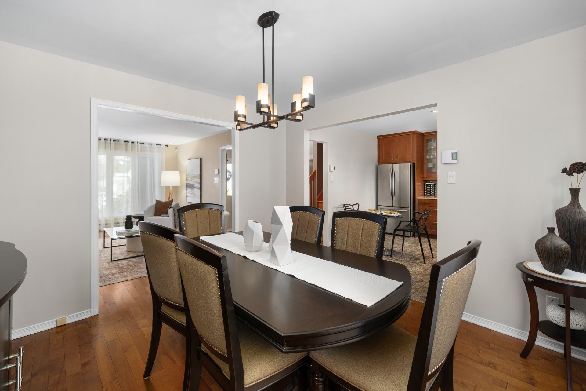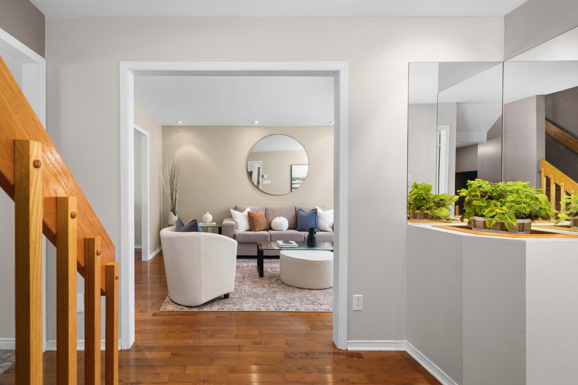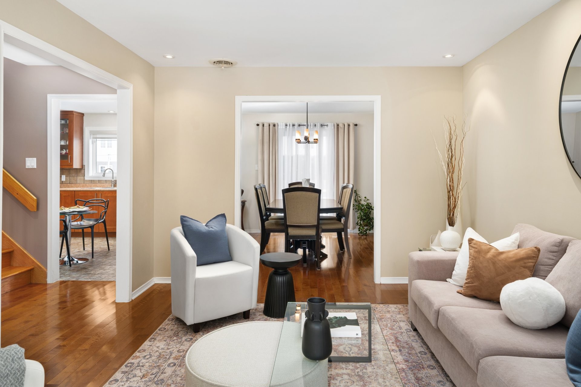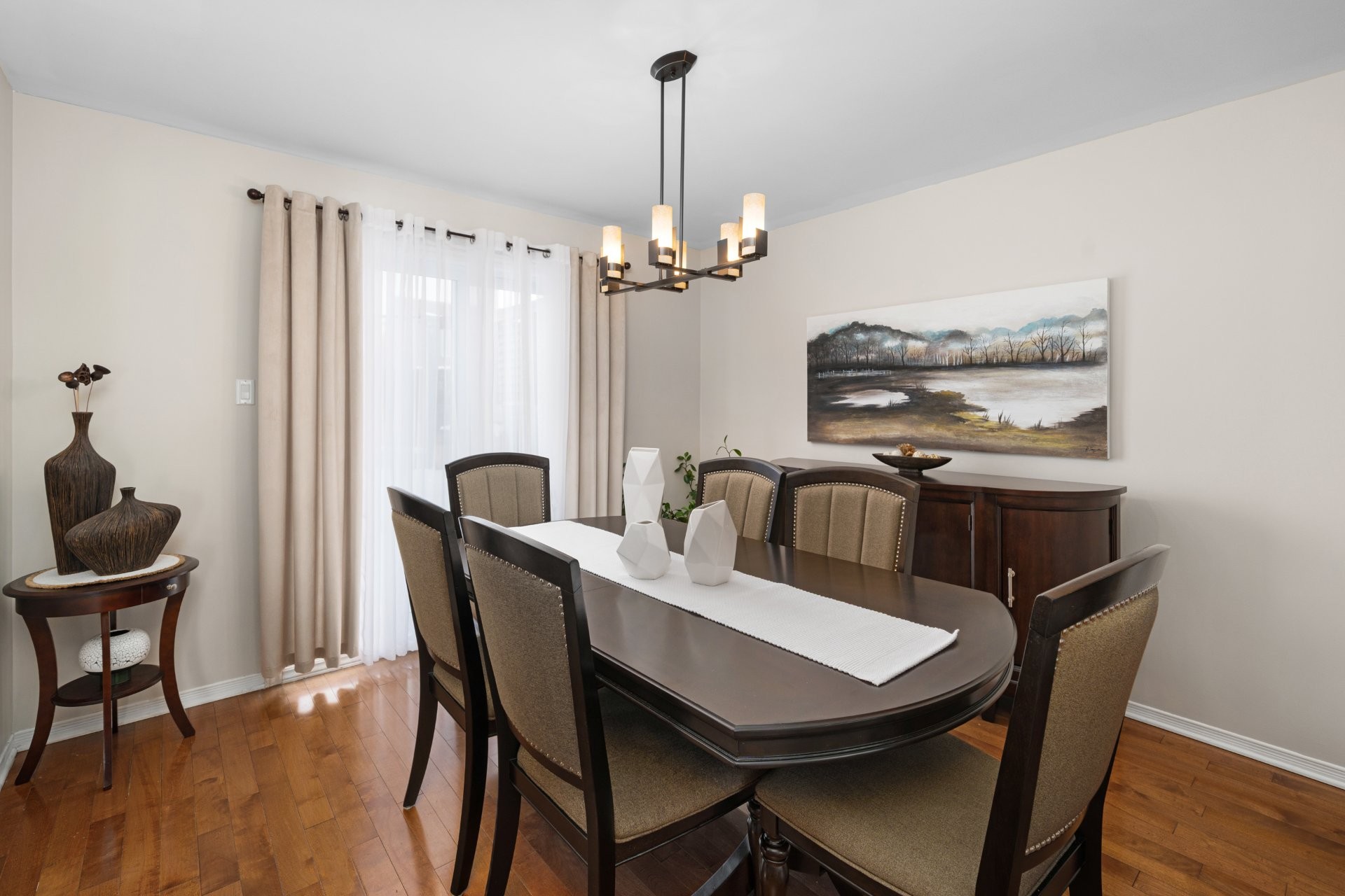 Entrée ouverte et accueillante menant à un salon lumineux, une salle à manger formelle ainsi qu'une vaste cuisine offrant de généreuses surfaces de comptoir et de rangement. Une salle d'eau pratique et un accès intérieur au garage complètent ce niveau.