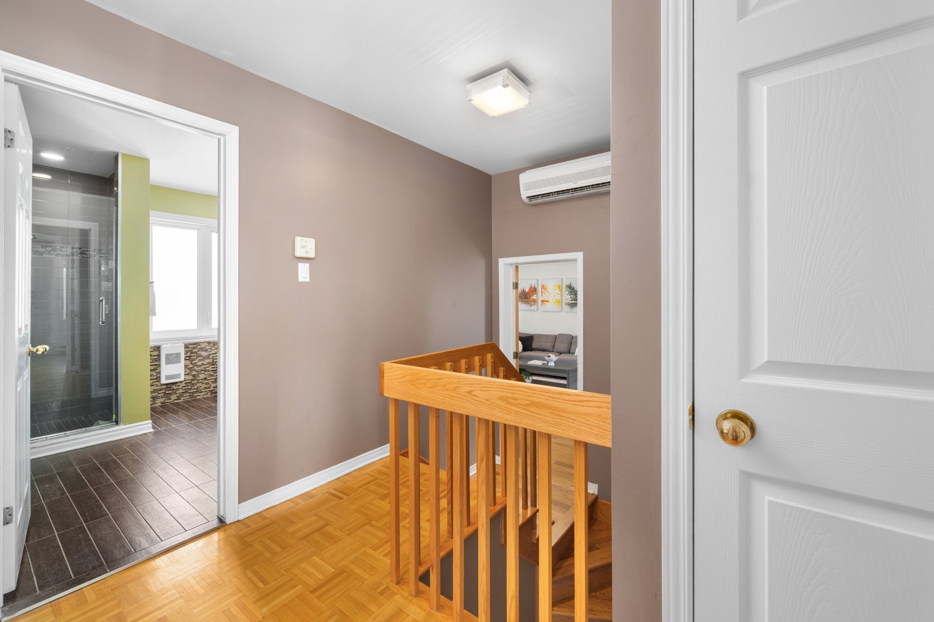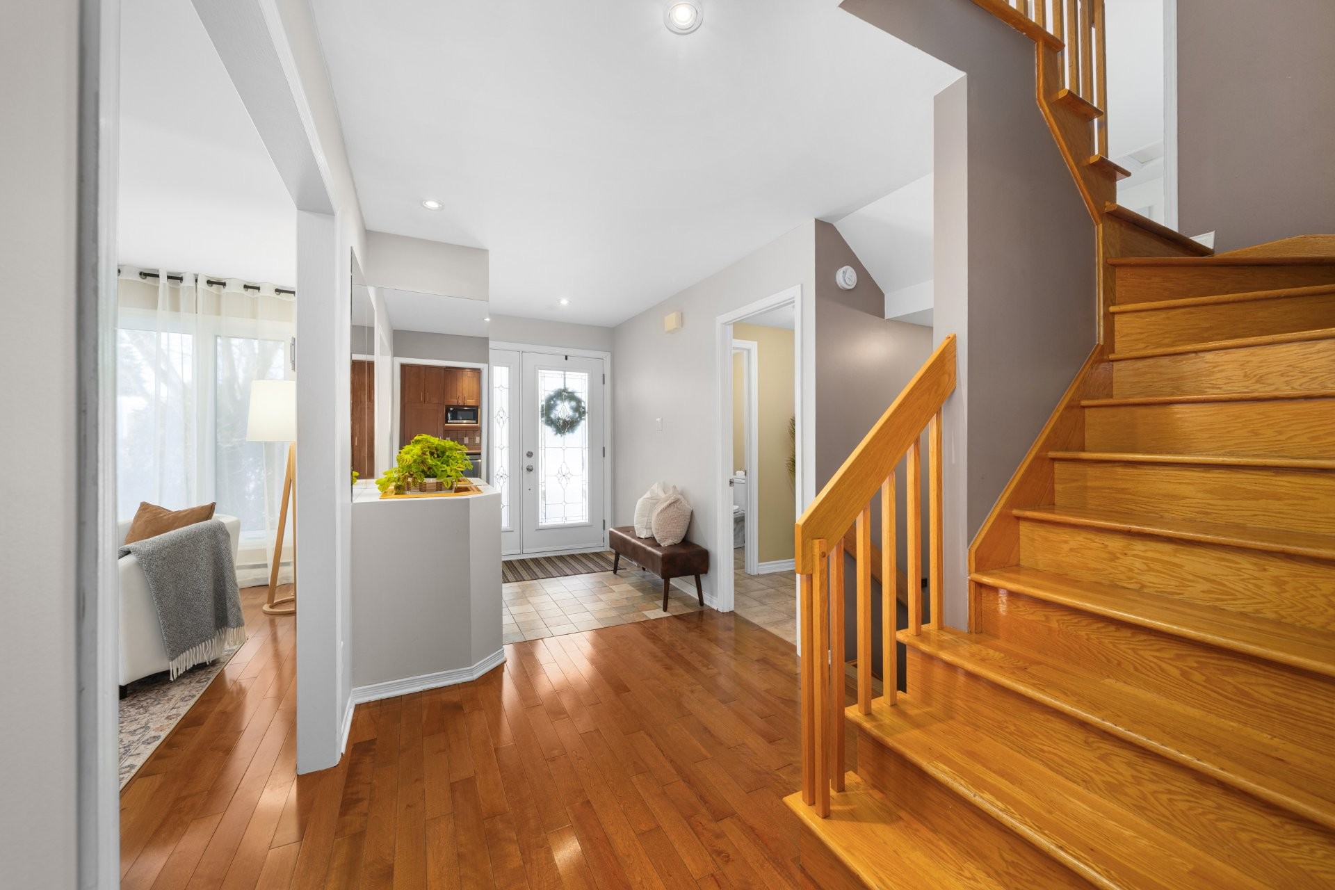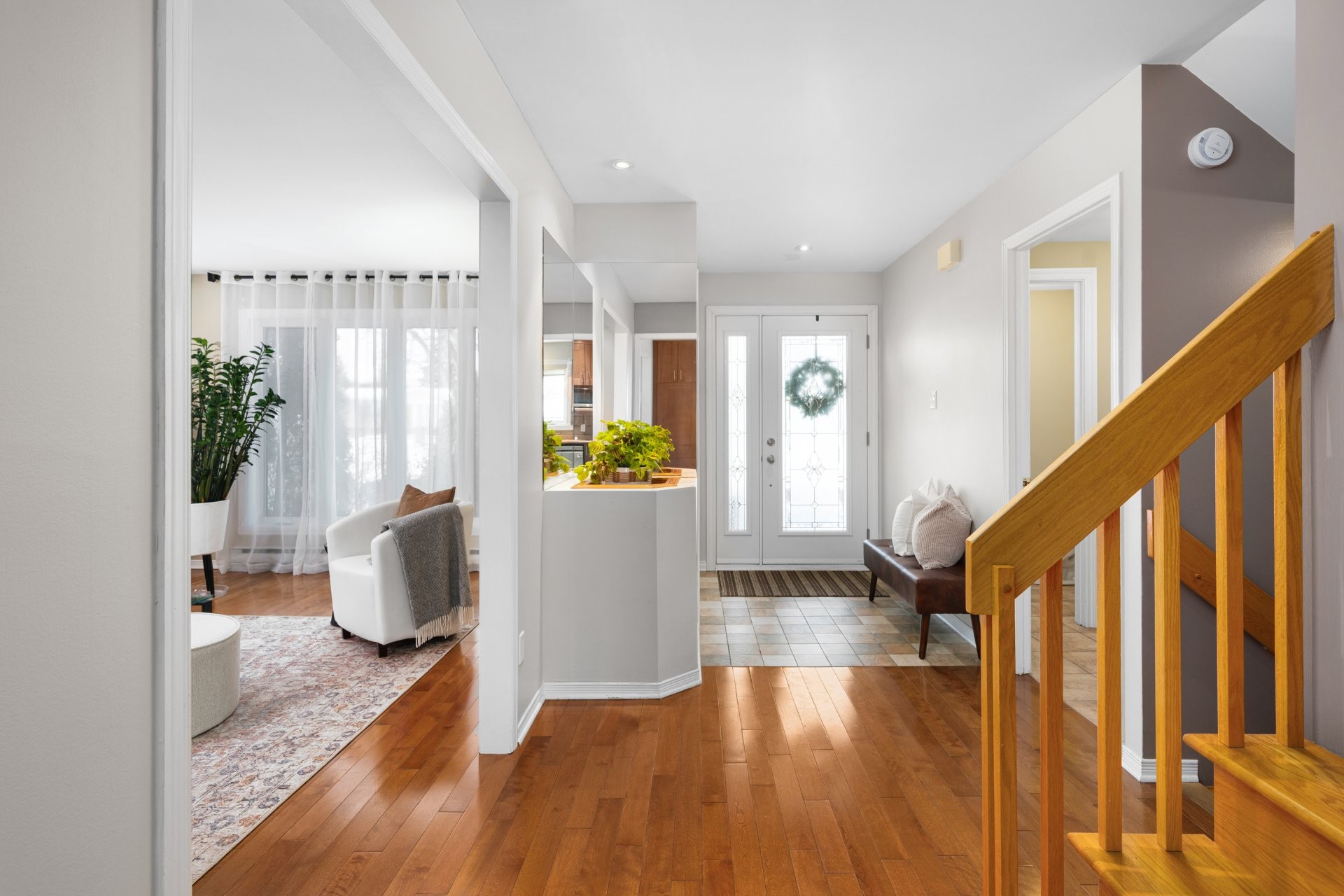 Maison unifamiliale lumineuse à deux étages à La Prairie. Belle entrée ouverte menant à une vaste cuisine offrant de généreuses surfaces de comptoir et de rangement. Aménagement bien pensé avec un espace mezzanine surélevé, idéal comme salle familiale ou bureau, tandis que trois chambres à coucher et une salle de bain complète se trouvent à l'étage. Sous-sol entièrement aménagé comprenant une chambre additionnelle, une salle familiale et une deuxième salle de bain complète. Aménagement pratique et polyvalent, idéal pour la vie familiale. Offrant un accès rapide aux axes routiers, écoles, parcs et à courte distance du Quartier DIX30 et du REM