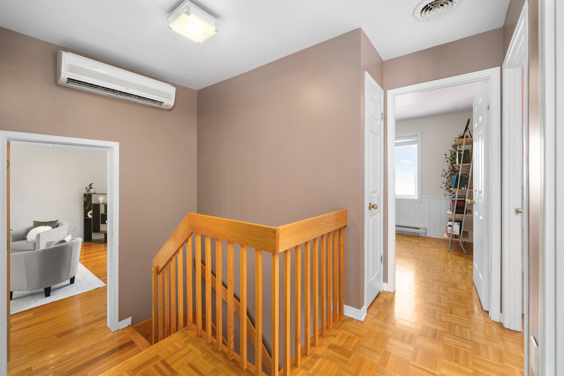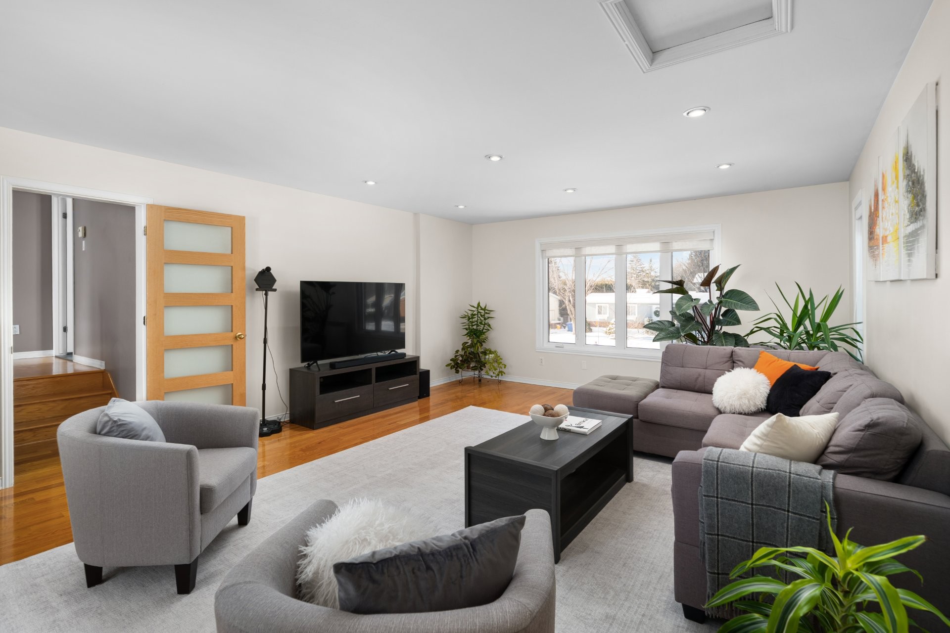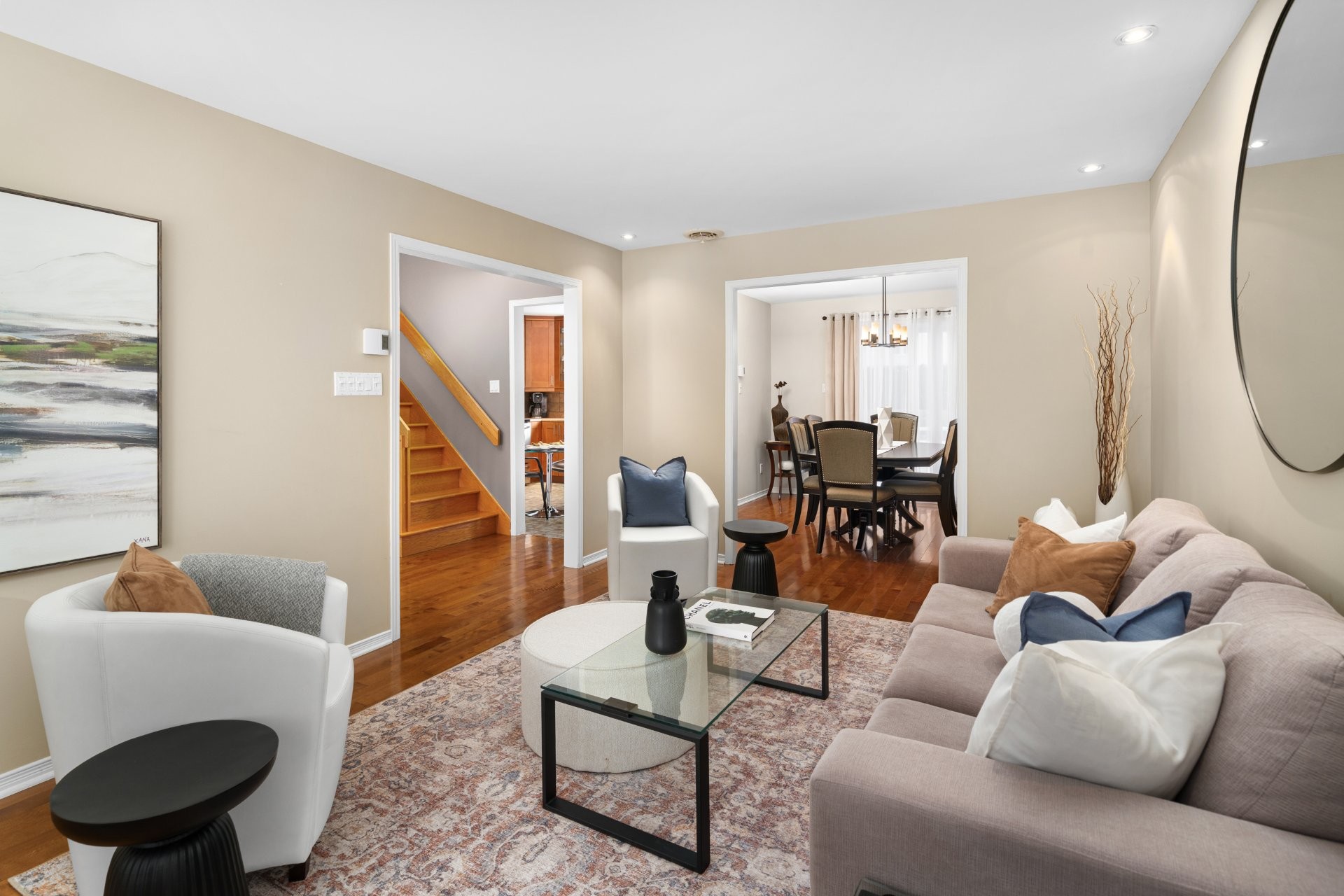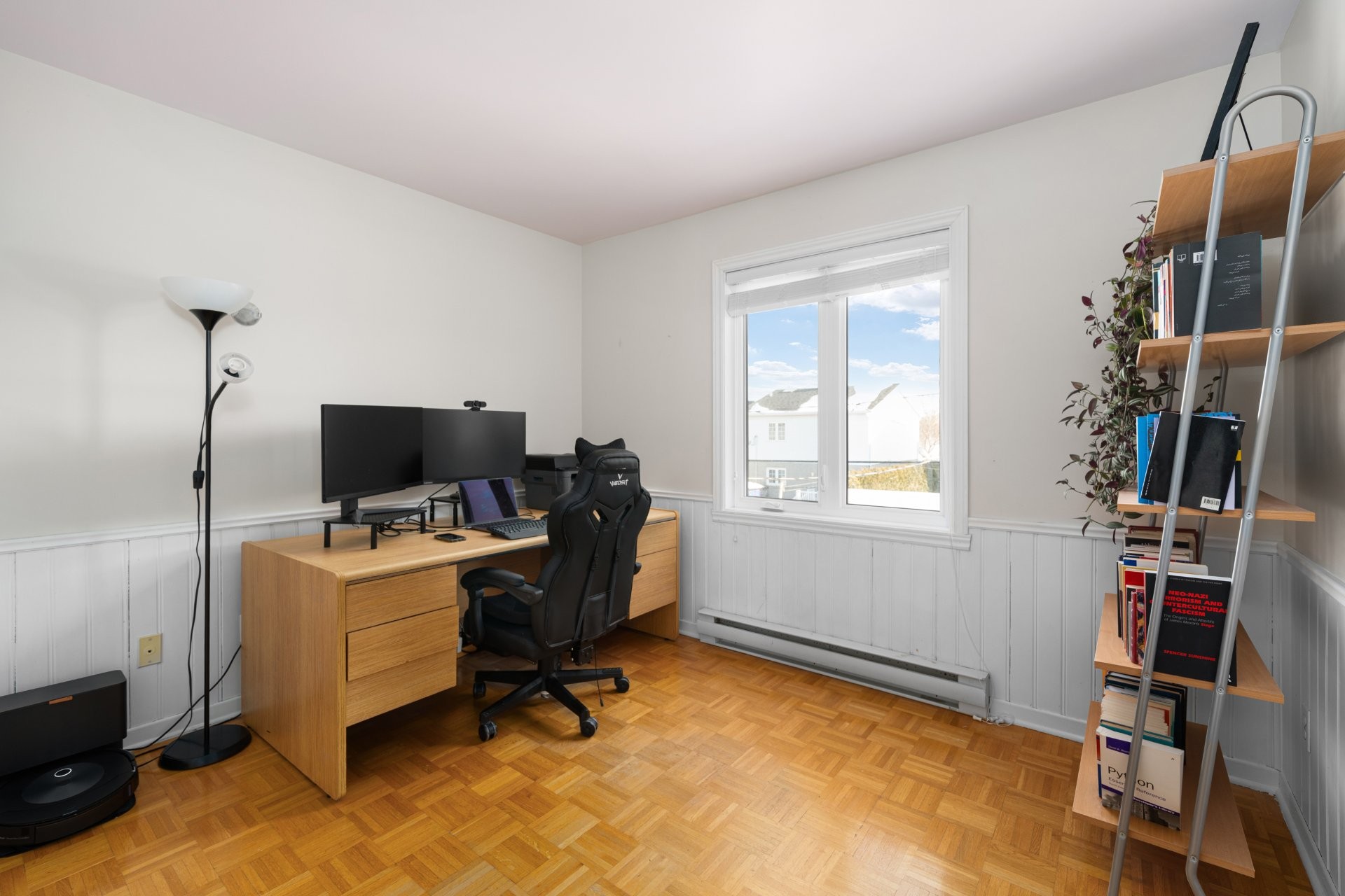 Maison unifamiliale lumineuse à deux étages à La Prairie. Belle entrée ouverte menant à une vaste cuisine offrant de généreuses surfaces de comptoir et de rangement. Aménagement bien pensé avec un espace mezzanine surélevé, idéal comme salle familiale ou bureau, tandis que trois chambres à coucher et une salle de bain complète se trouvent à l'étage. Sous-sol entièrement aménagé comprenant une chambre additionnelle, une salle familiale et une deuxième salle de bain complète. Aménagement pratique et polyvalent, idéal pour la vie familiale. Offrant un accès rapide aux axes routiers, écoles, parcs et à courte distance du Quartier DIX30 et du REM
