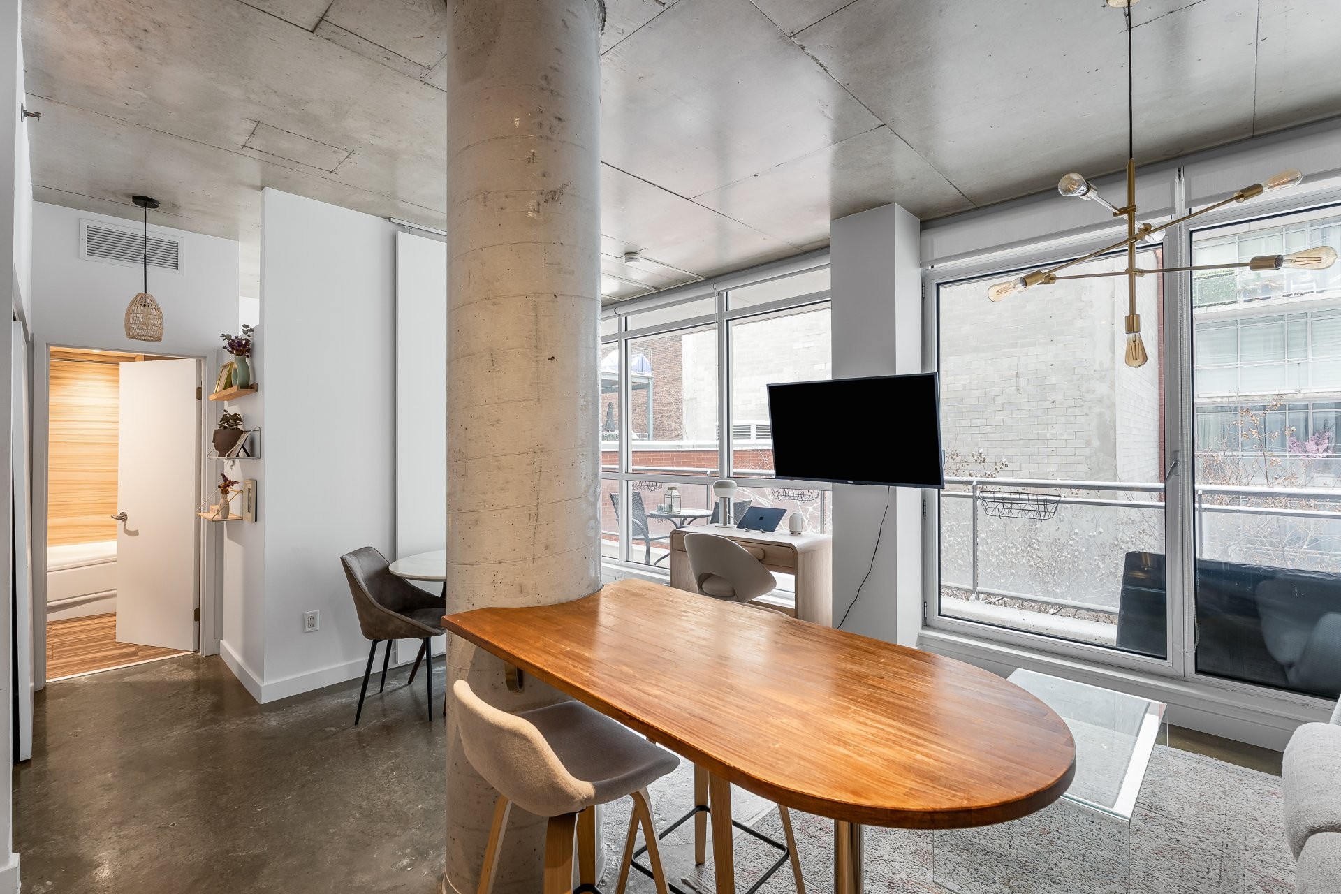 Superbe condo de 1 chambre offrant un espace de vie ouvert au design contemporain et une élégance intemporelle, agrémenté d'une immense terrasse privée s'étendant sur toute la longueur de l'unité, idéale pour profiter pleinement de la vie urbaine. L'unité comprend également un grand espace de rangement, un atout rare et pratique. Idéalement situé au coeur du Vieux-Port et du centre-ville de Montréal, à distance de marche des meilleurs restaurants, boutiques et parcs, et à proximité du métro Square-Victoria ainsi que du quartier des affaires. Une adresse recherchée incarnant l'art de vivre montréalais.