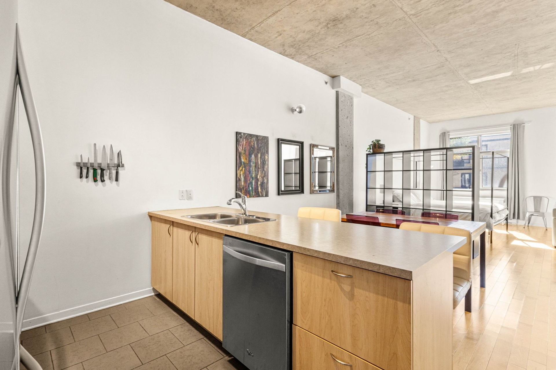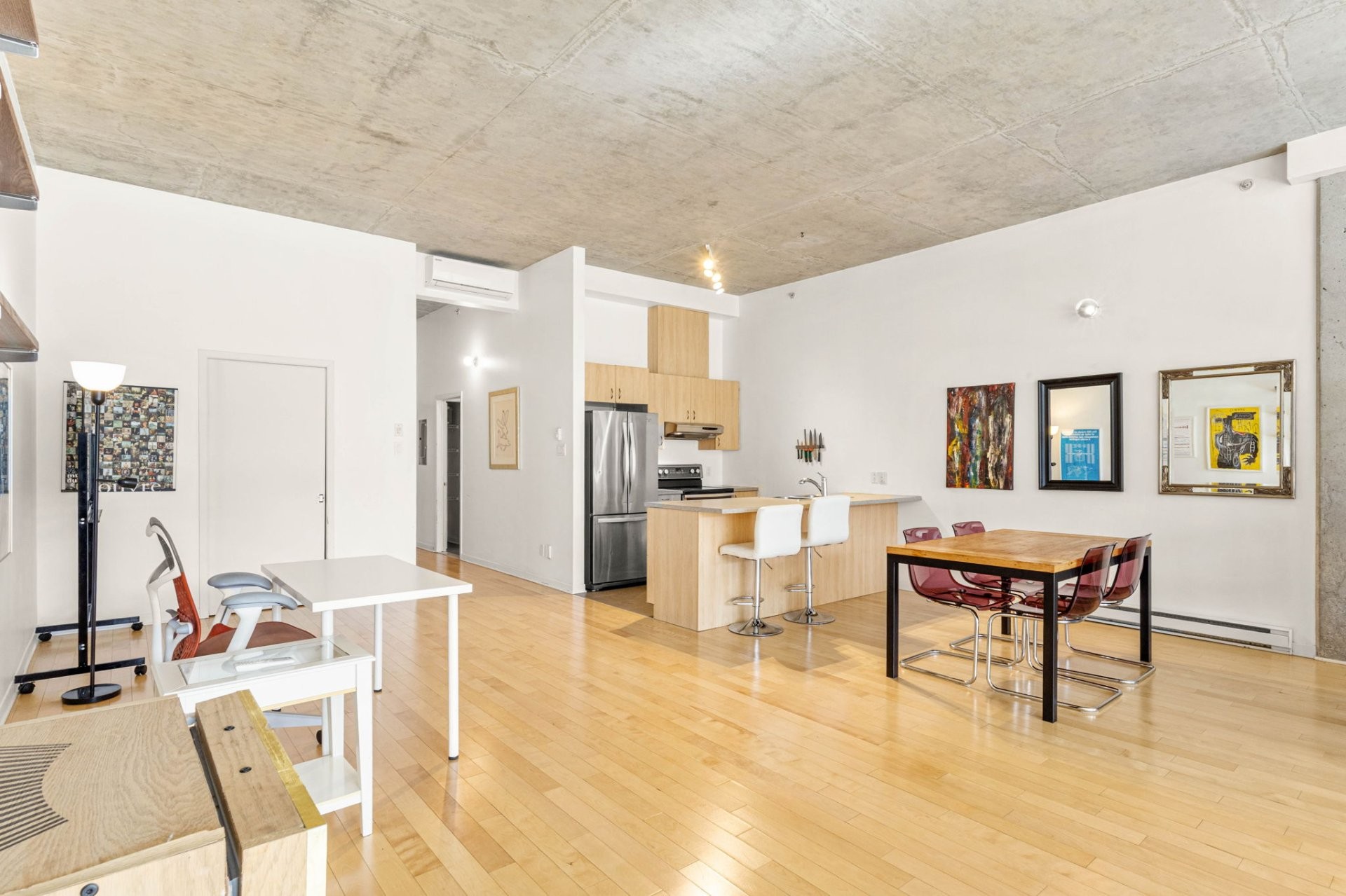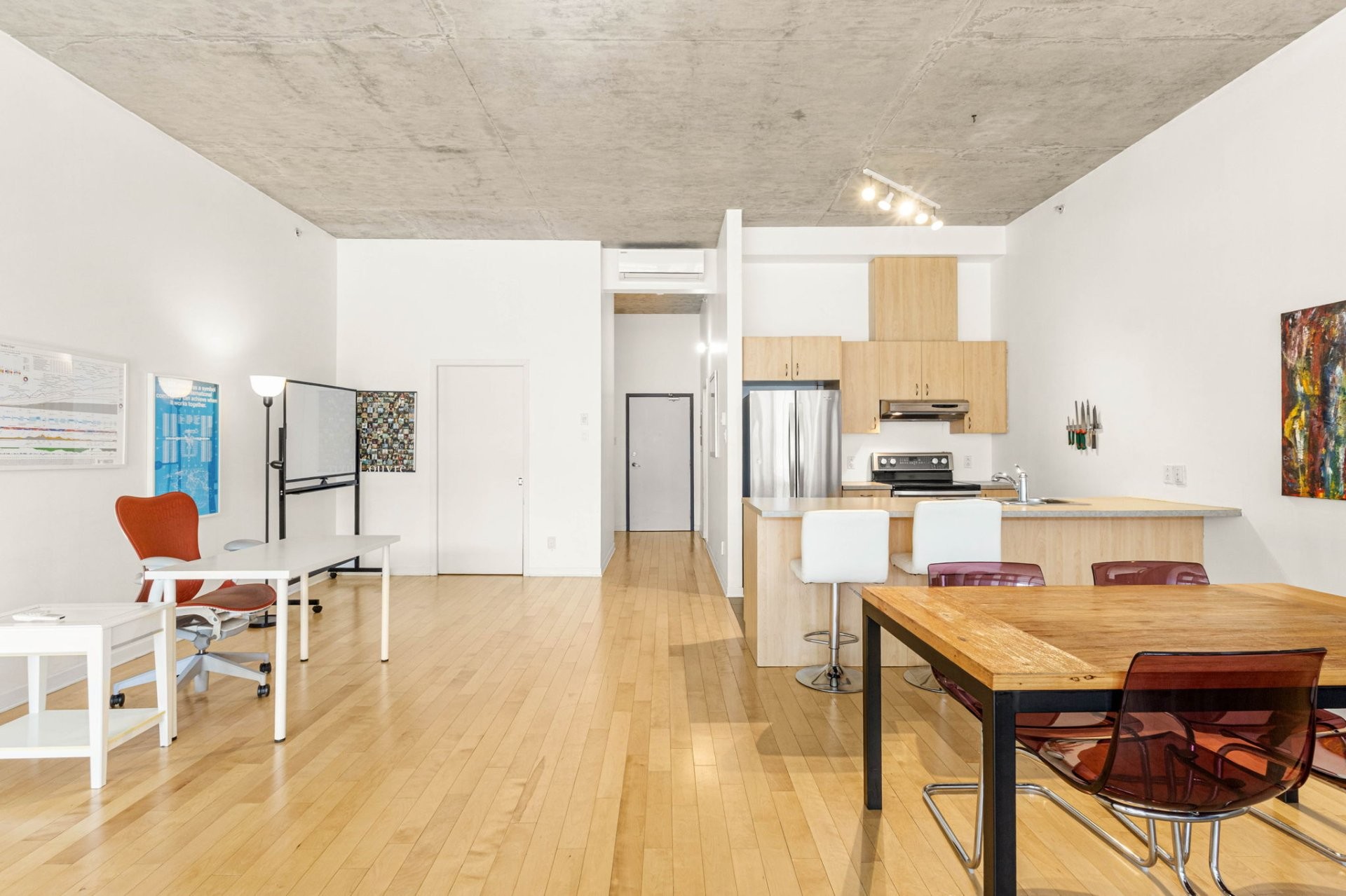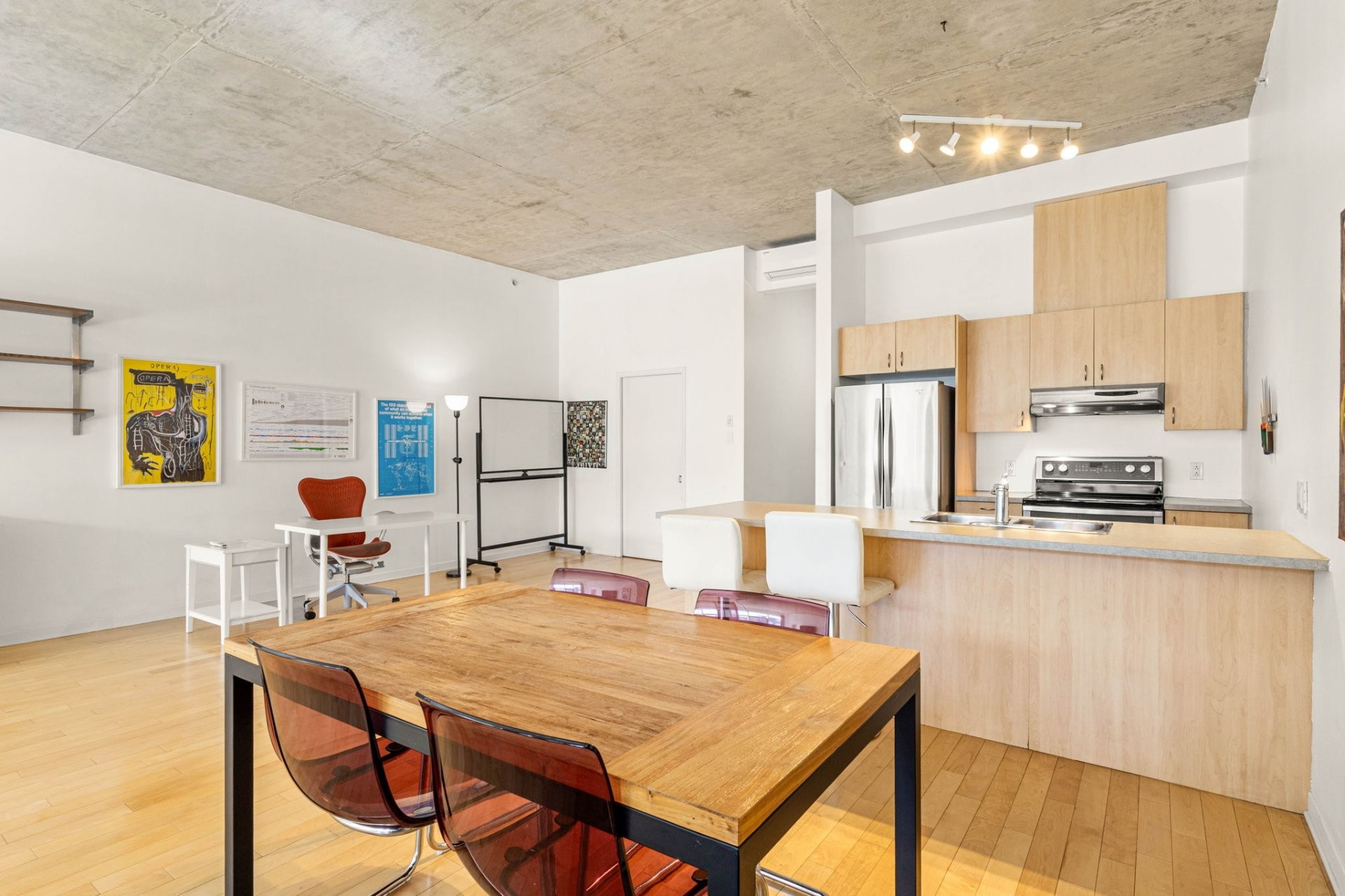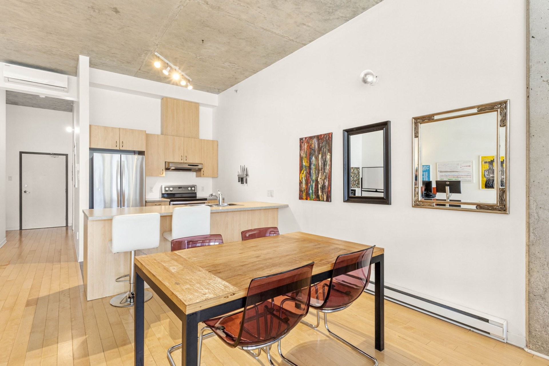 Exceptionnel loft à louer aux Lofts Solario, au coeur de l'Italie. Ce spacieux logement offre des plafonds de 11 pieds en béton fini, une cuisine moderne avec îlot, un salon et une salle à manger à aire ouverte, ainsi que deux grands walk-in. La salle de bain comprend baignoire et douche séparées, avec espace pour laveuse-sécheuse superposées. Inclut un stationnement intérieur et un espace de rangement. Design moderne, confort et emplacement imbattable à prix très compétitif!