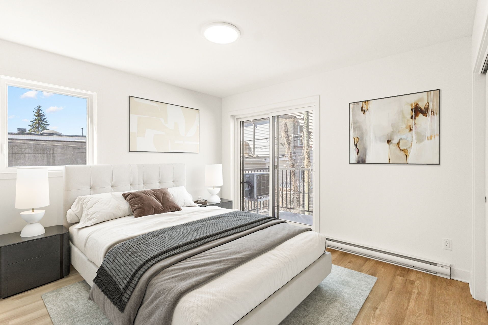 Ce lumineux condo de coin au rez-de-chaussée offre des plafonds de 9 pieds, un espace à aire ouverte et de grandes fenêtres qui inondent cha...