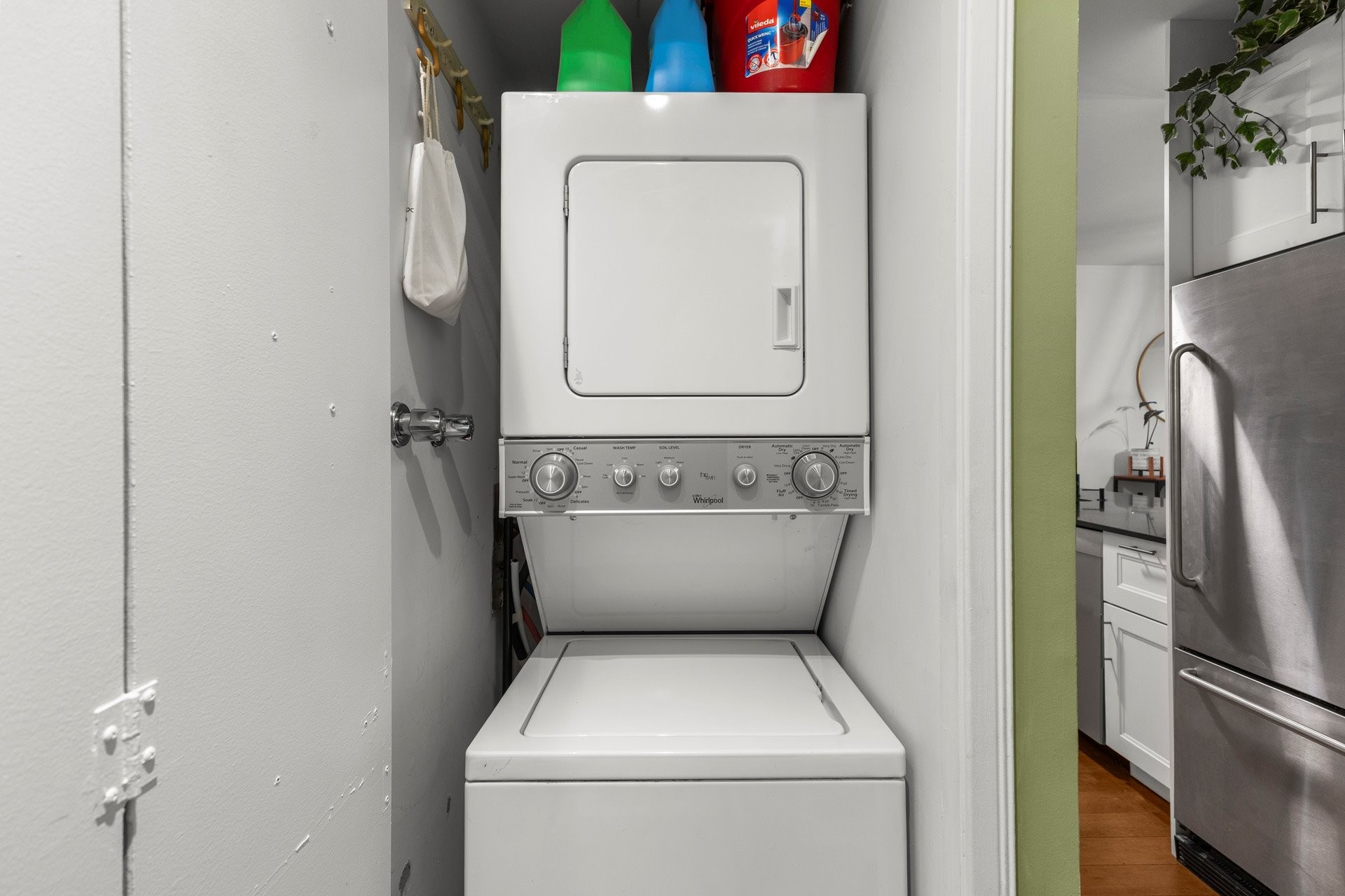 Réfrigérateur, cuisinière, laveuse, sècheuse, stores et tringles.