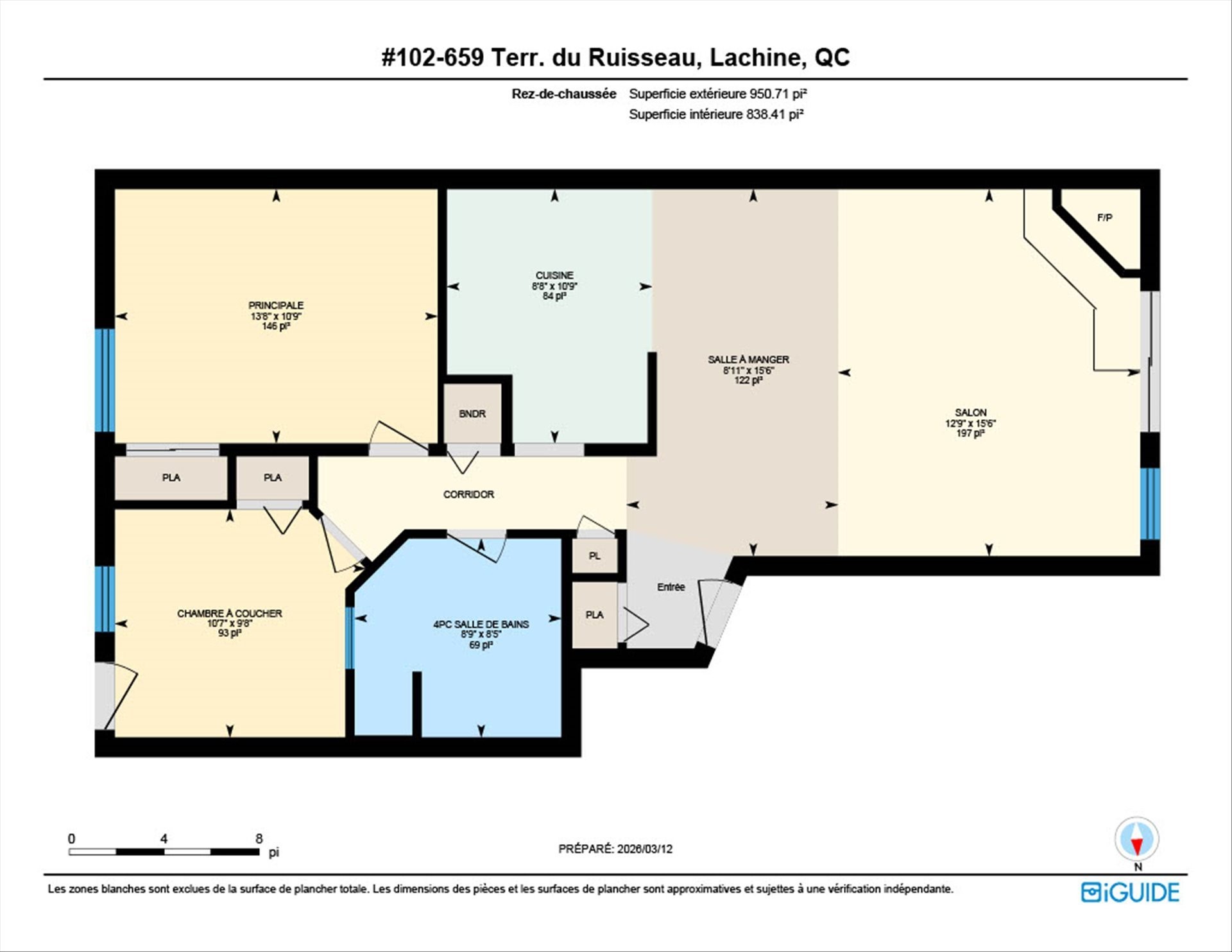 | Salon | Rez-de-chaussée | 12.9x15.6 P | Plancher flottant |