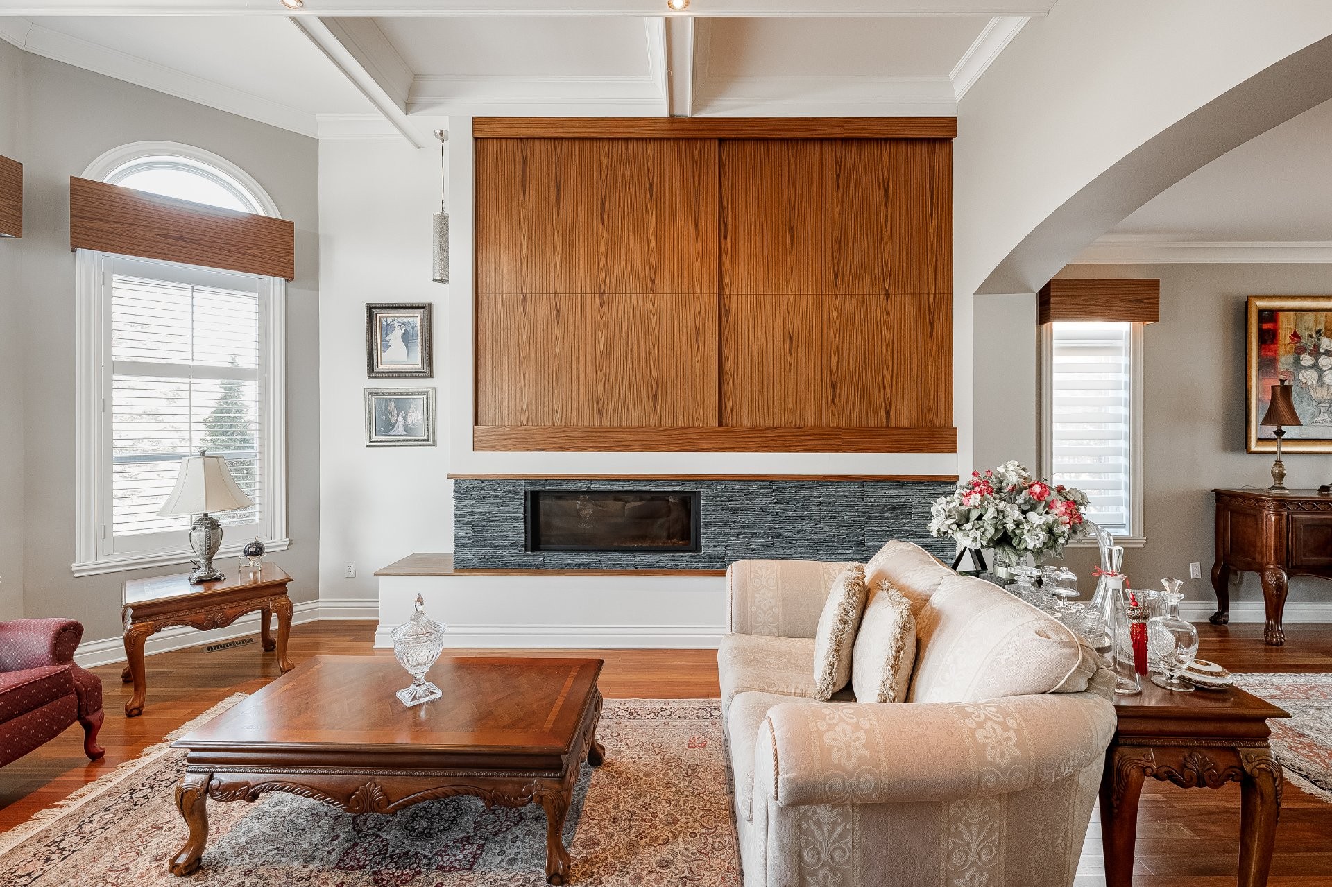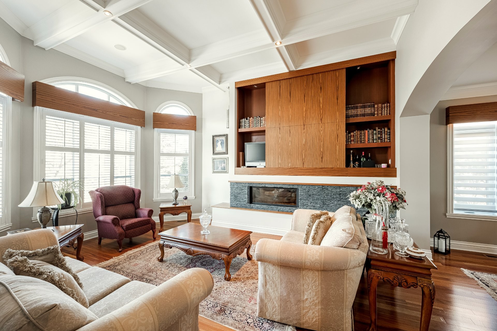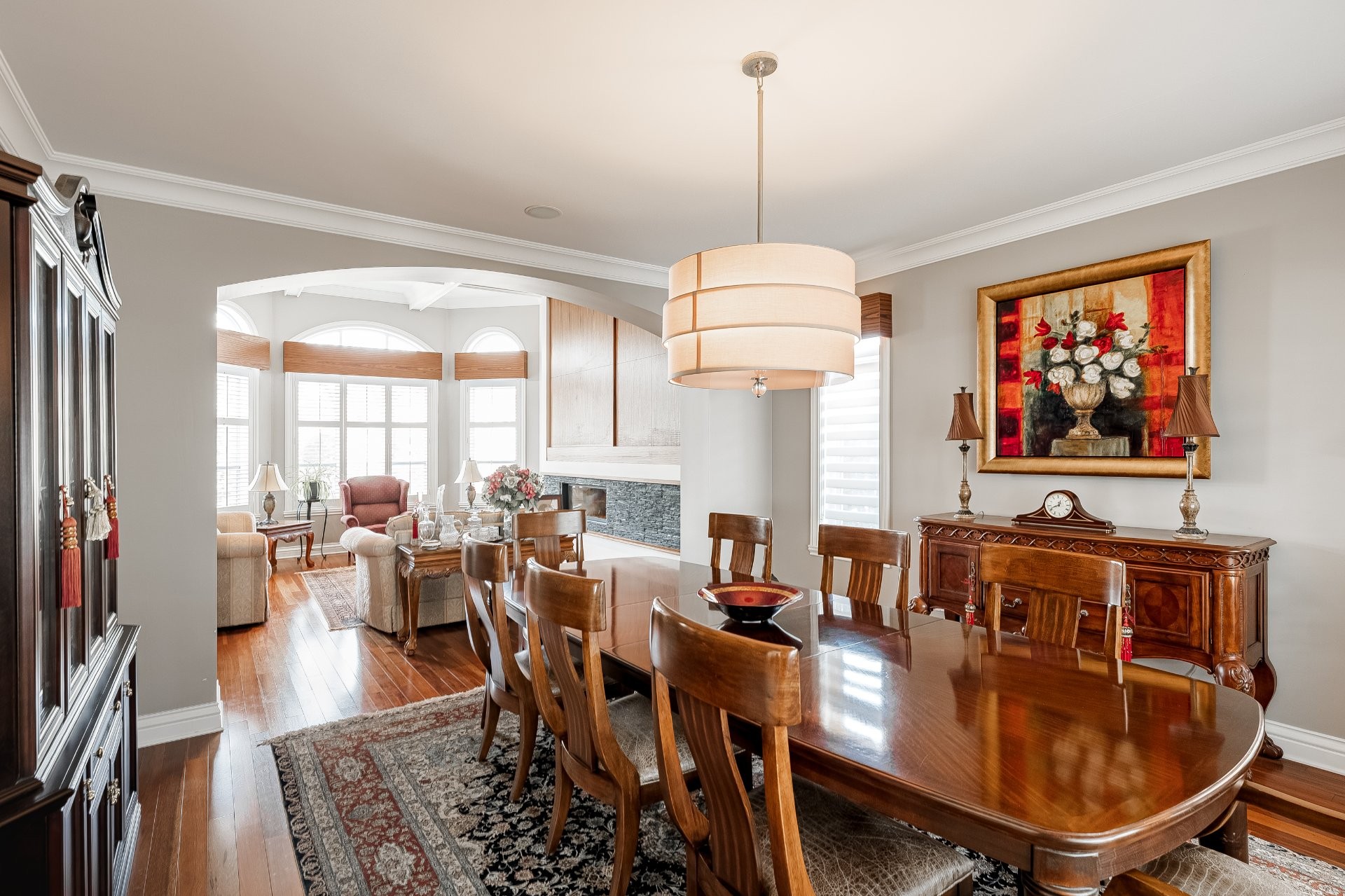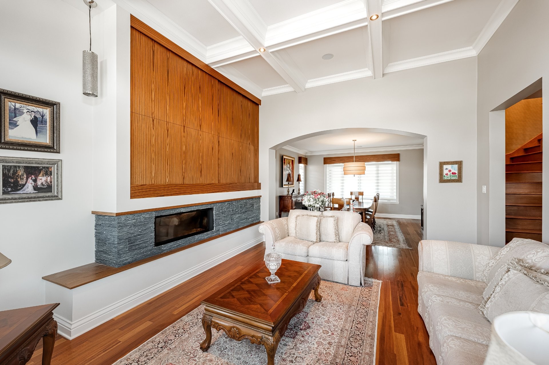- Vaste salon avec haut plafond et foyer au gaz, complété par une élégante salle à manger parfaite pour recevoir.