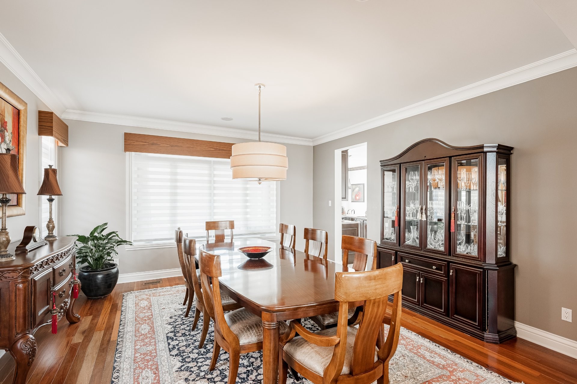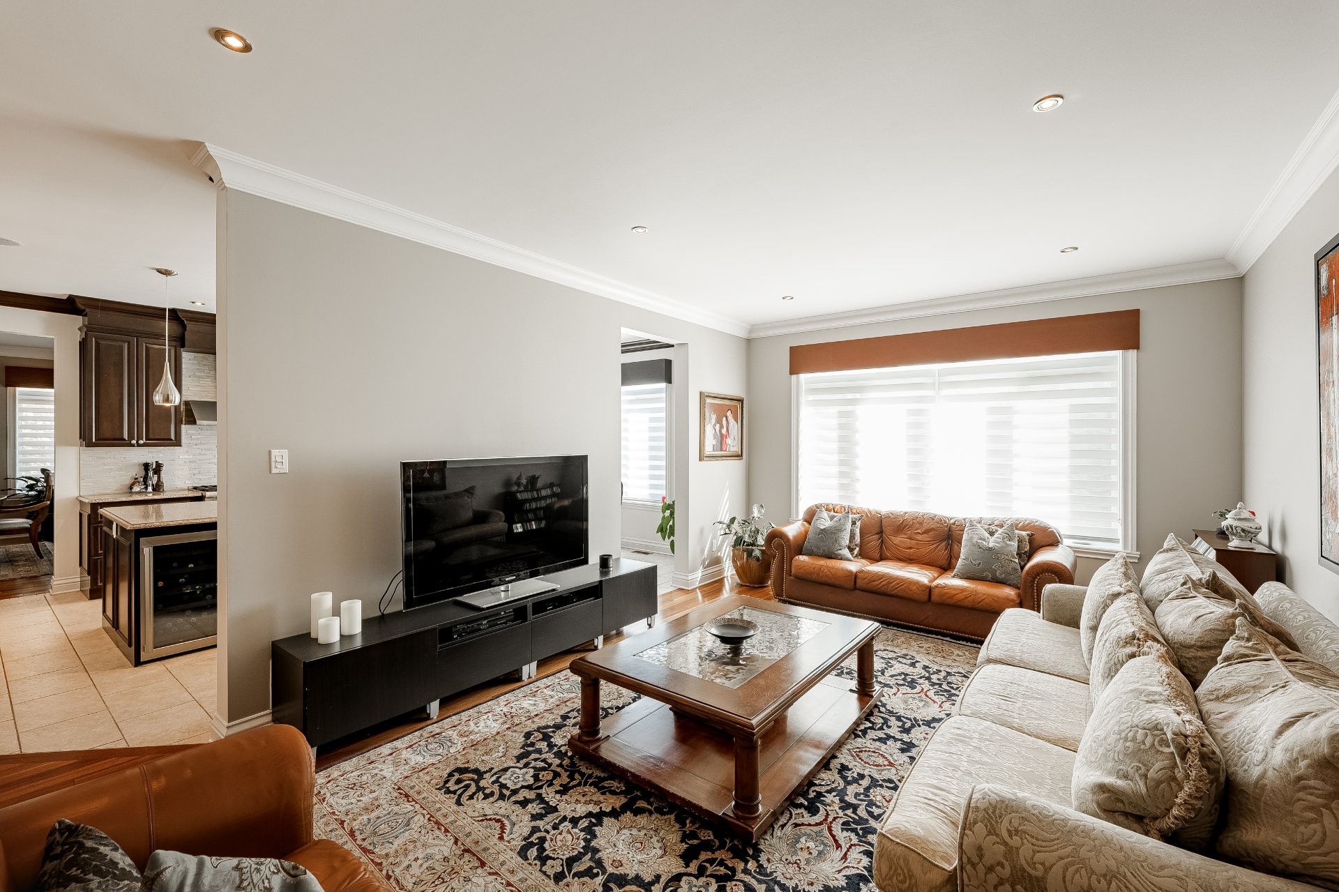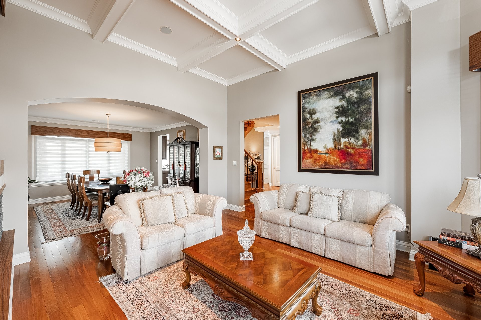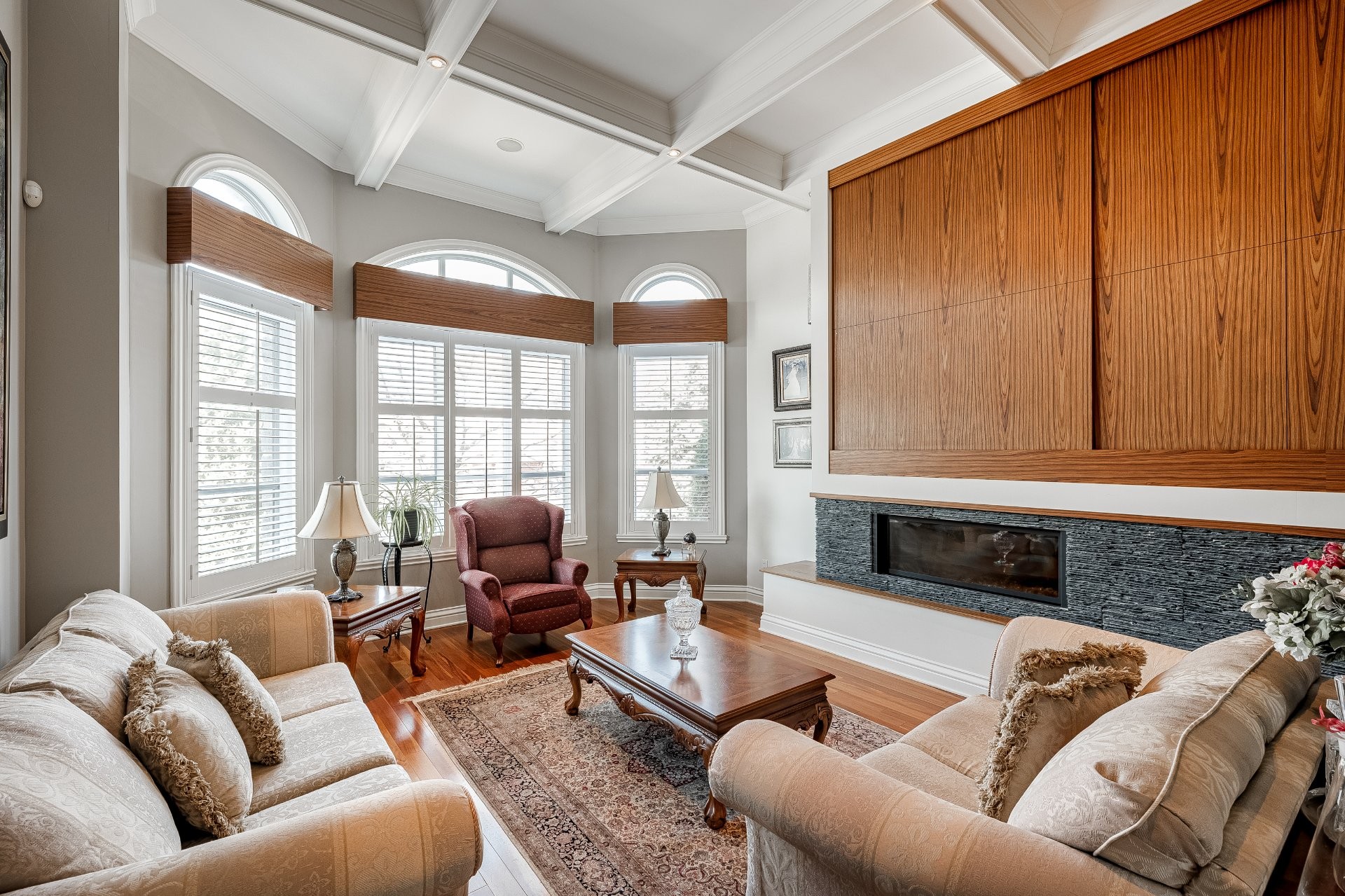 - Vaste salon avec haut plafond et foyer au gaz, complété par une élégante salle à manger parfaite pour recevoir.