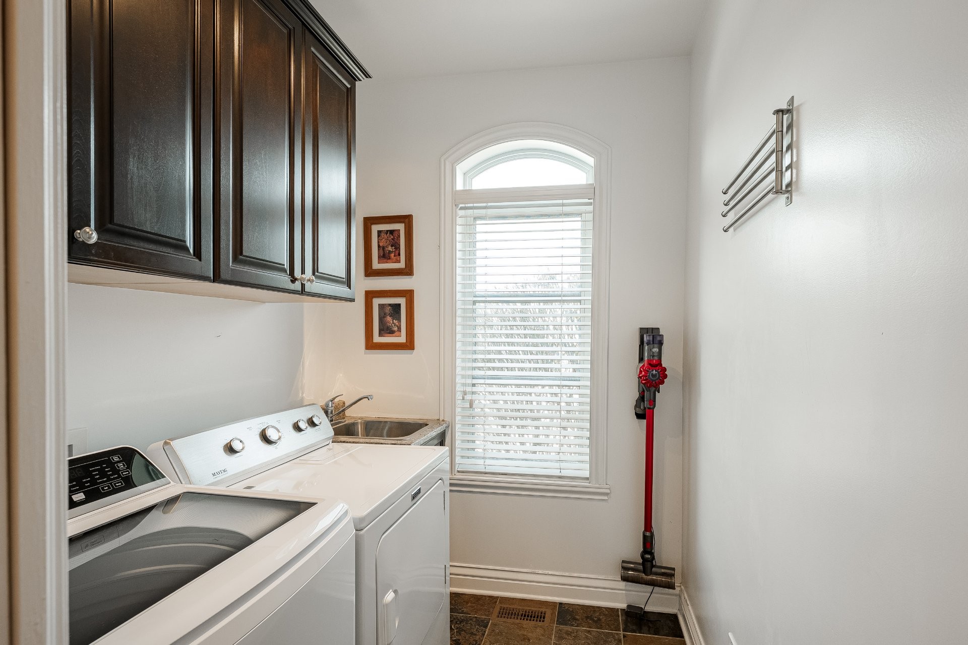 Réfrigérateur, cuisinière, hotte, lave-vaisselle, laveuse, sécheuse. Stores, rideaux, tringles et luminaires. Table de billard au sous-sol, et accessoires. Accessoires de piscine.
