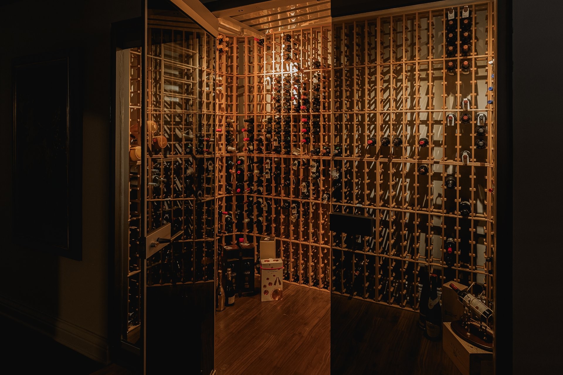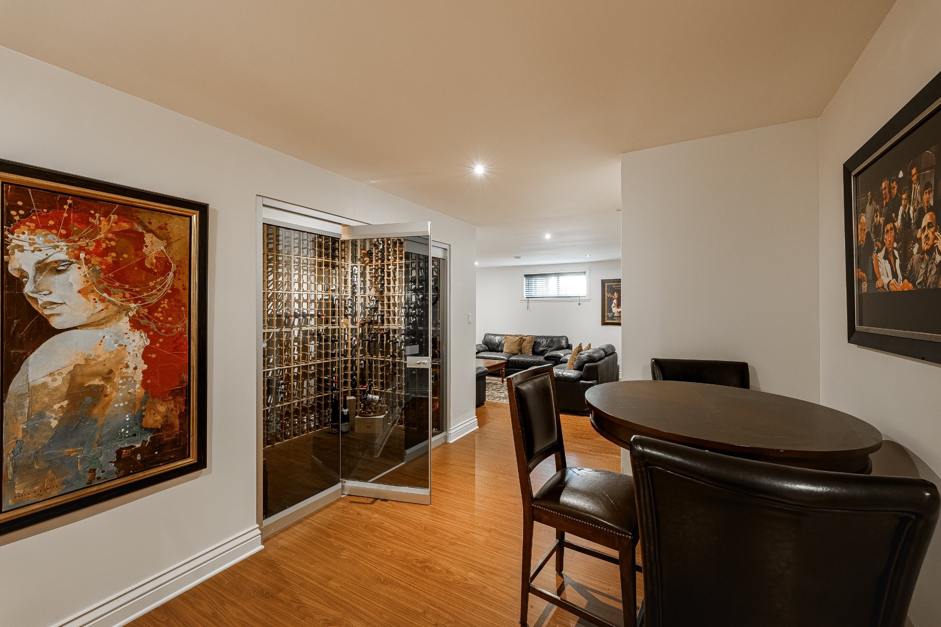 - Sous-sol spacieux et convivial, conçu pour recevoir en toute simplicité, avec cave-à-vin de 900 bouteilles et un aménagement ouvert.