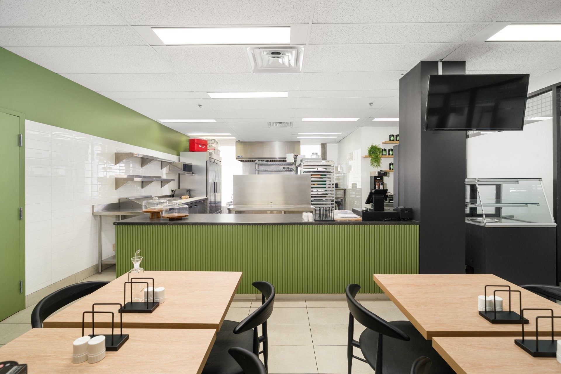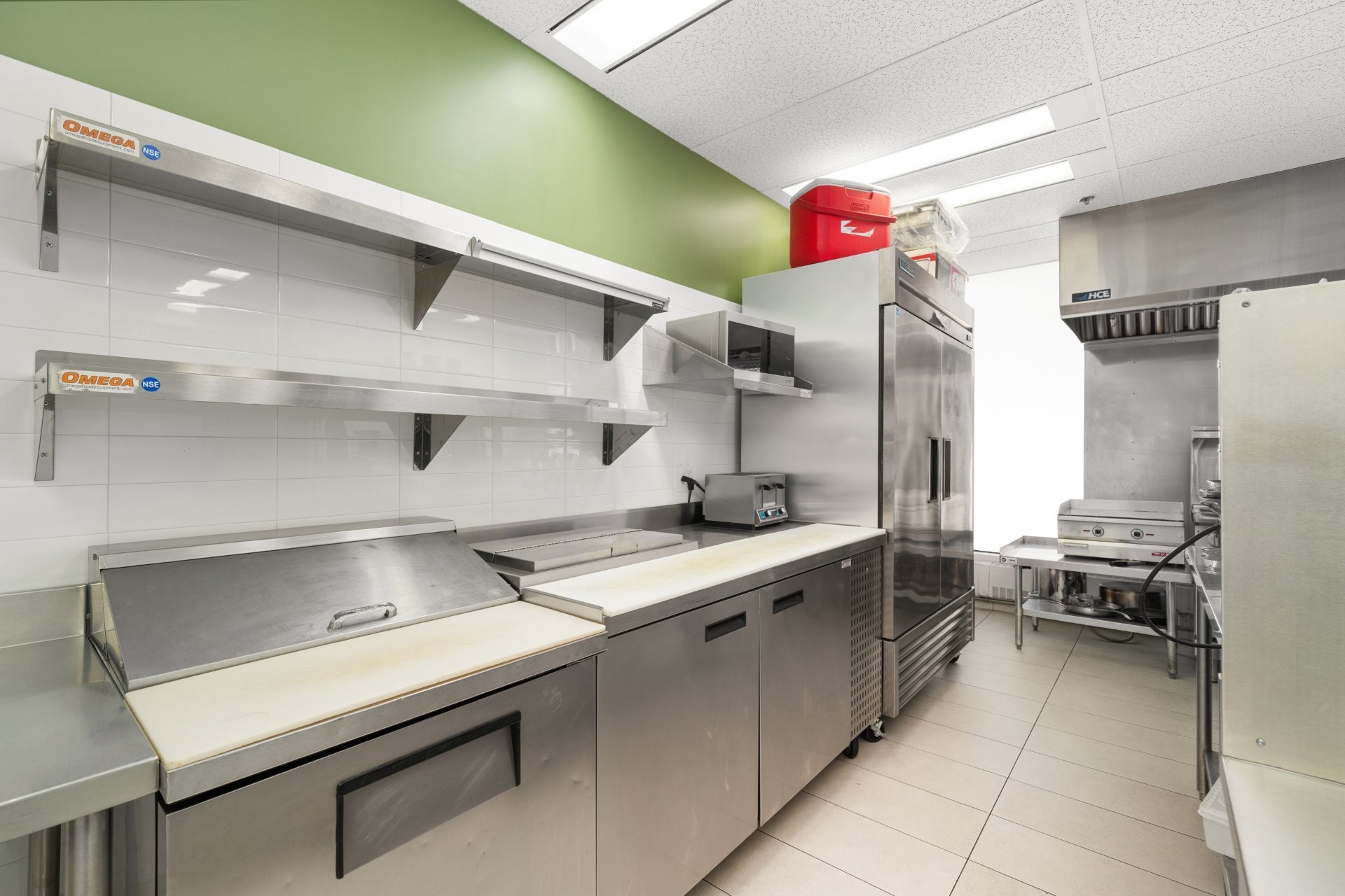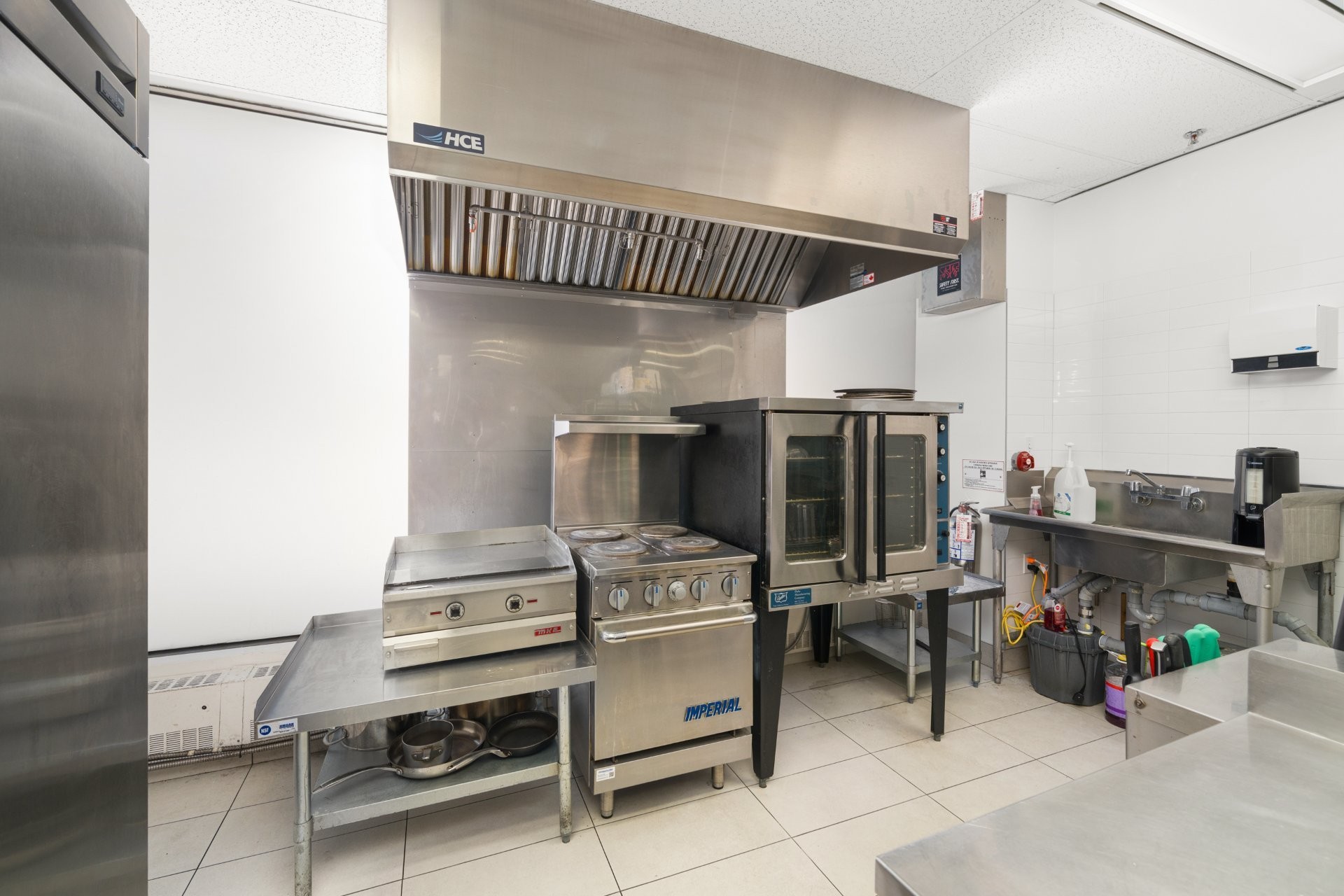 Tables, chaises, four, réfrigérateurs, tout le matériel présent sur les photos (voir liste jointe). Loyer additionnel de 17 $/pi² incluant tous les frais de nettoyage quotidien, d'entretien, d'électricité et de maintenance