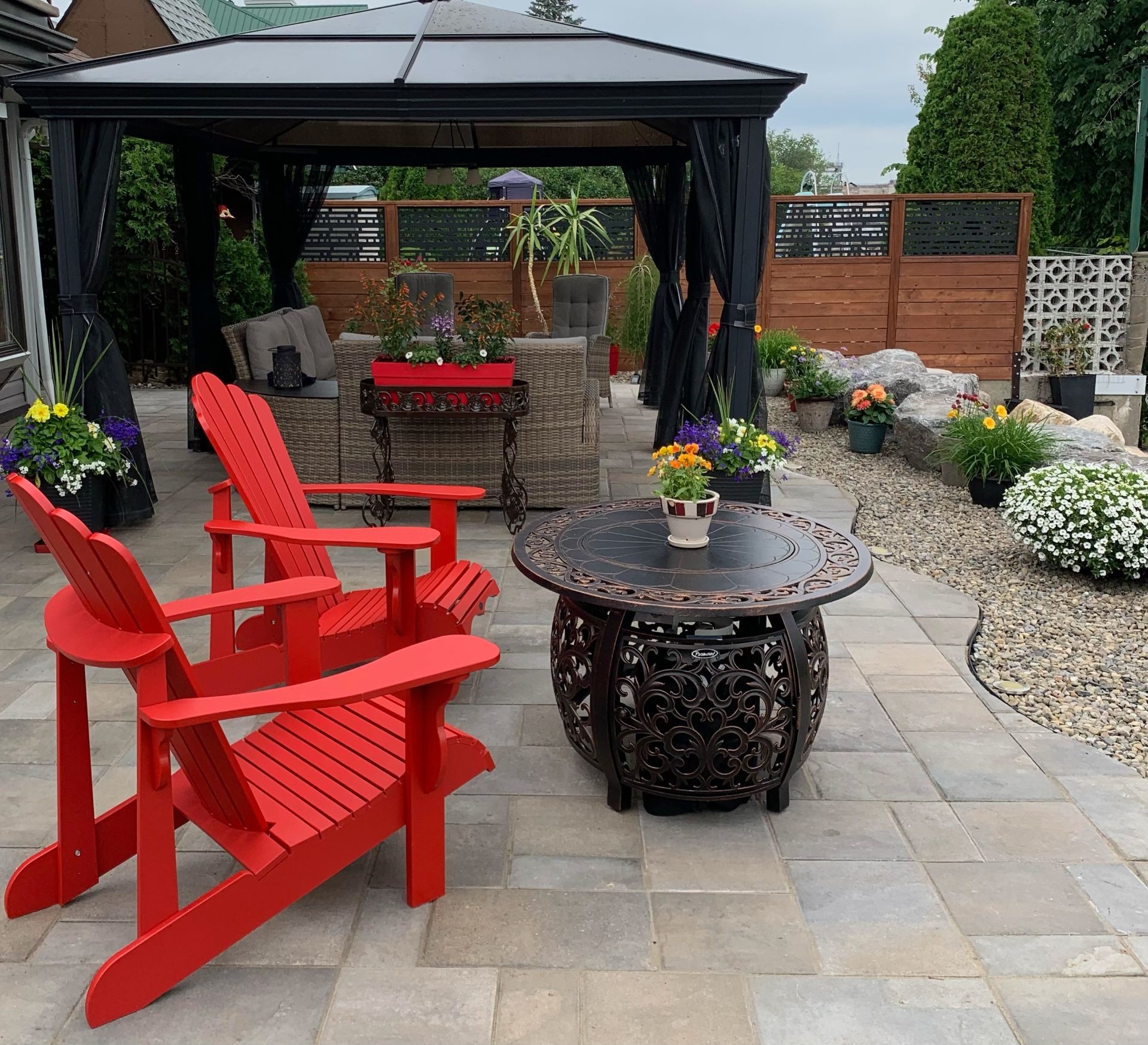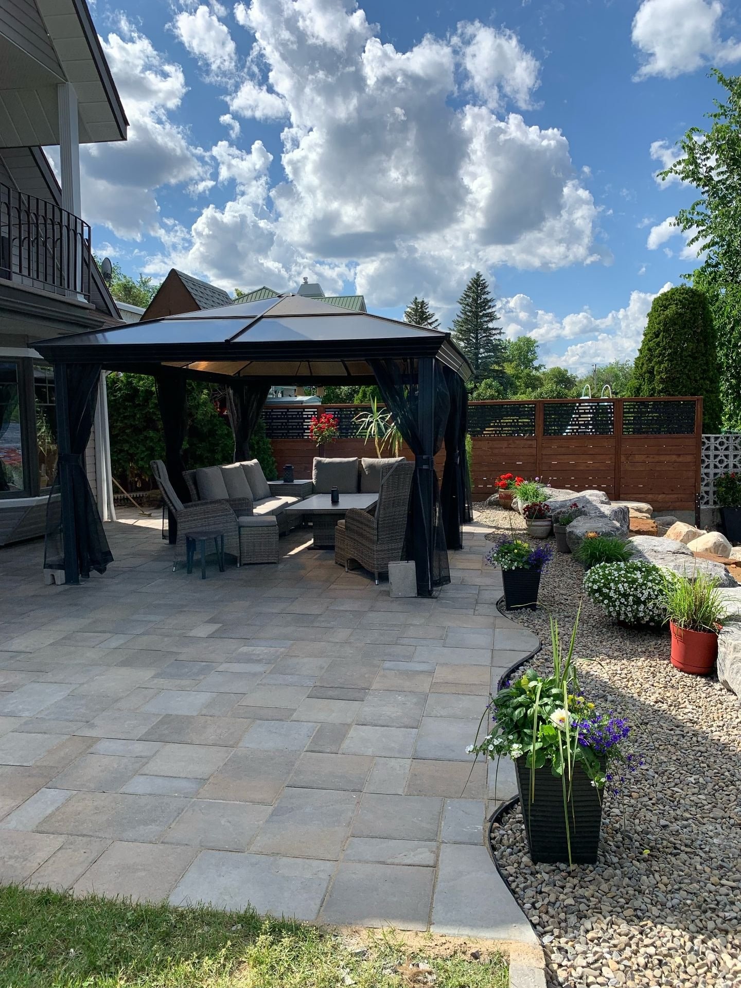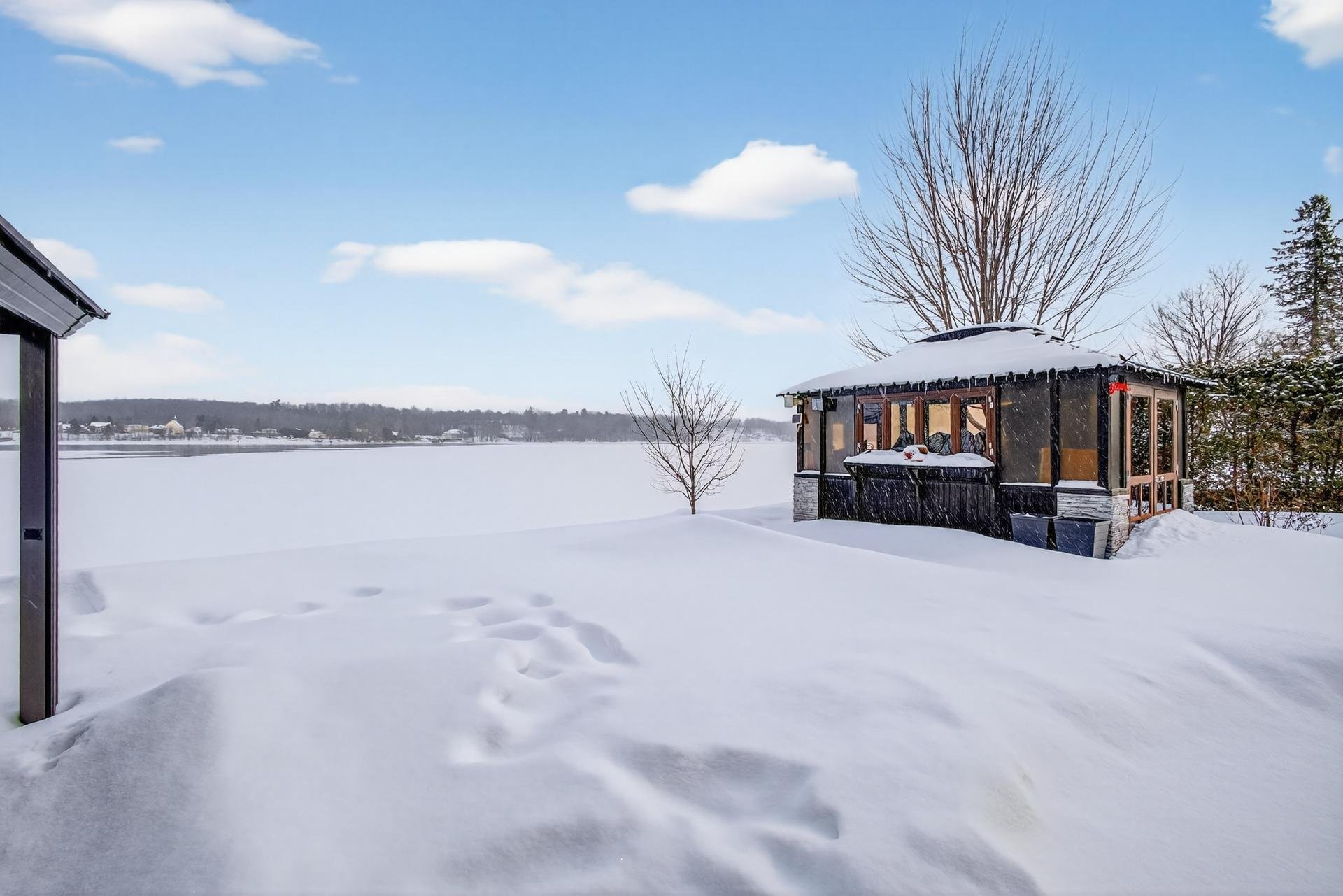-Aspirateur centrale -Luminaires intérieur -Rideaux et toile sur mesure -Électroménagers (laveuse, sécheuse de marque BOSCH couleur blanc) -Gazebo noir avec moustiquaires -Pavillon en bois -Système de filtration d'eau -Borne de recharge pour voiture.