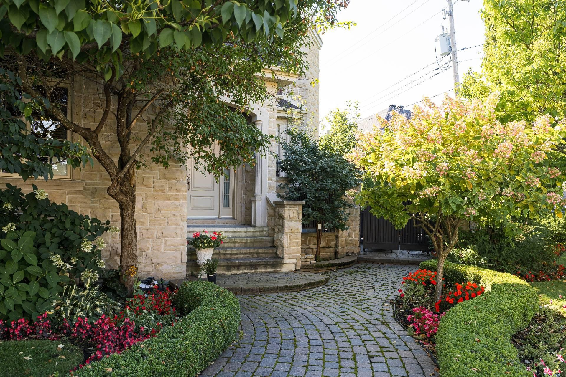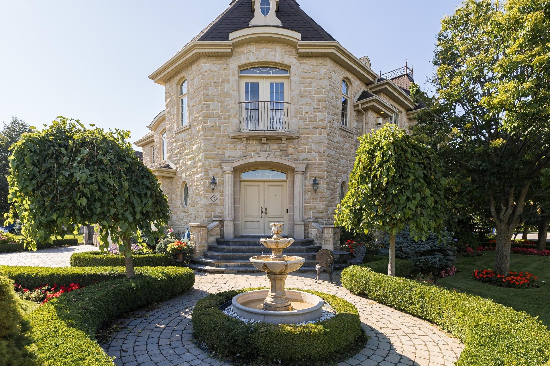 Maison majestueuse avec une grande présenceExtérieur en pierre et allée en pavés unis avec une magnifique fontaineSuperbes détails architecturaux et aménagement paysager soigné