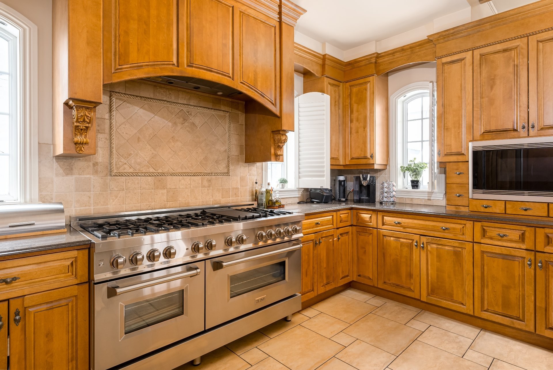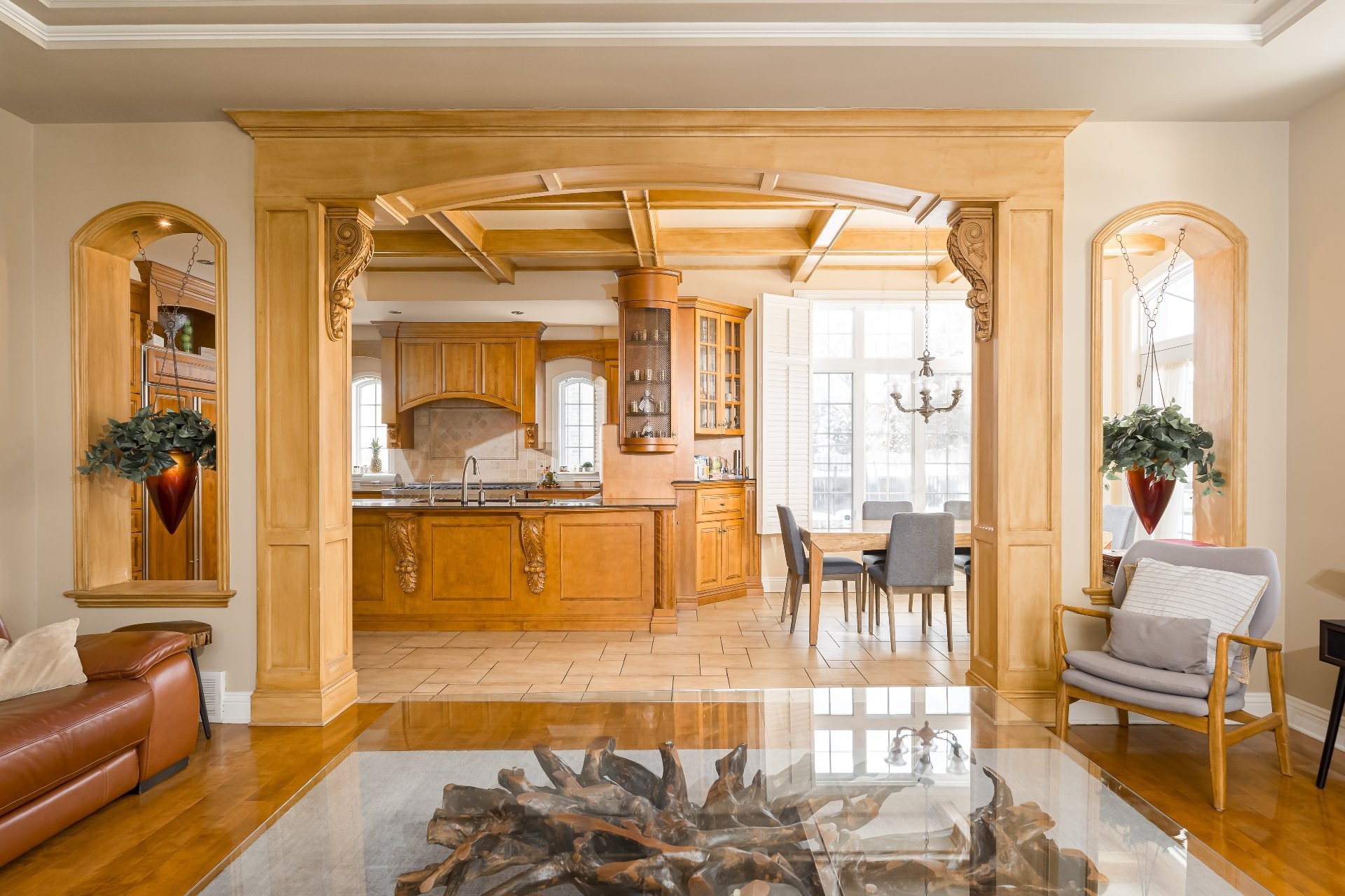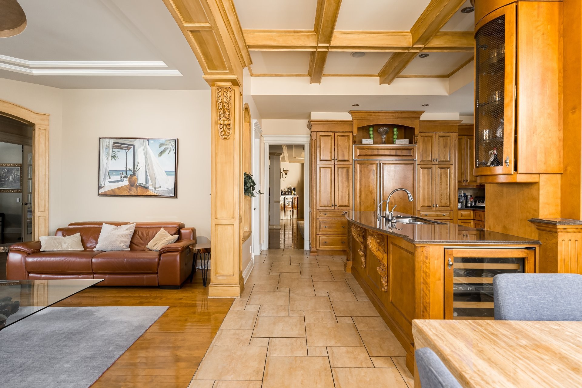 Superbe cuisine conçue avec des matériaux et un style de grande qualitéArmoires du sol au plafond aux couleurs chaudes du bois. Comptoirs en granit, plafond à poutres apparentes et vue sur l'immense salle familiale. Un grand garde-manger se trouve également à côté de la cuisine.