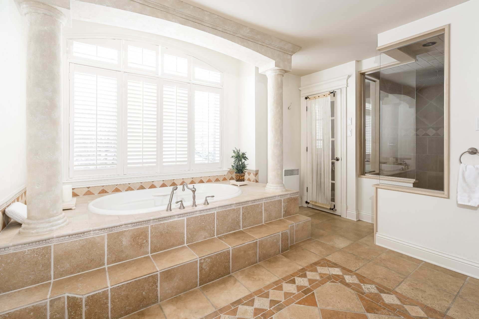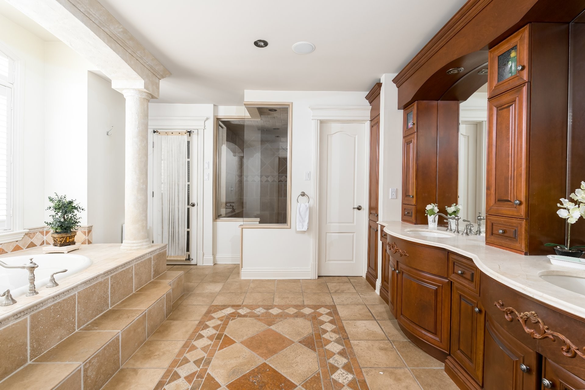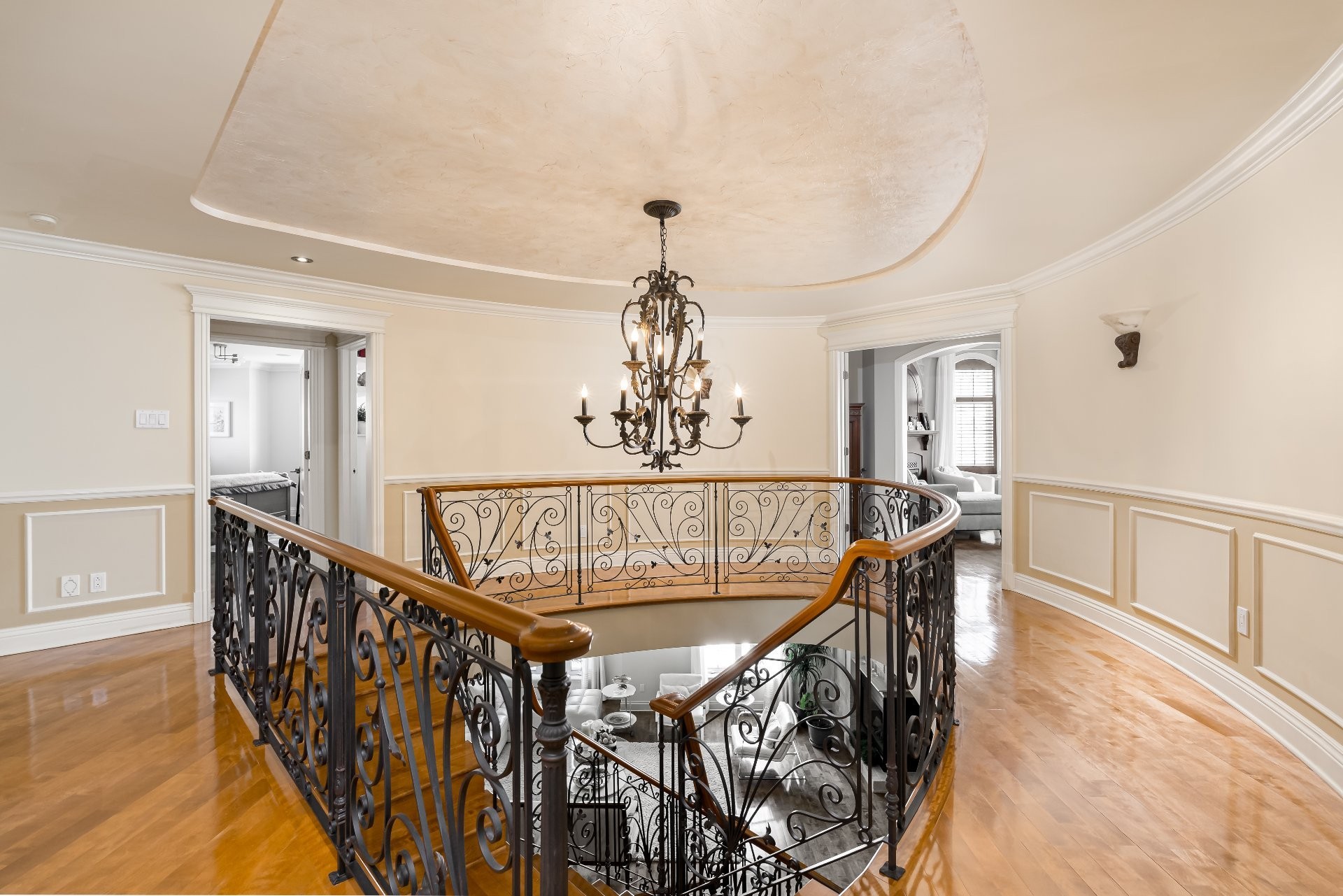 Au deuxième niveau, il y a cinq chambres spacieuses, chacune ayant sa propre salle de bain. La suite principale sera votre havre de paix... doubles portes-fenêtres donnant sur un balcon juliet. Cheminée au gaz, immense placard sur mesure avec îlot. Ce dernier mène à l'immense salle de bains attenante avec baignoire romaine profonde carrelée, très grande douche séparée en verre, toilettes privées, double lavabo et superbes armoires en bois sur mesure.