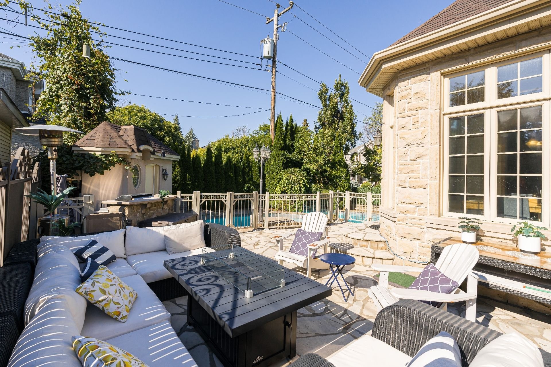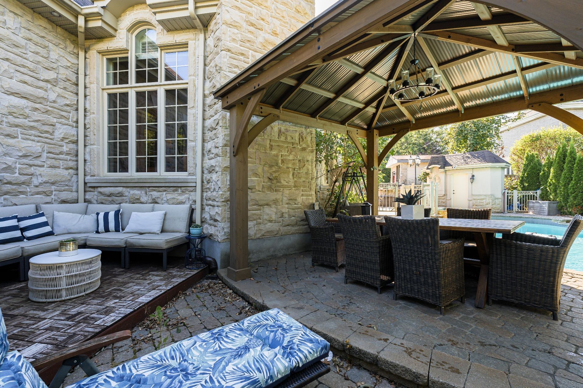 tous les luminaires, tous les rideaux et stores, tous les appareils de cuisine, sauna, système d'alarme, caméras extérieures et sonnette, gazebo dans l'arrière-cour, table de billard au sous-sol, fauteuils pour la salle de cinéma