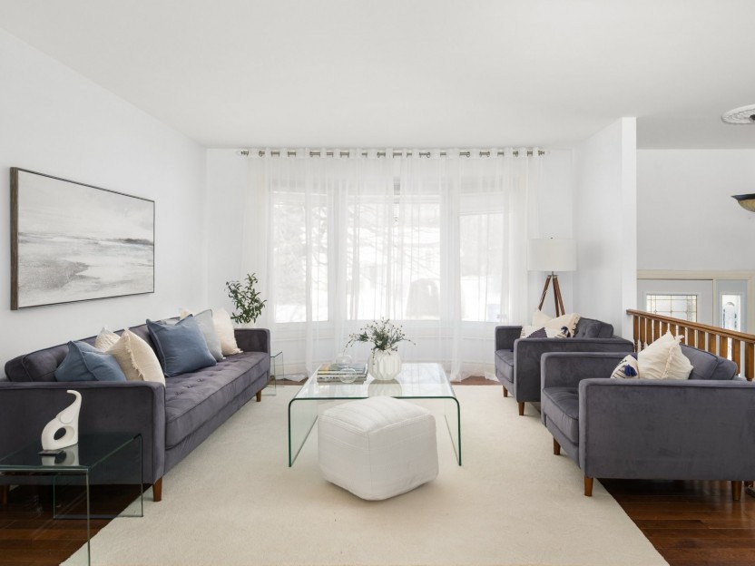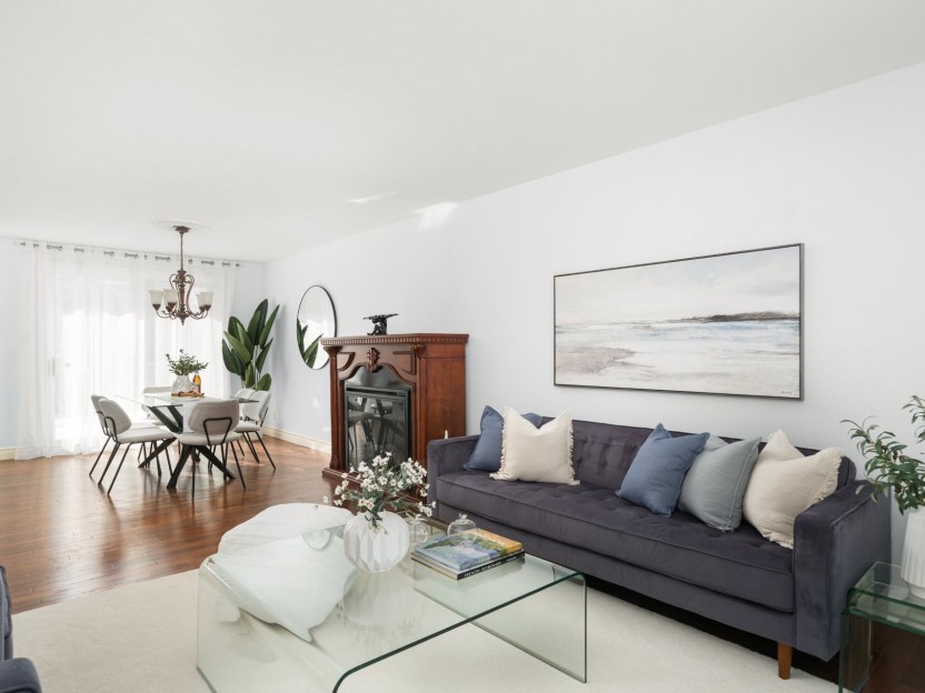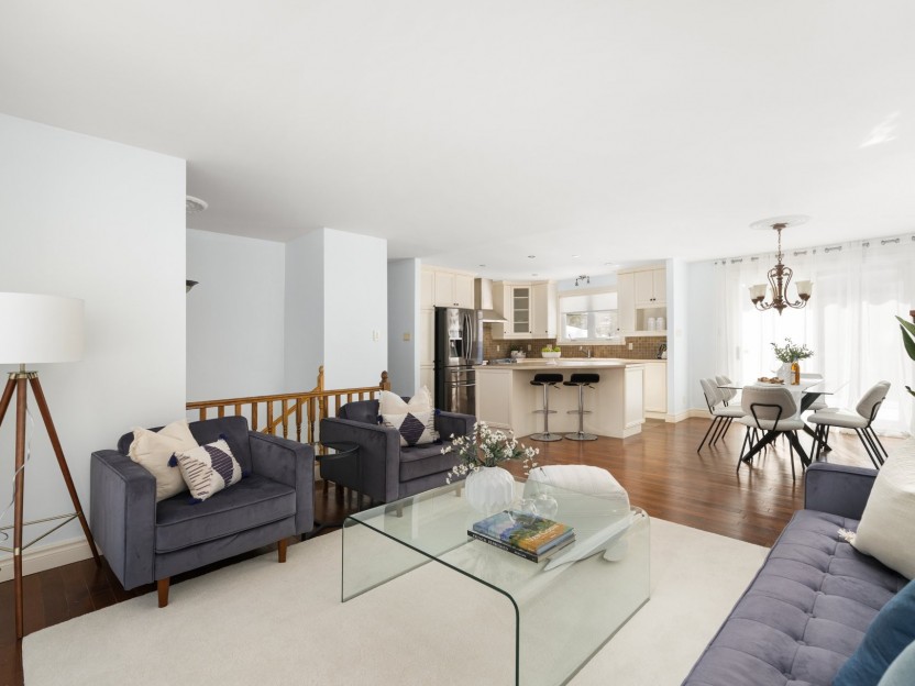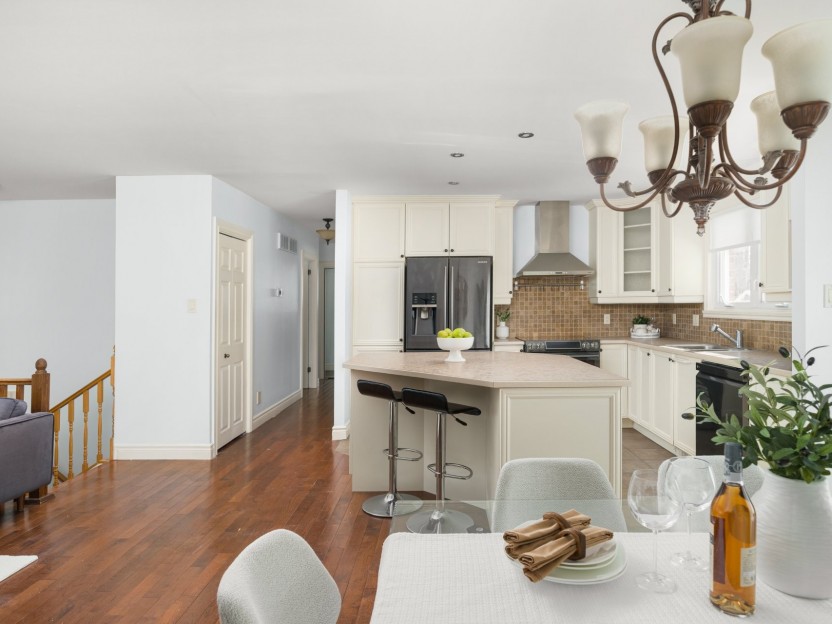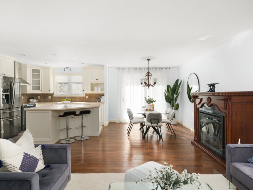 Le concept ouvert intègre harmonieusement un vaste salon, une salle à manger conviviale et une cuisine moderne pratique dotée de nombreux rangements et d'un espace de comptoir généreux -- parfaite pour les repas quotidiens et les réceptions.