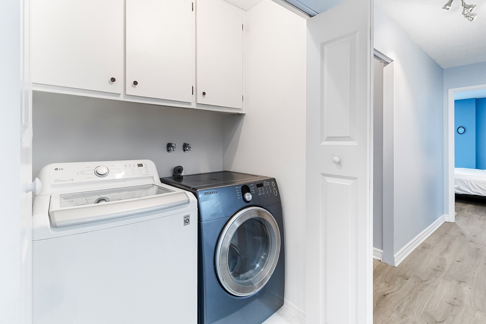 Réfrigérateur, four, lave-vaisselle, laveuse/sécheuse, entièrement meublé.