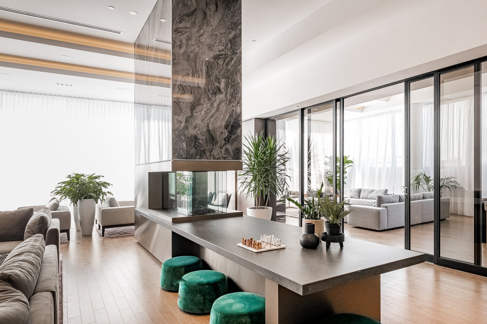 *Victoria sur le Parc, tour de condos de luxe, offre un service de portier 24 h/24 et plus de 930 mètres carrés d'aménagements haut de gamme.