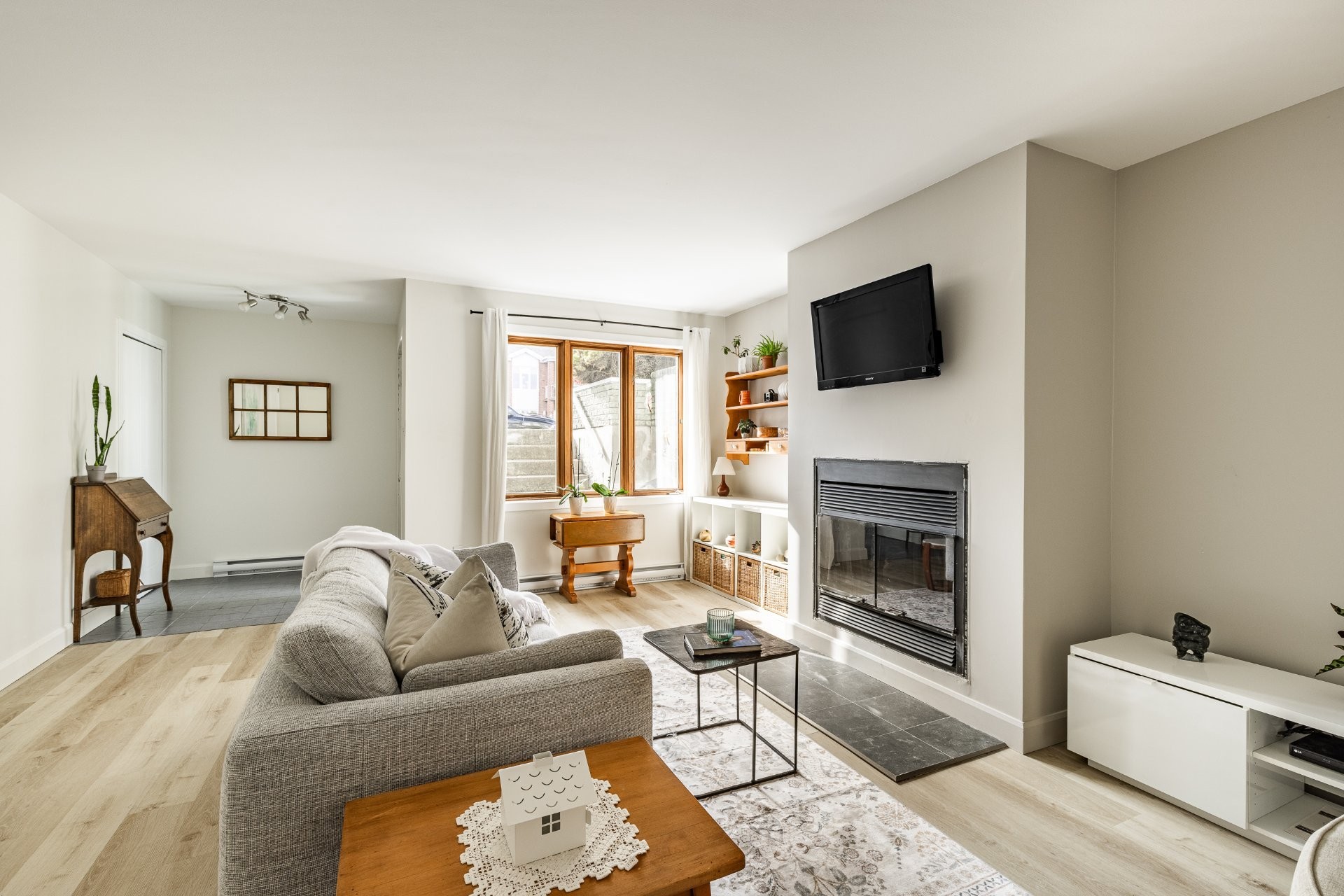 La cuisine et la salle de bain ont été entièrement remises au goût du jour avec des matériaux de qualité et une finition élégante. Le salon, chaleureux et confortable, comprend un foyer qui ajoute une touche d'ambiance et de charme. Deux chambres spacieuses offrent amplement d'espace de rangement et de flexibilité, idéales pour un couple, une jeune famille ou un bureau à domicile.