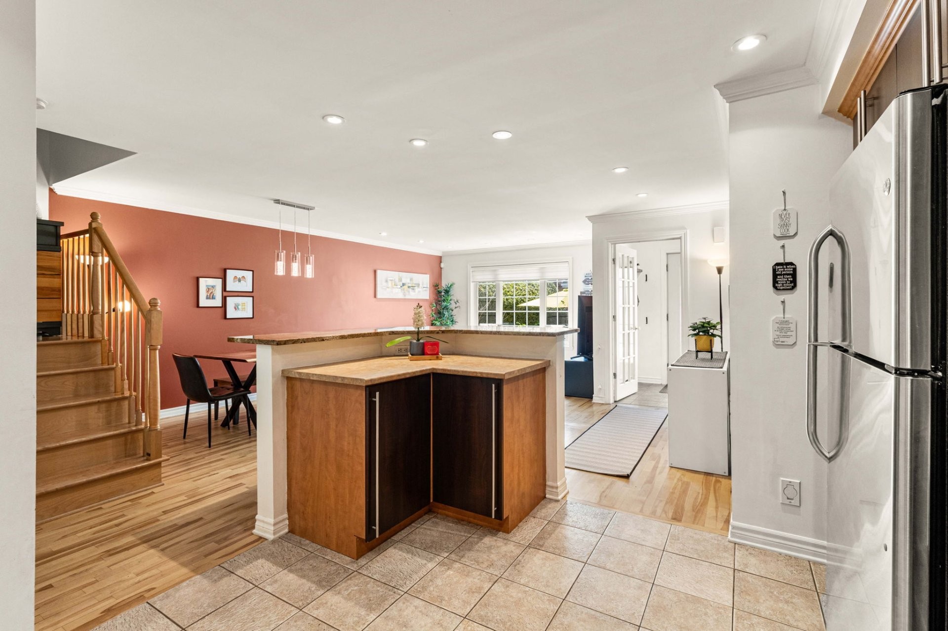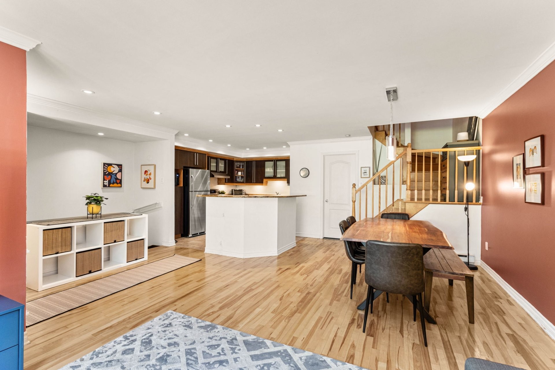 Nichée dans un secteur privé et paisible du recherché Nouveau Saint Laurent, cette maison de ville impeccablement entretenue offre 3 chambres, 1 salle de bain et 1 salle d'eau. Le rez de chaussée lumineux à aire ouverte s'harmonise parfaitement, créant un espace convivial idéal pour le quotidien et les réceptions. Emplacement stratégique près des grands axes et du transport en commun. À quelques minutes des parcs Dr Bernard Paquet et Bois Franc, avec parc à chiens, aire de jeux, jeux d'eau, terrains de basketball, gym extérieur et sentiers pédestres.