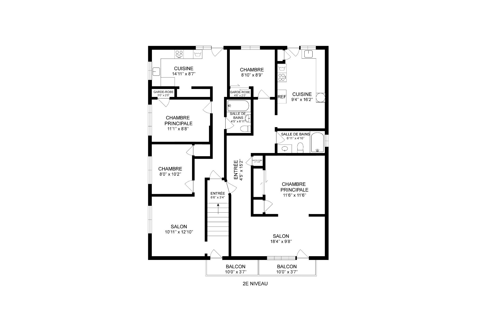 | Cuisine | 2ième étage | 9.4x16.2 P | Céramique | |