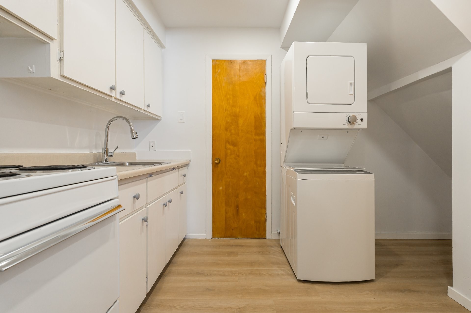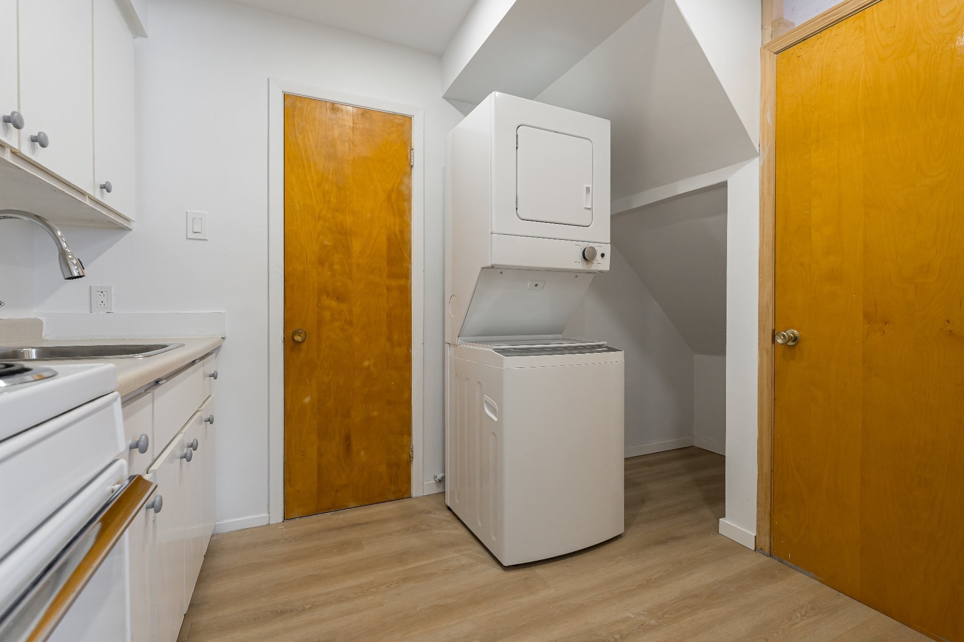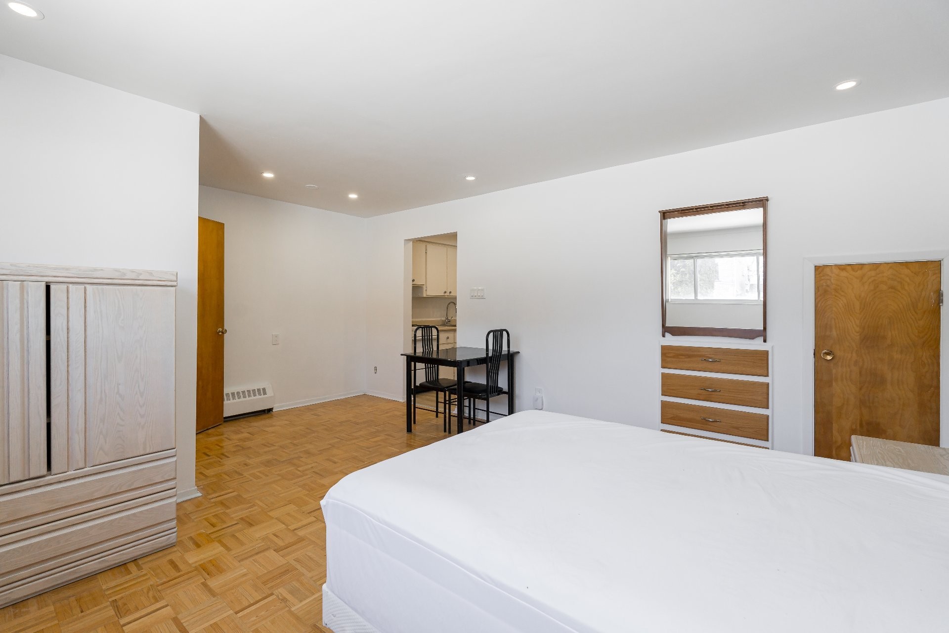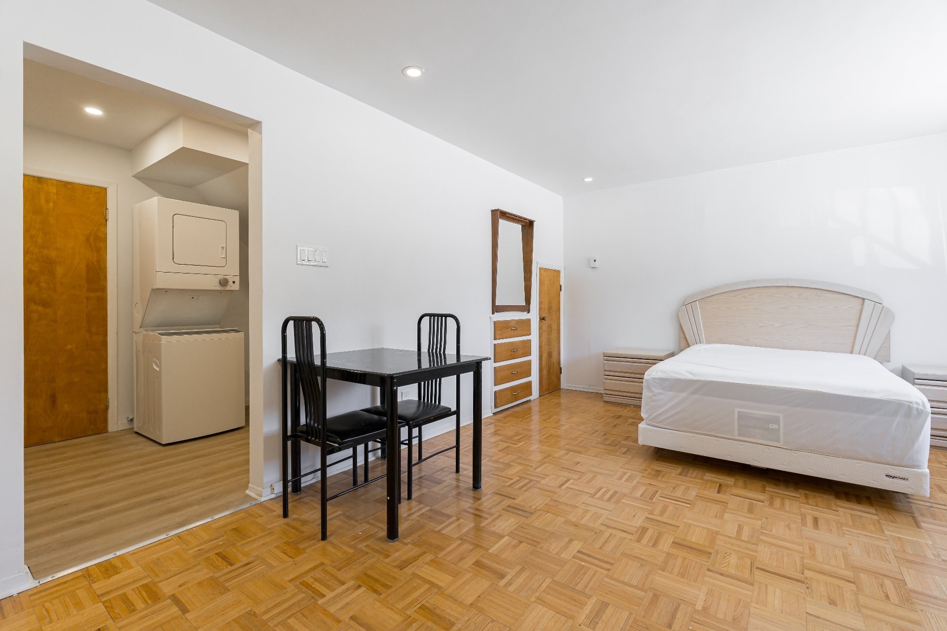 Studio bachelor lumineux et confortable en sous-sol, offrant un espace de vie agréable avec beaucoup de lumière naturelle. L'unité est prête à emménager et équipée de tous les électroménagers essentiels: réfrigérateur, cuisinière, laveuse et sécheuse.