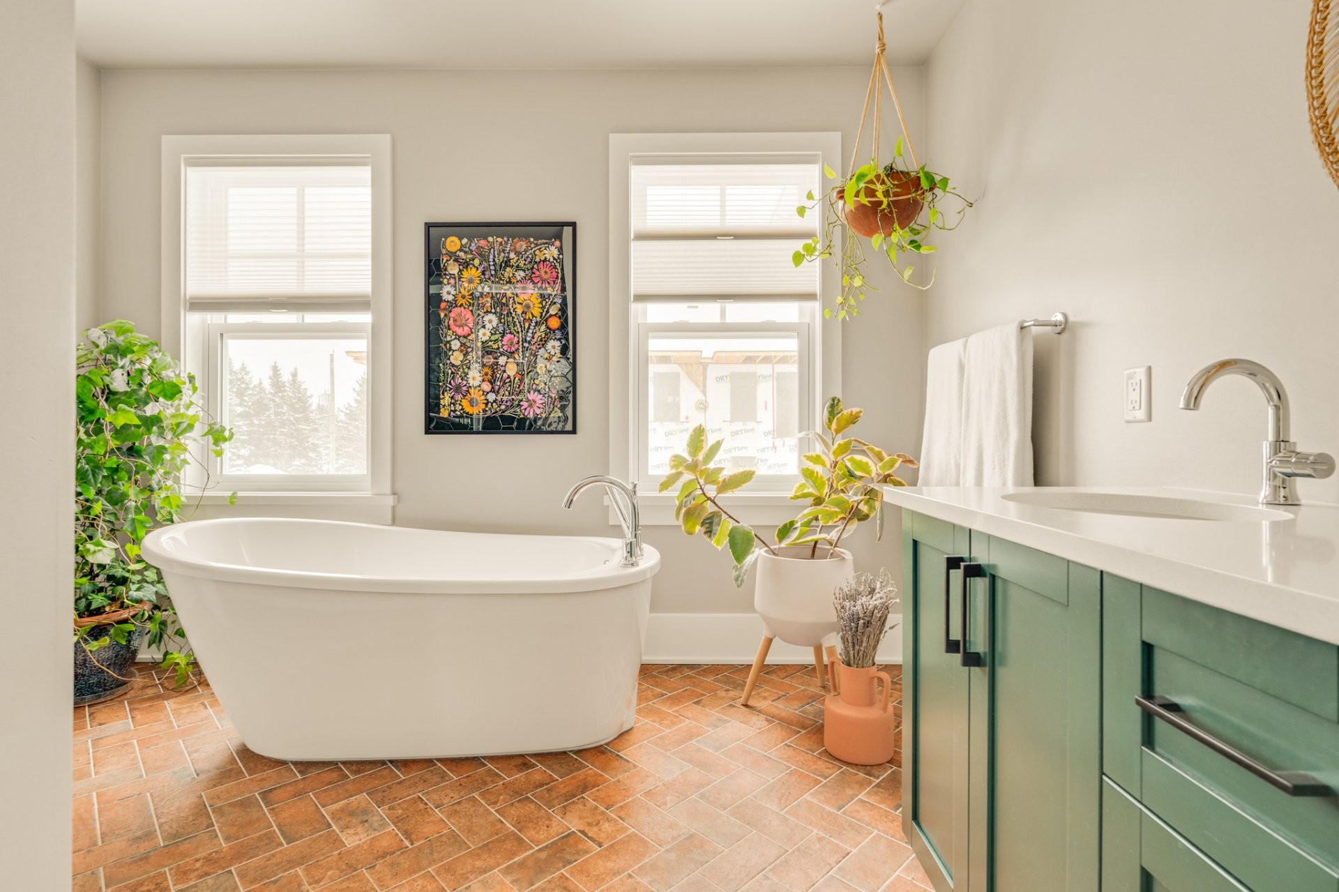*Salle de bains attenante baignée de lumière matinale