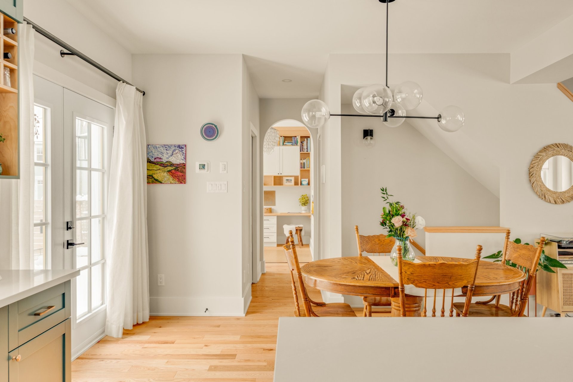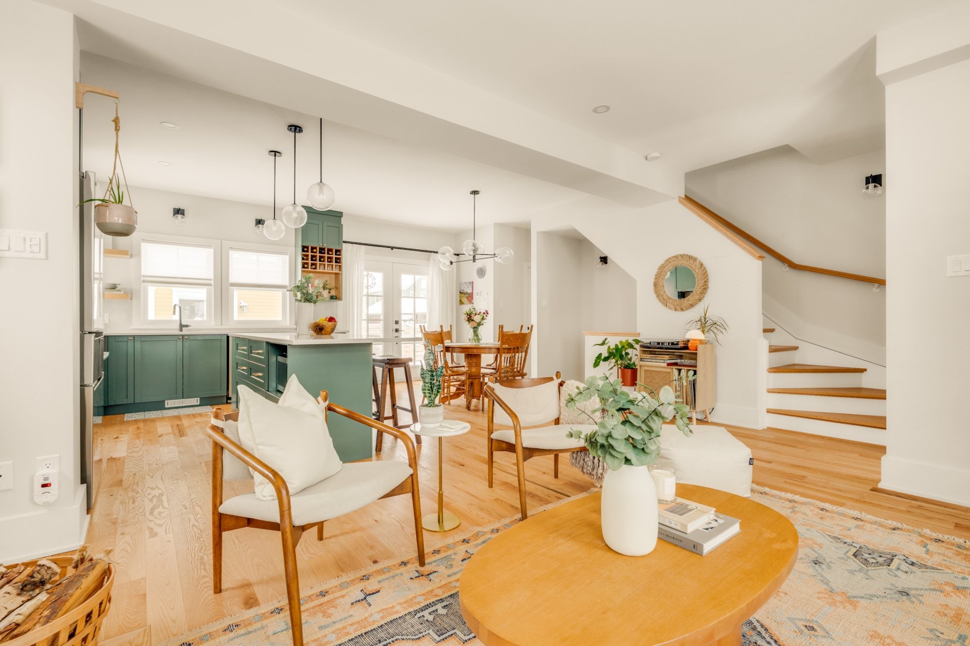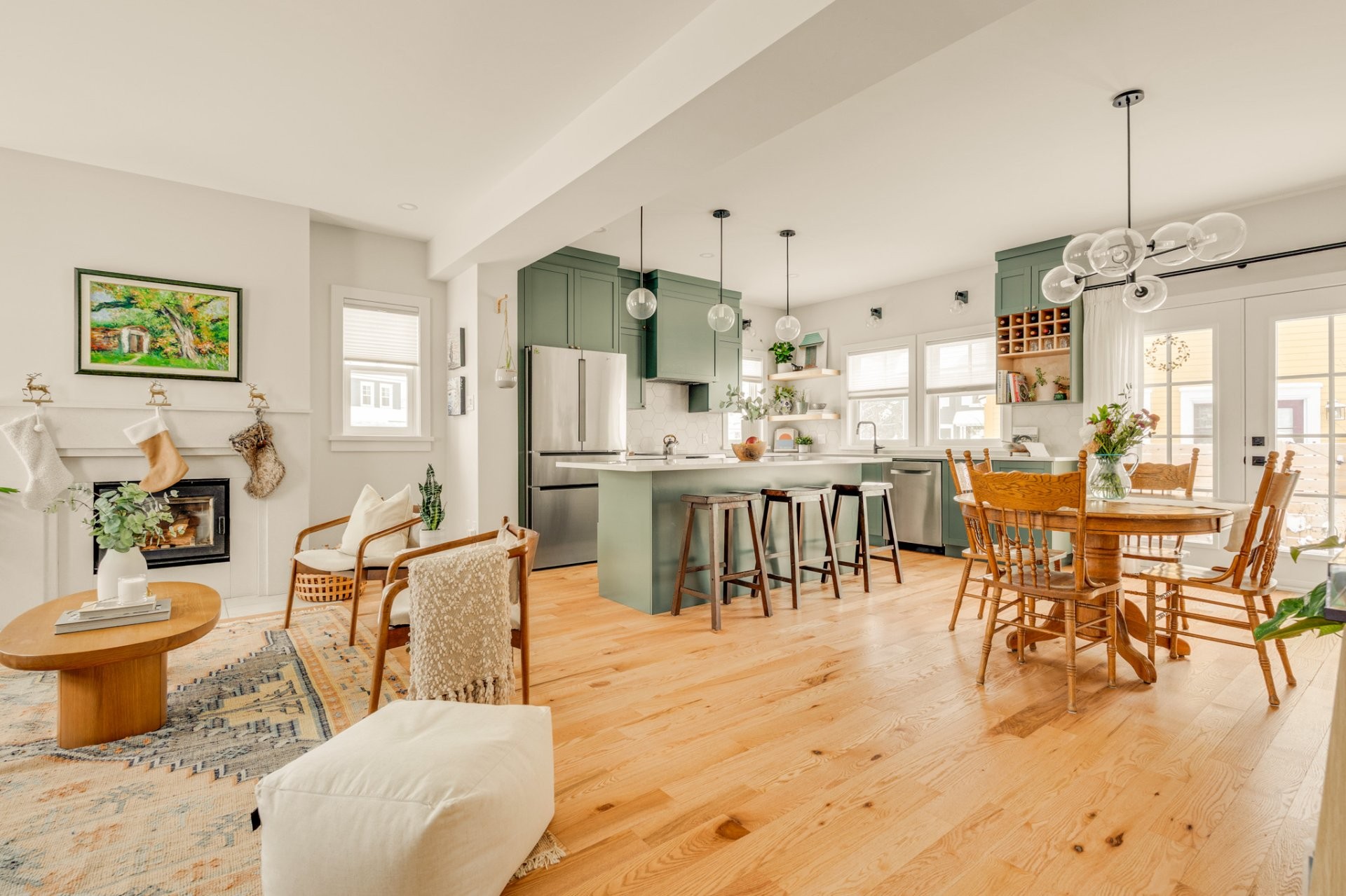 *Rez-de-chaussée à aire ouverte animé par un foyer au bois