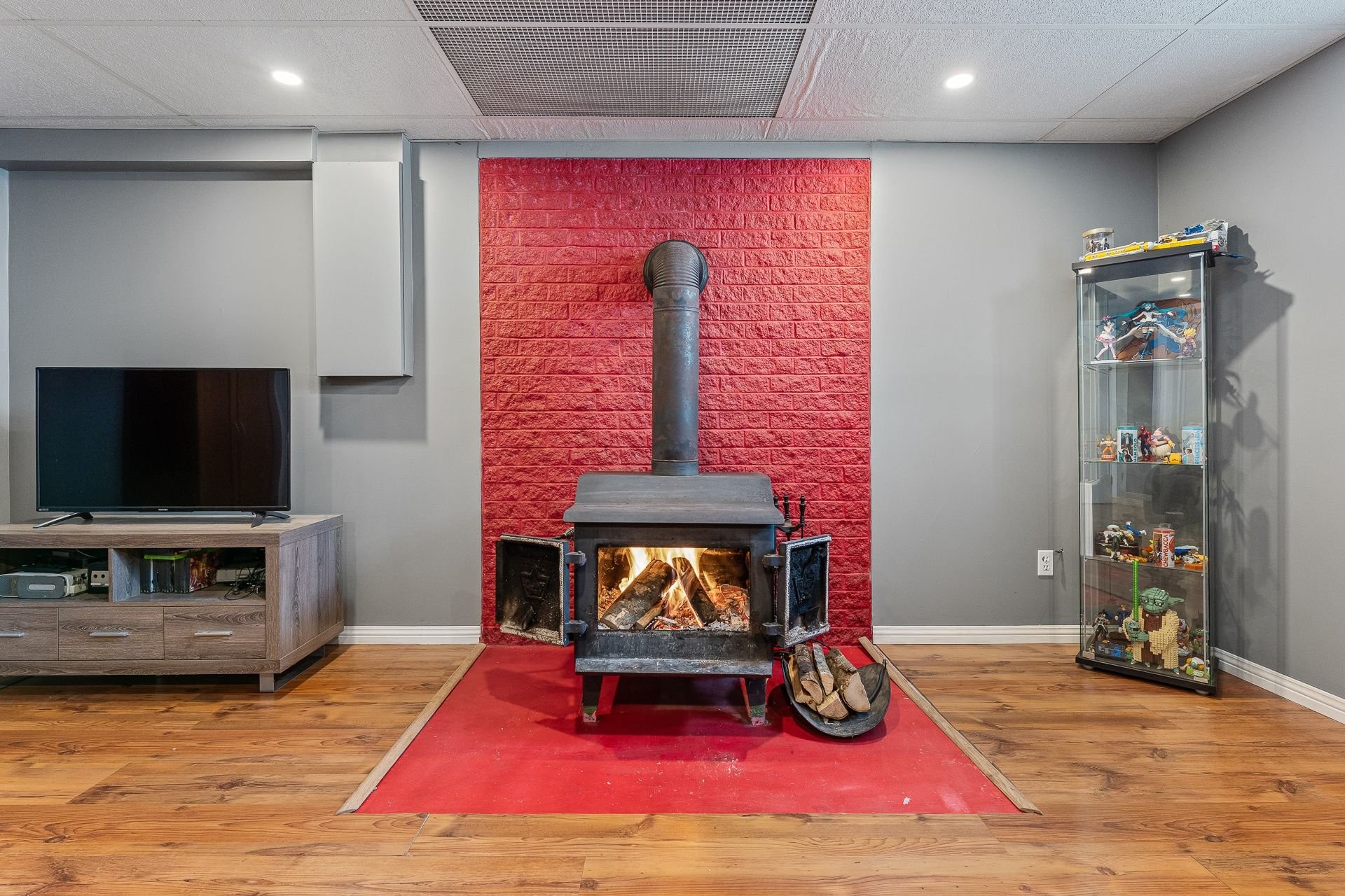 | Salle familiale | Sous-sol | 16.11x13.6 P | Plancher flottant | Poêle au bois |
