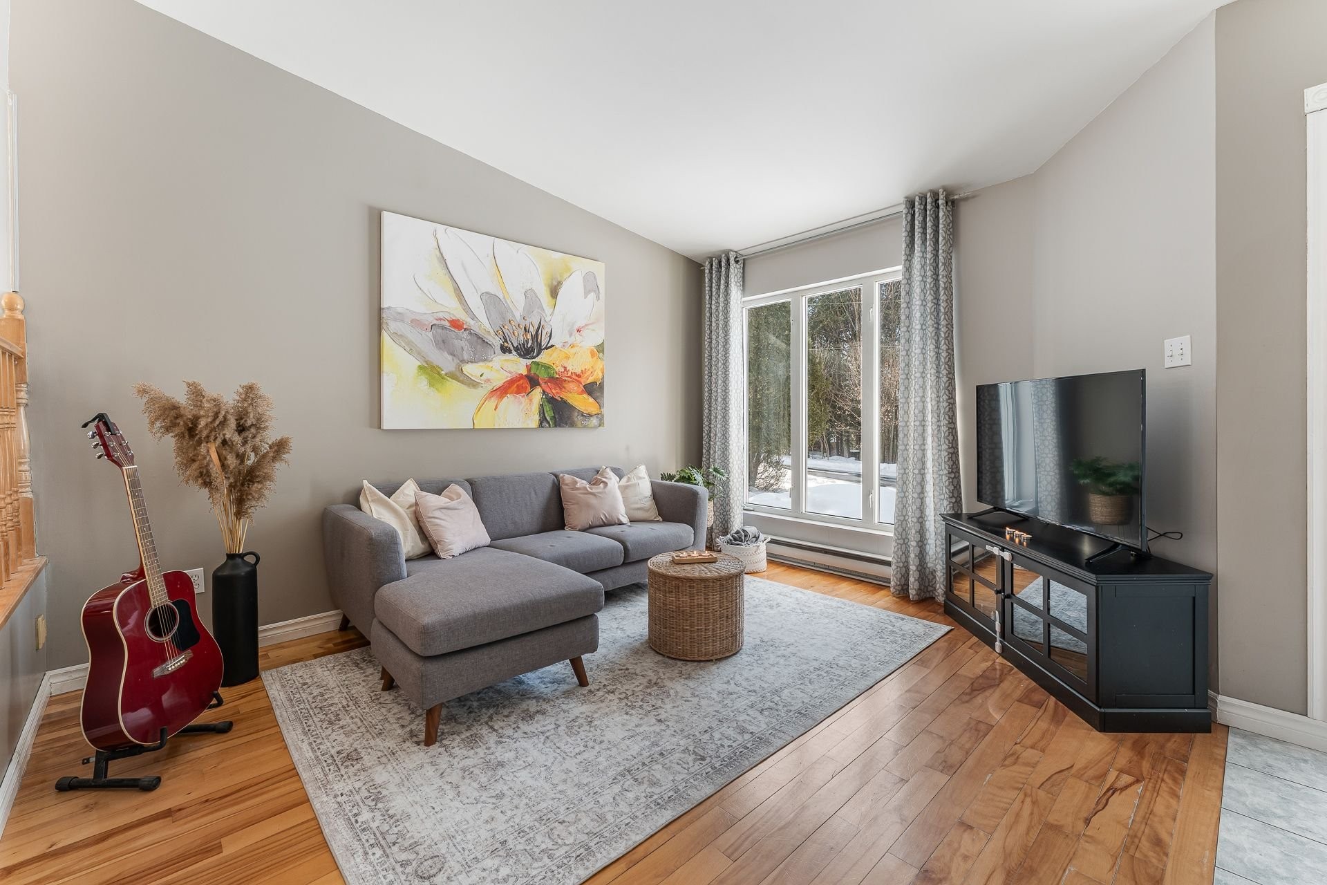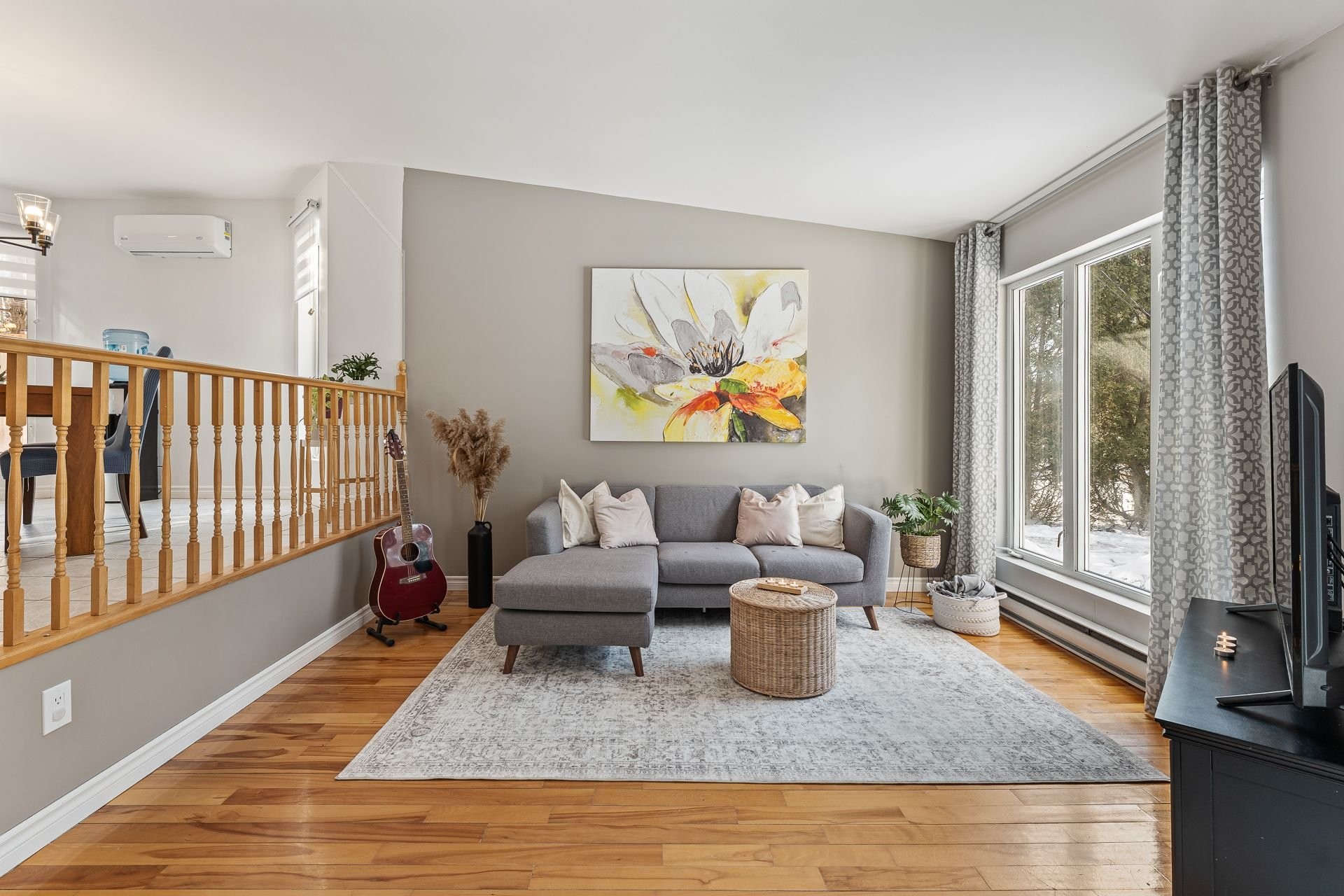Tous les luminaires et ventilateurs, thermopompe murale, tous les stores/pôles/rideaux, lave-vaisselle, miroir salle de bain, foyer extérieur, le bois de chauffage, bacs à jardin