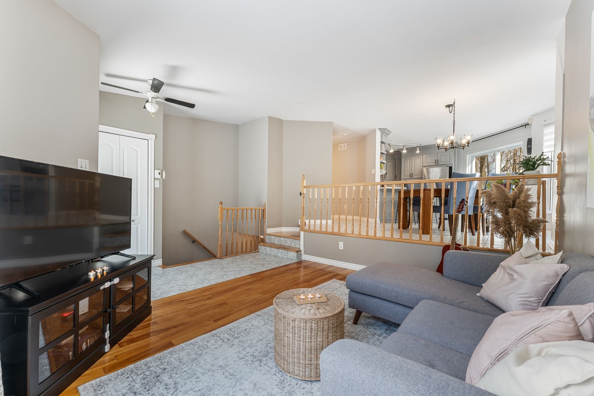 CHARMANTE PROPRIÉTÉ À PALIERS MULTIPLES avec une lumière naturelle incomparable, offrant un plafond cathédrale au salon dès l'entrée! À l'étage, cuisine rénovée avec armoires de qualité, comptoir de quartz et 2 chambres à l'étage avec salle de bains. Au sous-sol, une 3ème spacieuse chambre, grand salle familiale avec chaleureux poêle au bois, ainsi que beaucoup d'espace de rangement. Grand terrain 100 % clôturé, magnifiquement paysagé avec arbres matures et mignon cabanon installé en 2020. Propriété entretenue avec soin et optimisation pour être au goût du jour à travers les années. Quartier très tranquille!