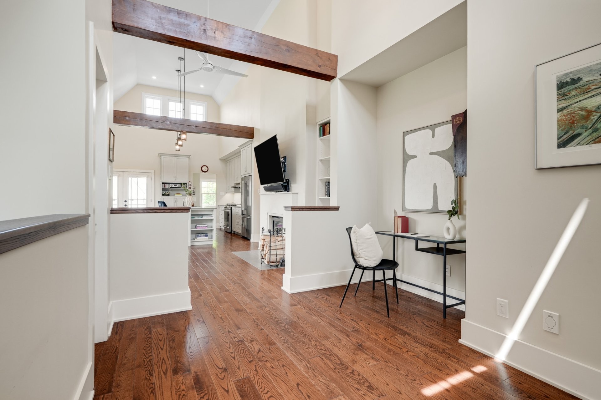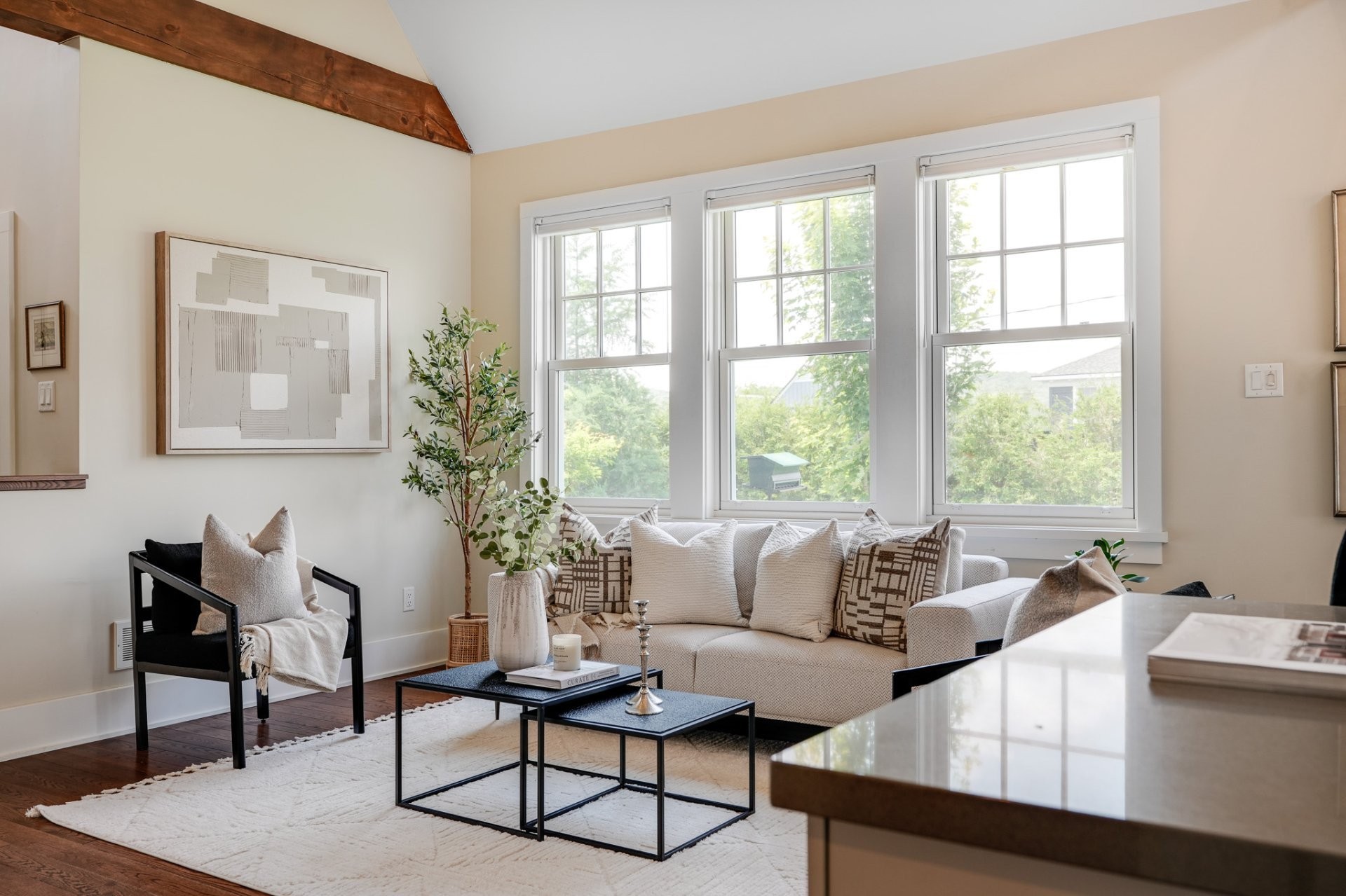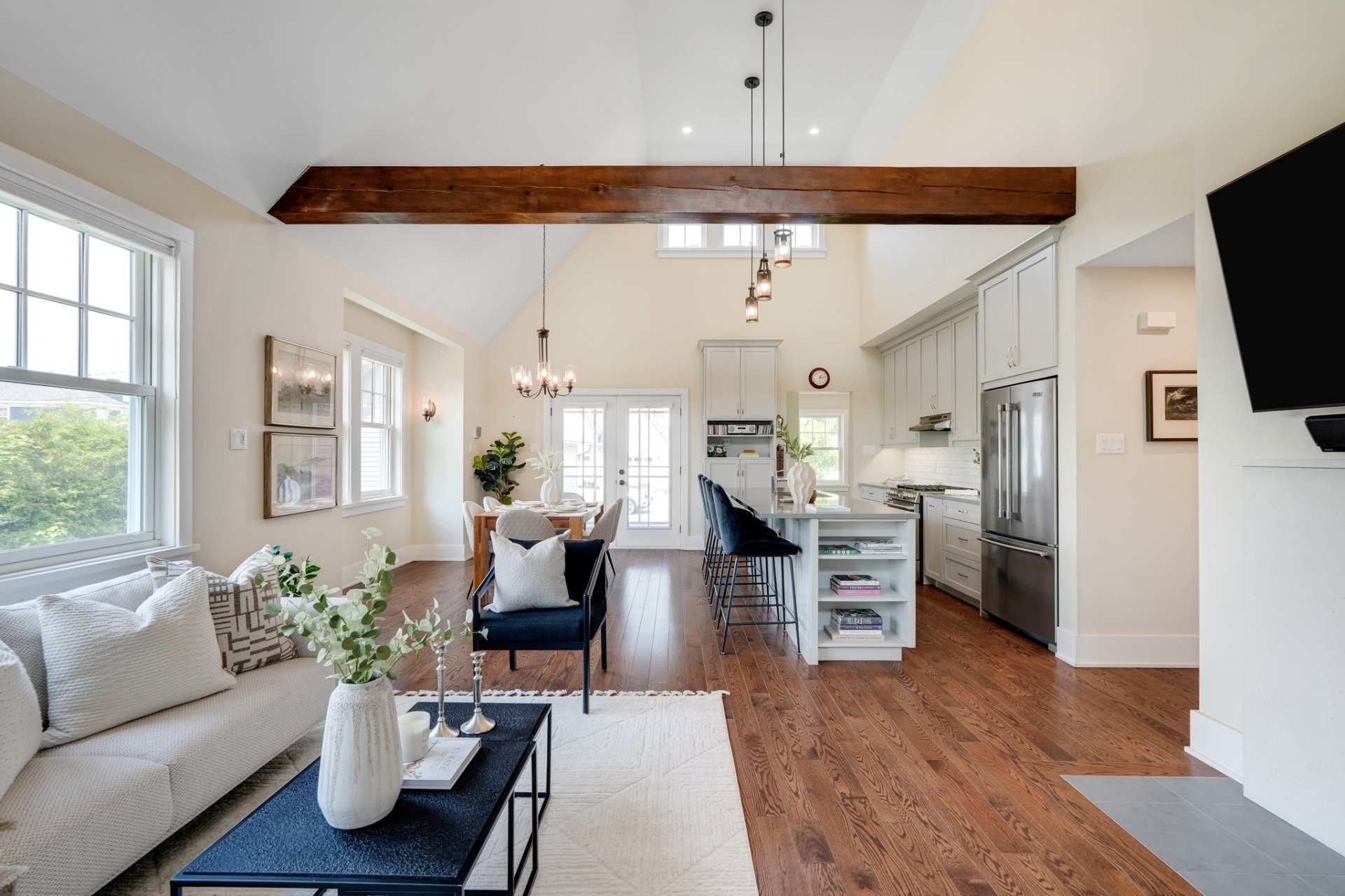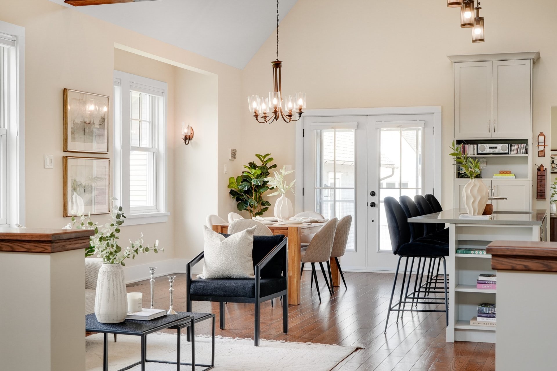 Dotée de hauts plafonds, d'aires entièrement ouvertes, et des finitions haut-de-gamme, cette maison offre une approche rafraîchissante à la vie de village.