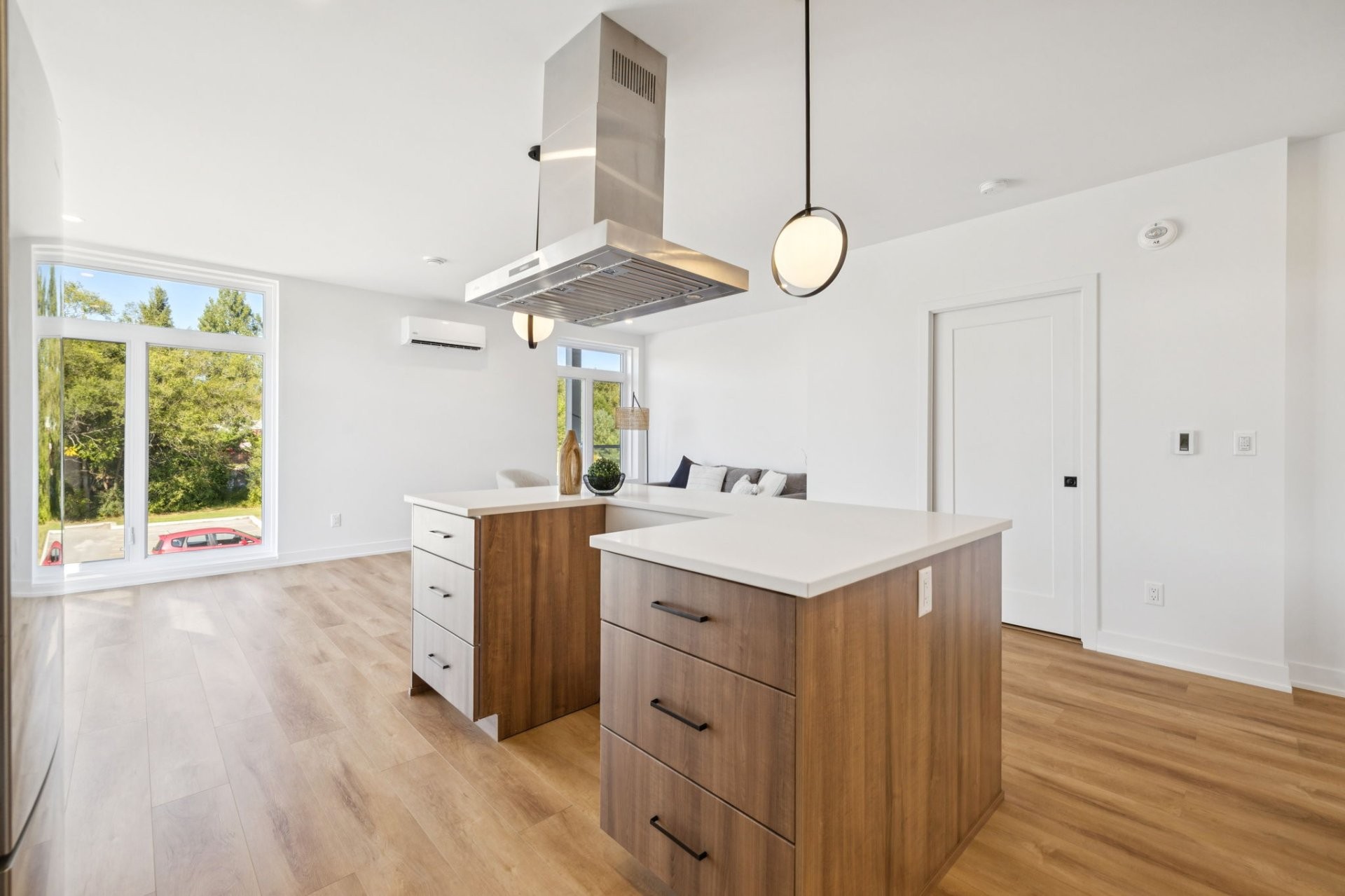 + Garantie de construction résidentielle.+ Superficie d'environ 1313 pieds carrés.+ Garage chauffé avec ouvre porte électrique.+ Vaste espace de rangement extérieur.+ Remonte charge à proximité du garage.+ Espaces communs au design moderne et raffiné.+ Superbe salle à manger avec porte patio de 8' ouvrant sur le balcon.+ Sortie au gaz naturel pour le BBQ.+ La cuisine la pièce centrale qui transformera vos repas en souvenirs mémorables. Avec ses vastes espaces de rangement, son organisation fonctionnelle et ses magnifiques comptoirs en quartz, incluant un dosseret, des portes d'armoires en PVC et une hotte cheminée au-dessus de l'îlot. + Son espace bureau se distingue par son caractère exceptionnel offrant une vue panoramique inspirante.+ Salle familiale chaleureuse et accueillante.+ 1 salle d'eau.+ Vaste volume espace avec plafond de 9 pieds au rez de chaussé.+ Système de chauffage radiant au gaz naturel sur tous les planchers.+ Planchers de bois flottant de qualité supérieure et céramique.+ Air climatisé mural deux têtes.+ Magnifiques luminaires haut de gamme.+ Escalier avec revêtement de tapis de qualité supérieure.+ Chambre des maîtres avec porte patio de 8 pieds s'ouvrant sur bel espace extérieur !+ Salle de bain complète attenante à la chambre des maîtres. + Bain de 36'' x 60'' avec une spacieuse douche intégrée.+ Lavabo double sur la même vanité.+ Walk-in.+ Deuxième chambre à coucher à l'étage avec vue splendide sur l'environnement.+ Salle de bain attenante à la chambre à coucher avec bain/douche avec murs de céramique. Robinetterie de qualité supérieure.+ Espace pour laveuse/sécheuse superposée à l'étage.
