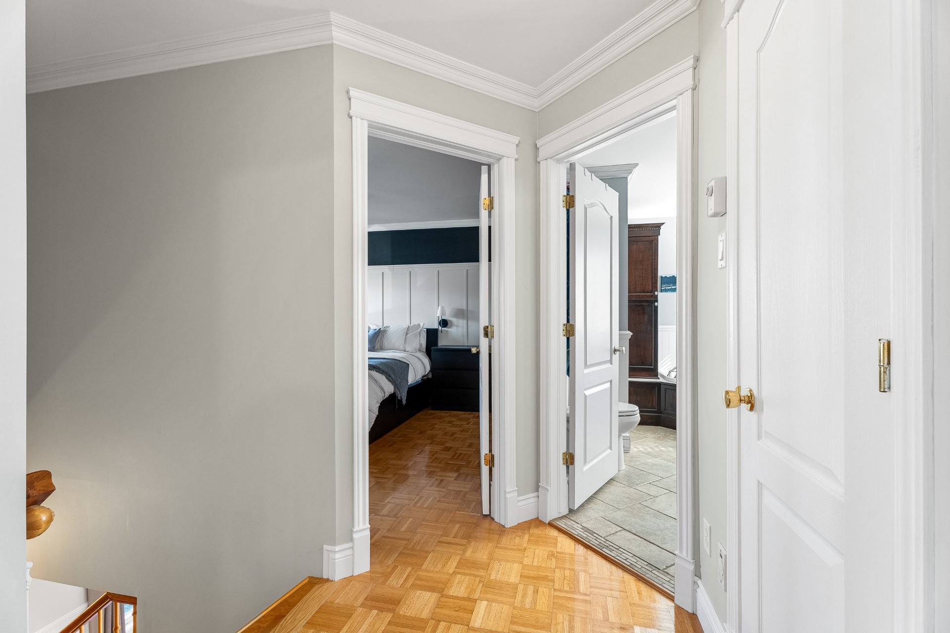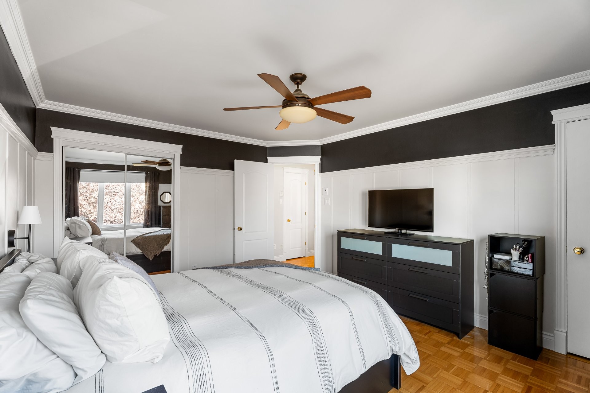 | Chambre à coucher principale | 2ième étage | 14.9x12.2 P | Parqueterie | Garde-rode et walk-in |