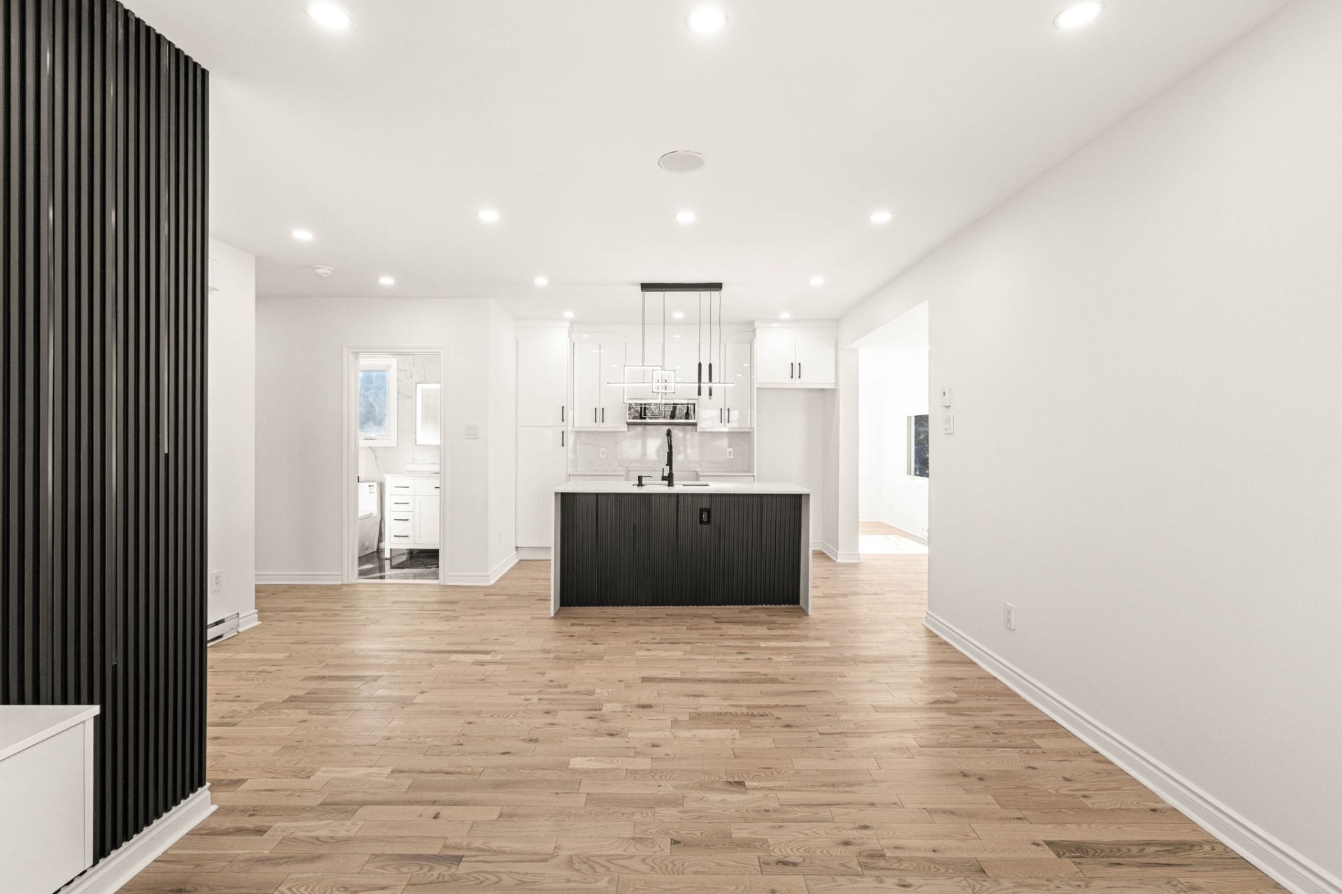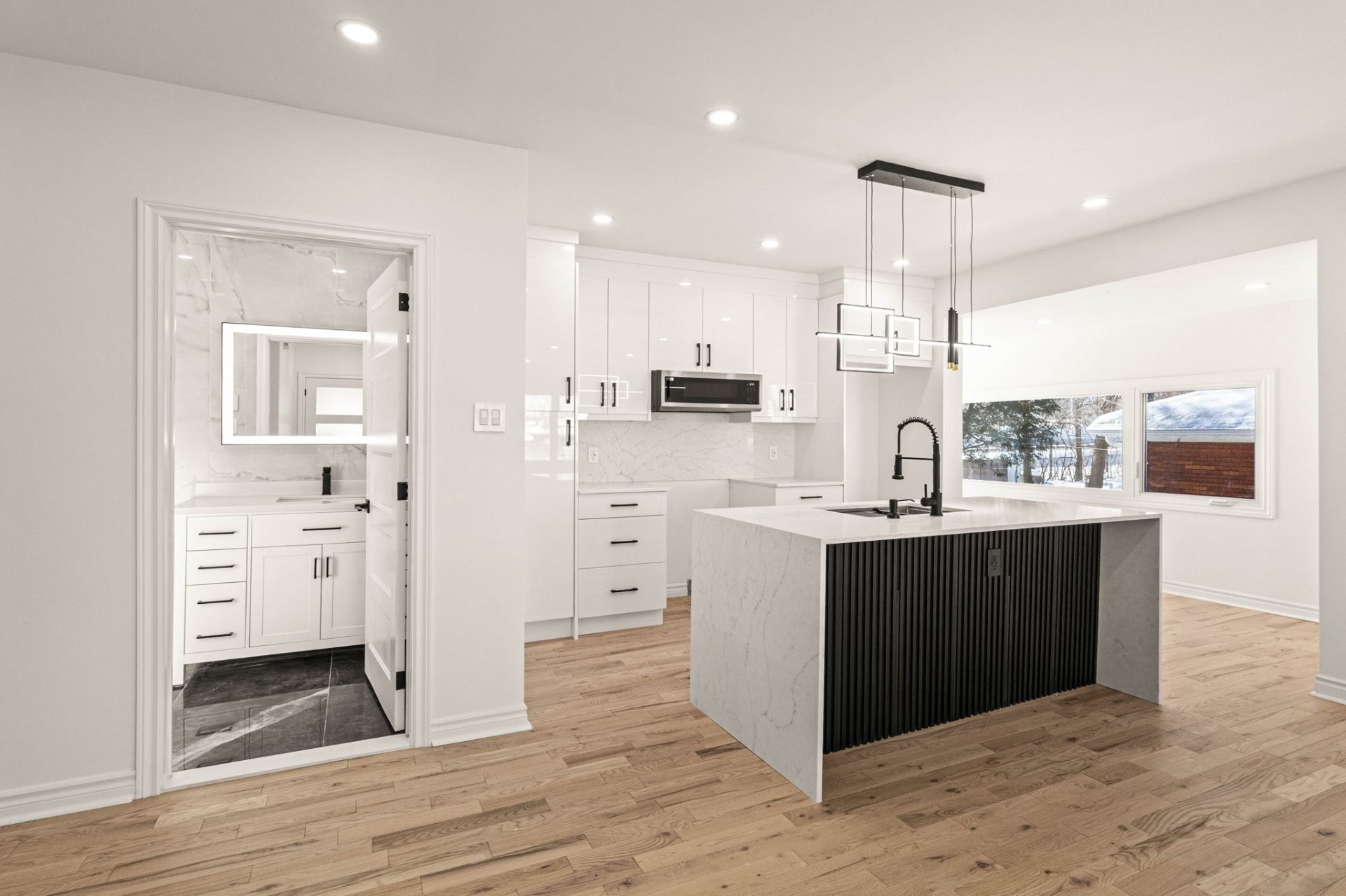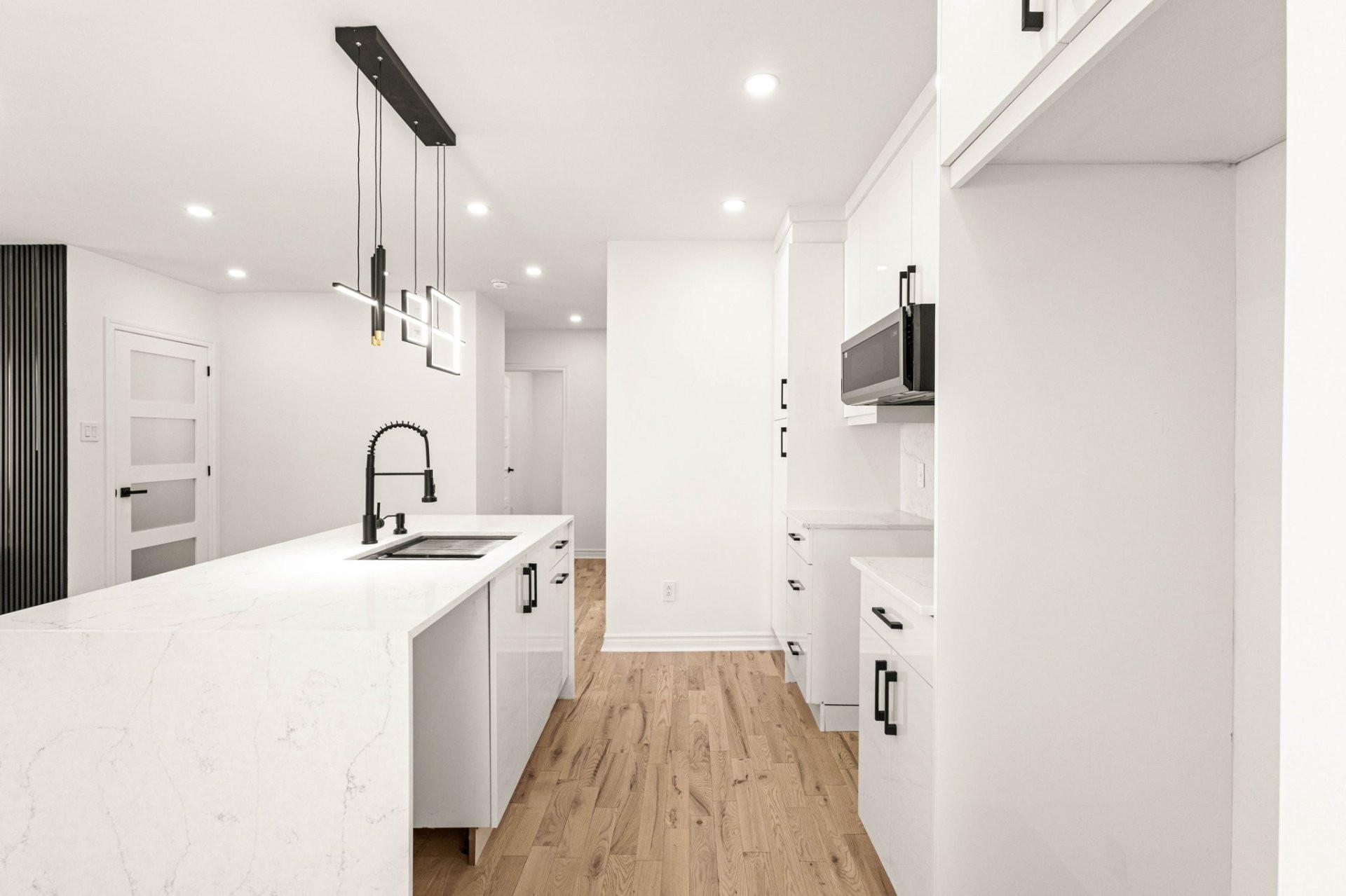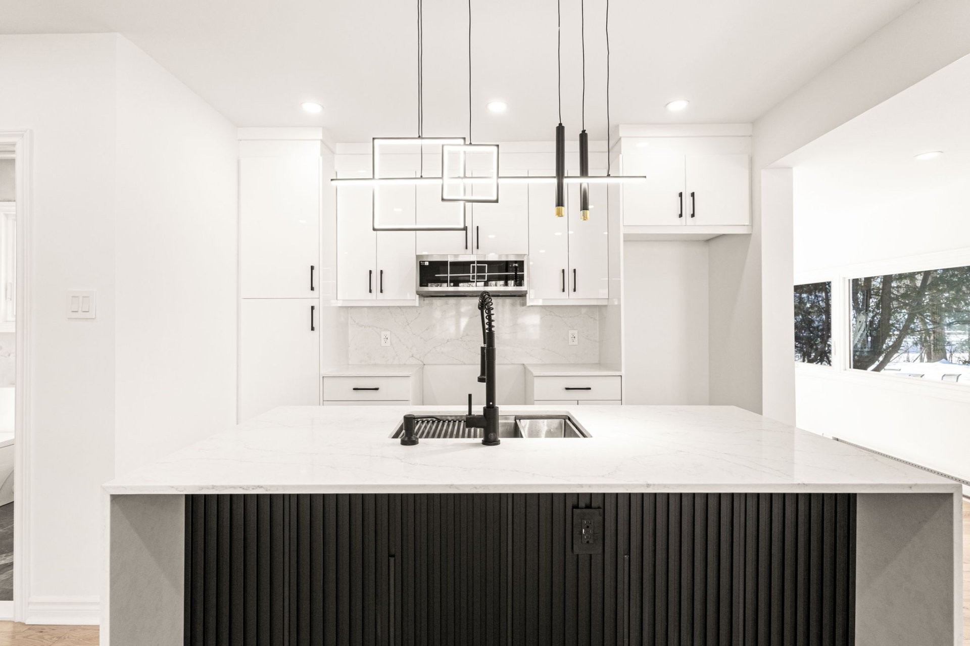 - Nouvel îlot de cuisine avec comptoirs en quartz dans toute la cuisine