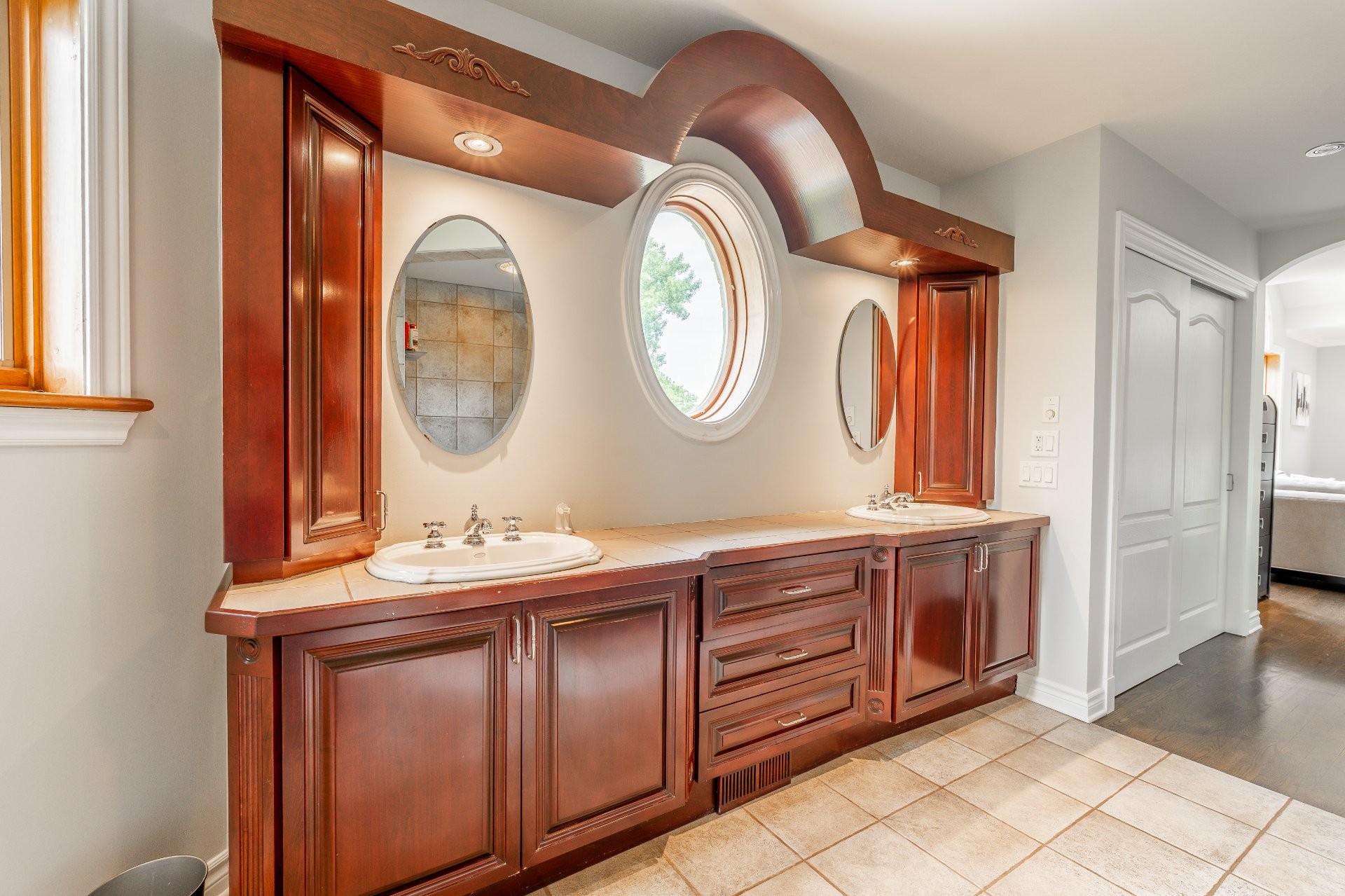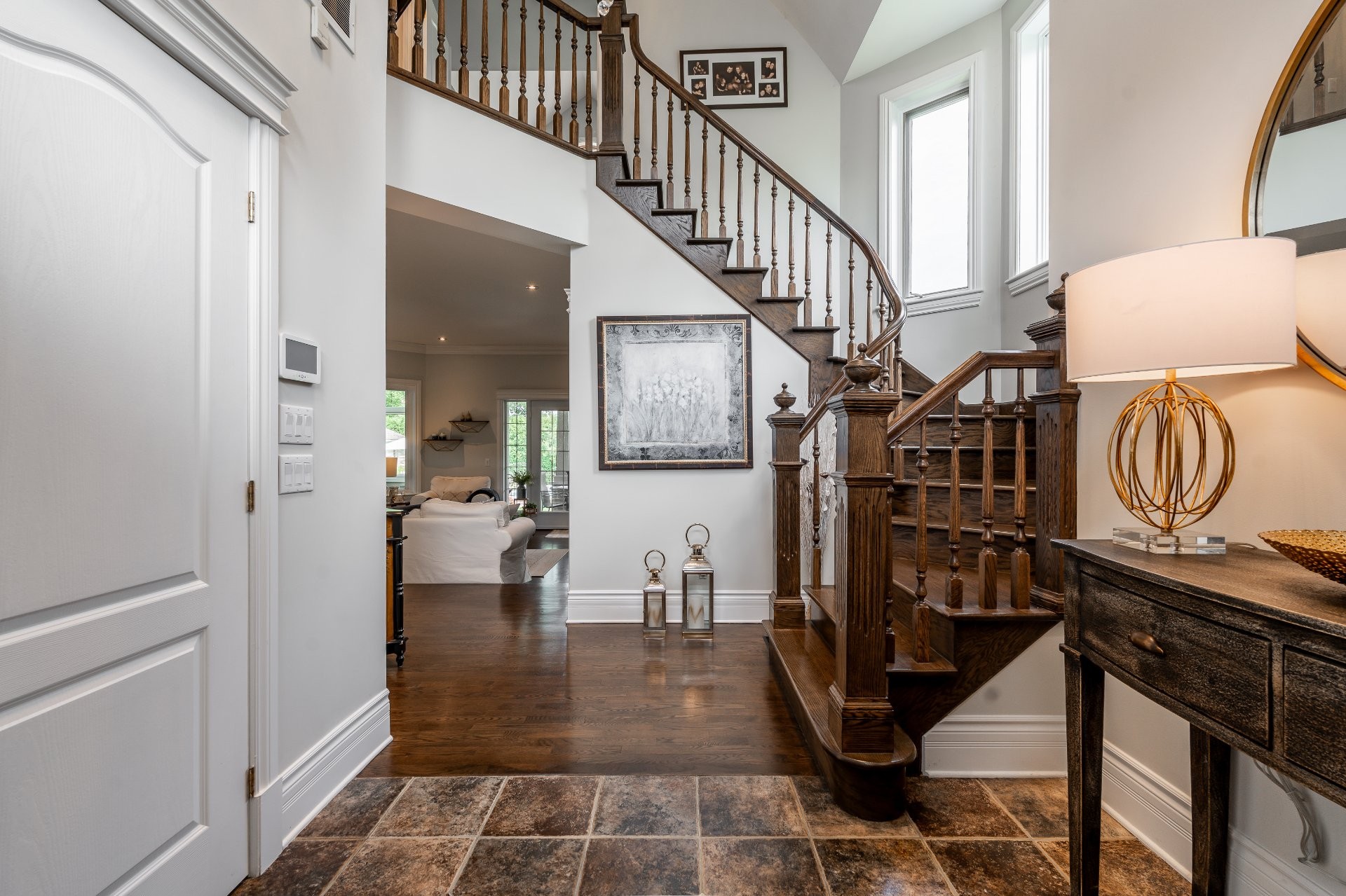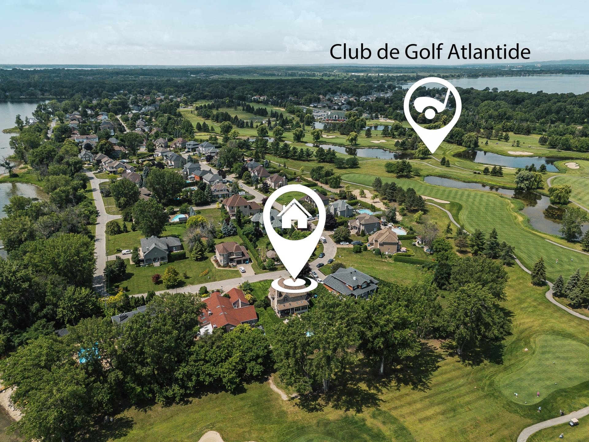 Résidence imposante et intemporelle de 5 chambres, avec un plan d'étage ouvert ultime, sur un croissant et adossé au 7e trou du réputé golf Atlantide, avec vue partielle sur l'eau. Escalier et planchers en chêne, plafonds 9--18 pi, plinthes/moulures surdimensionnées, foyers au bois et au propane, grande salle à manger et salon (vue sur le jardin), solarium/2e salle à manger, cuisine en bois (comptoirs quartz) avec dinette luxueuse sur mesure, grande suite CAC principale, sous-sol rénové avec accès garage, garage double (époxy) et cour privée avec piscine creusée (clôturée) au sel, patio, véranda, cabanon et accès municipal à la mise à l'eau.