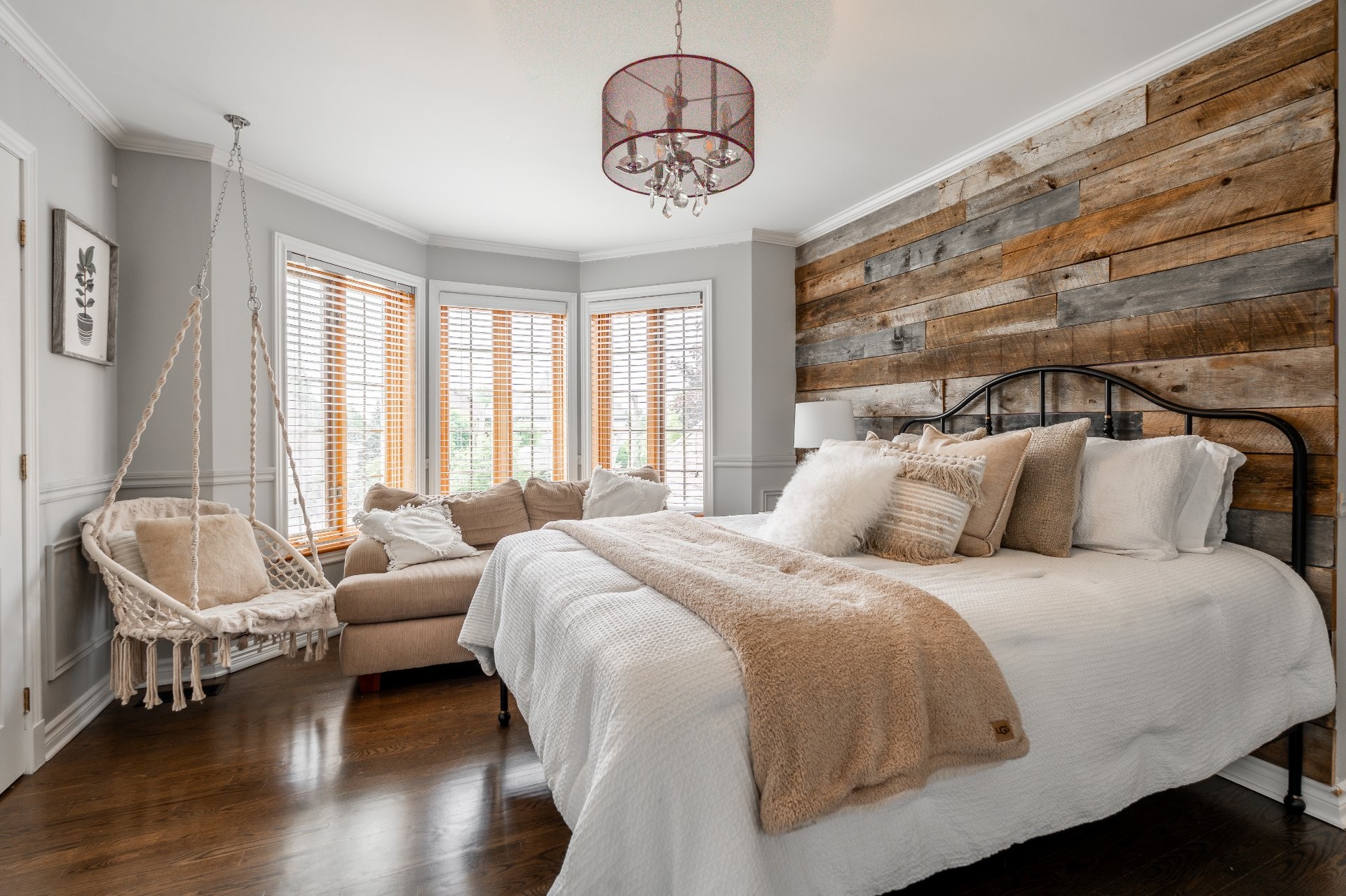 | Chambre à coucher | 2ième étage | 15.10x11.9 P | Bois | Mur décoratif en bois flotté |