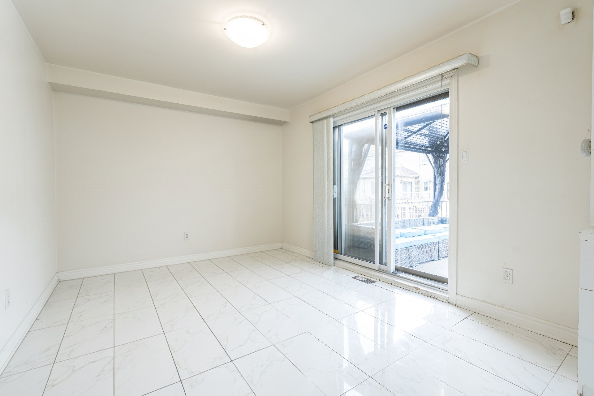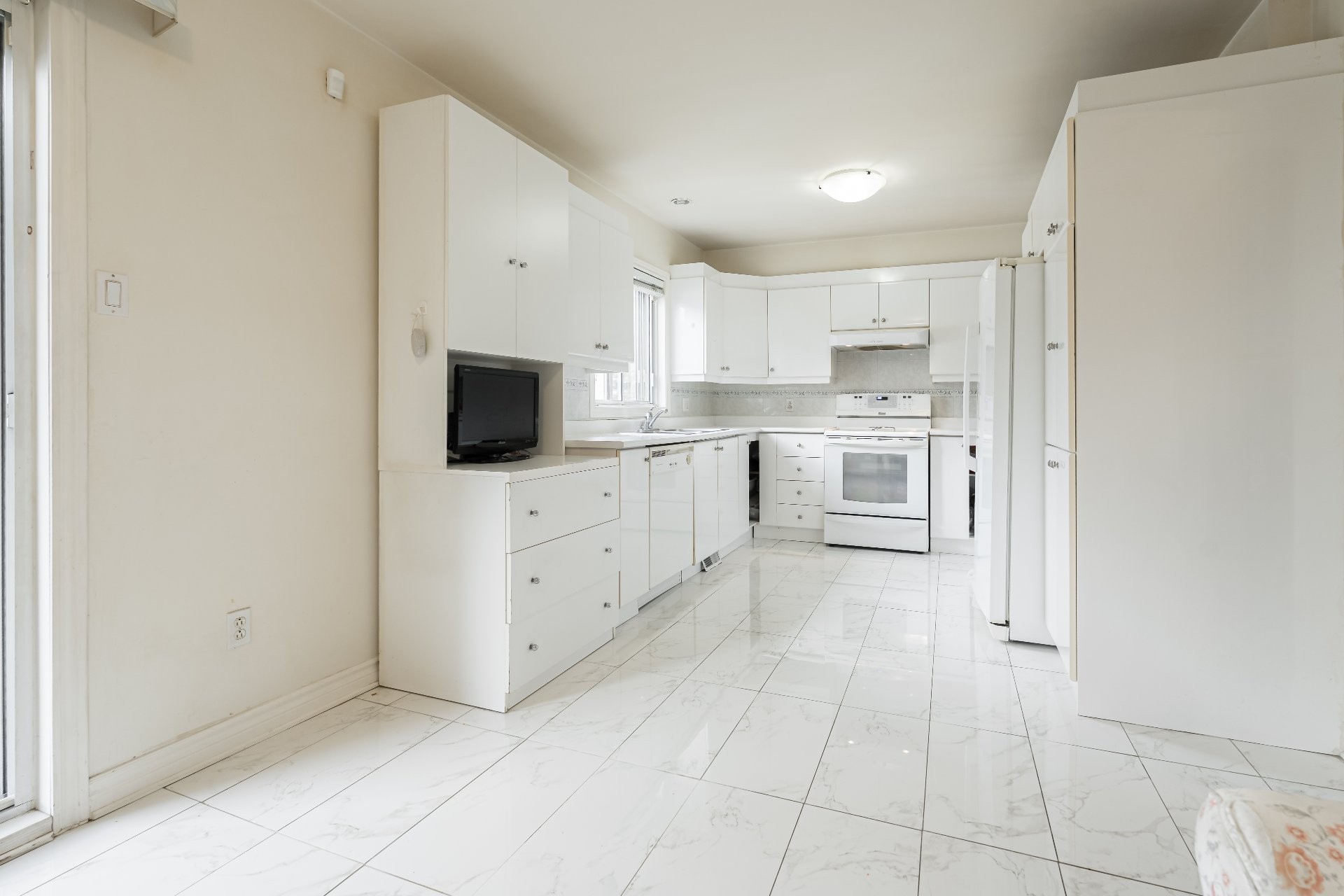 - La cuisine offre un coin repas additionnel ou kitchenette, menant à la terrasse arrière et à une cour de bonne dimension