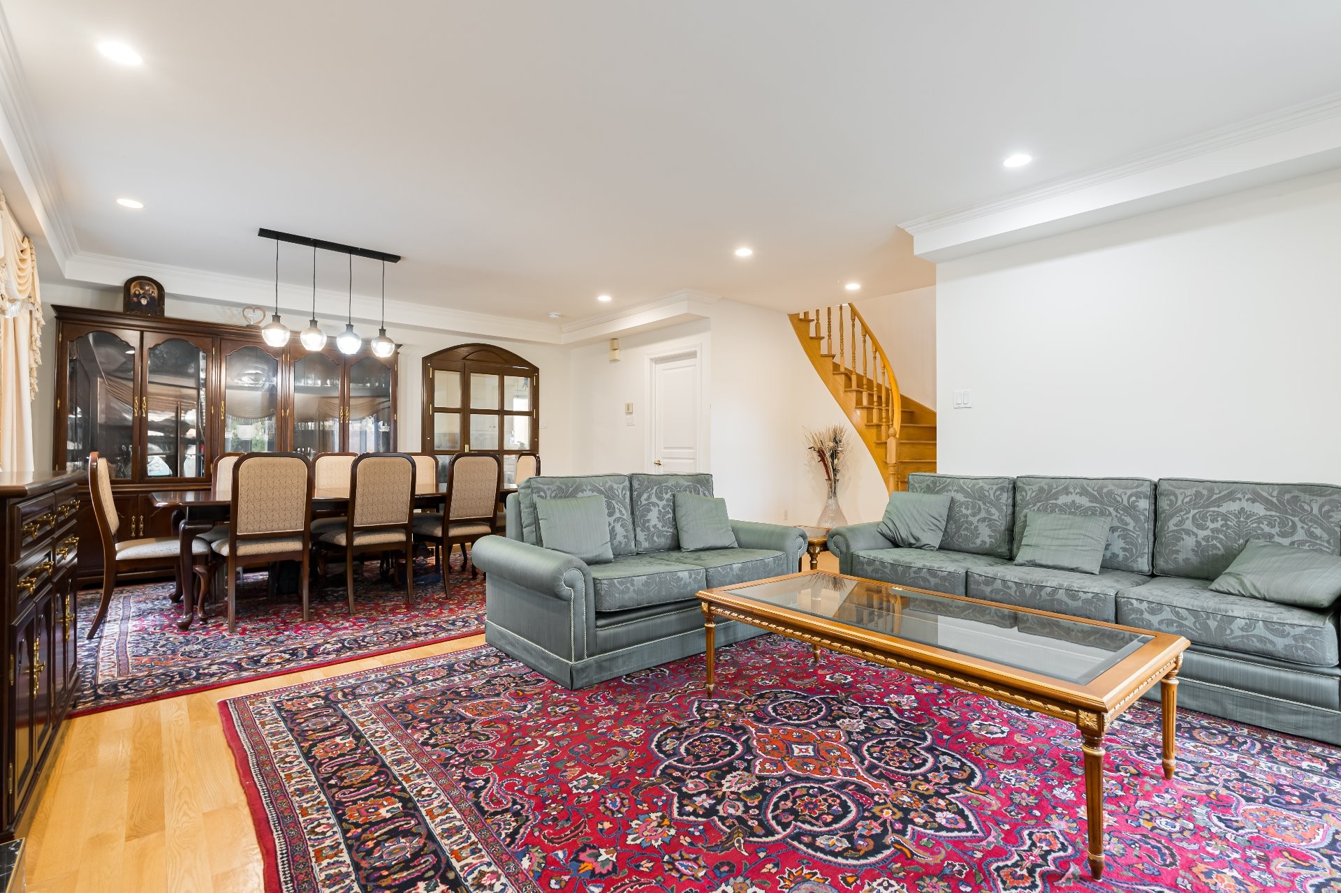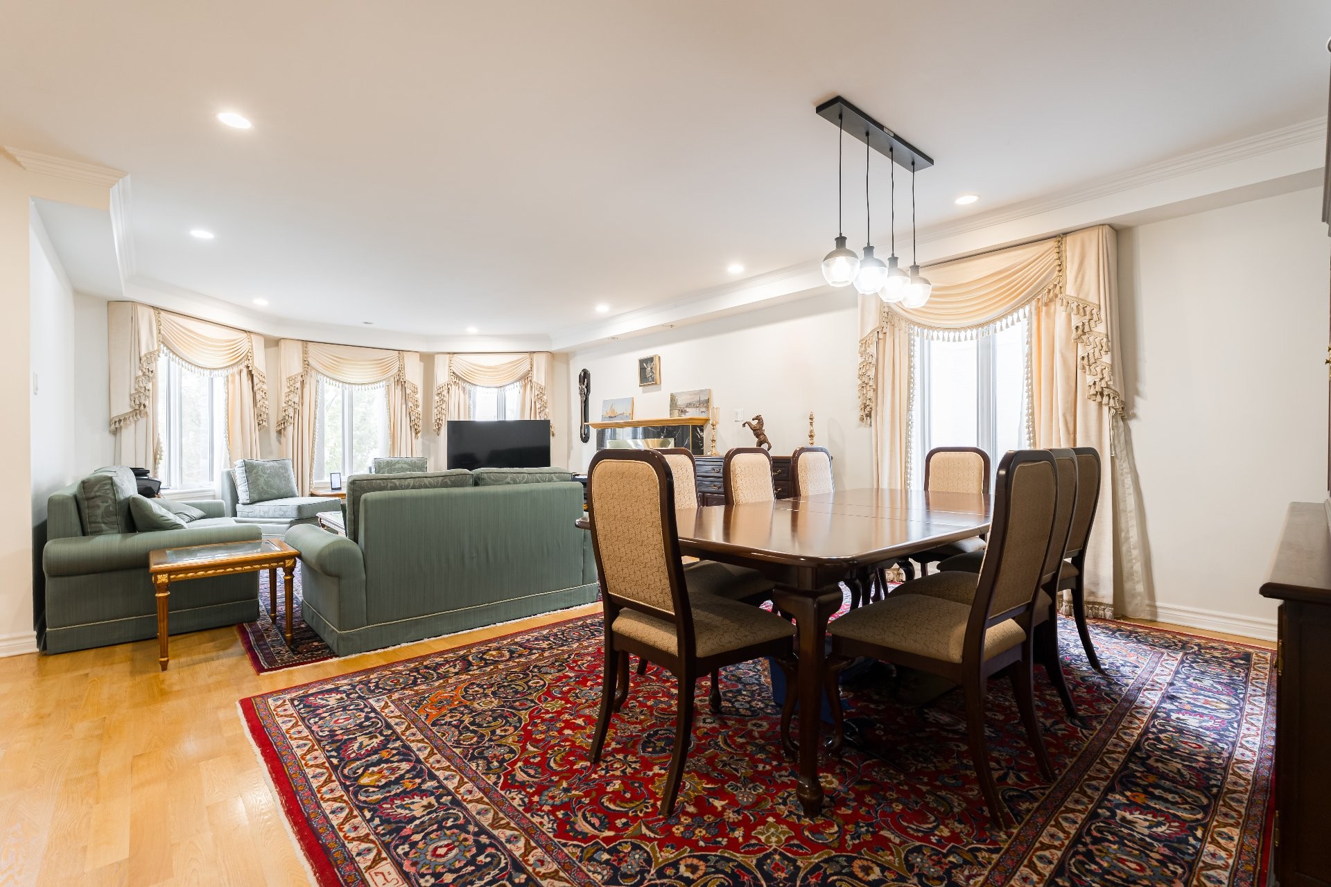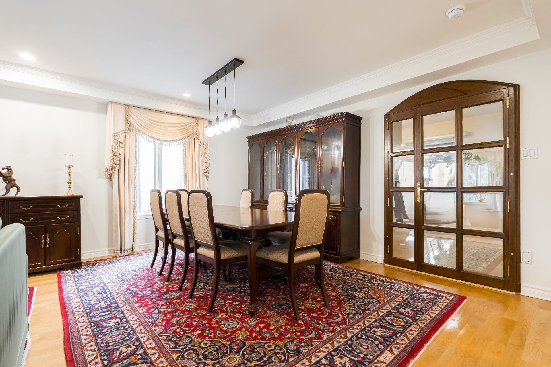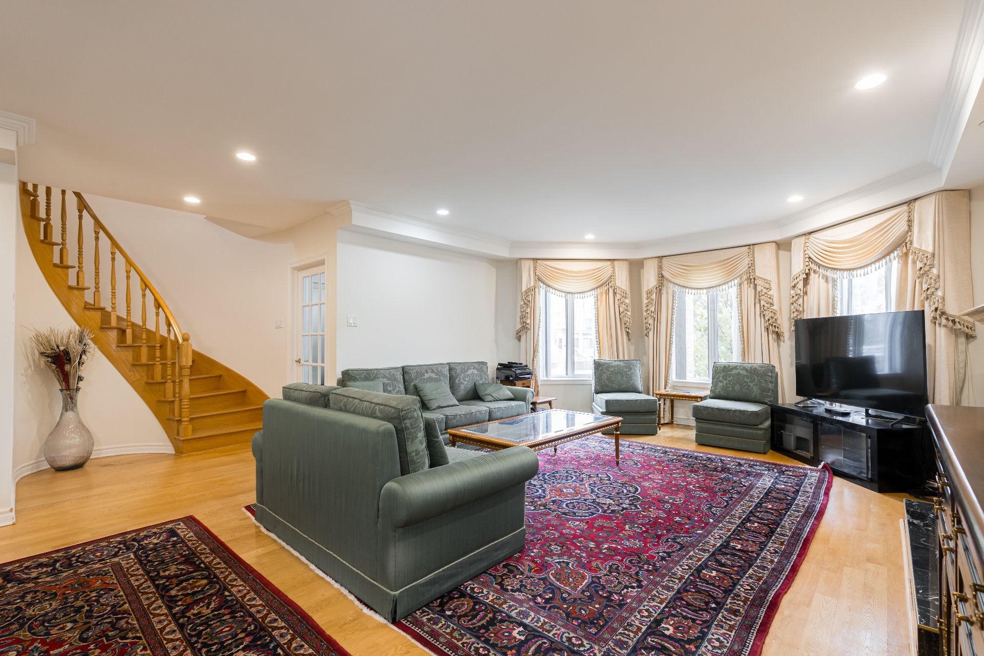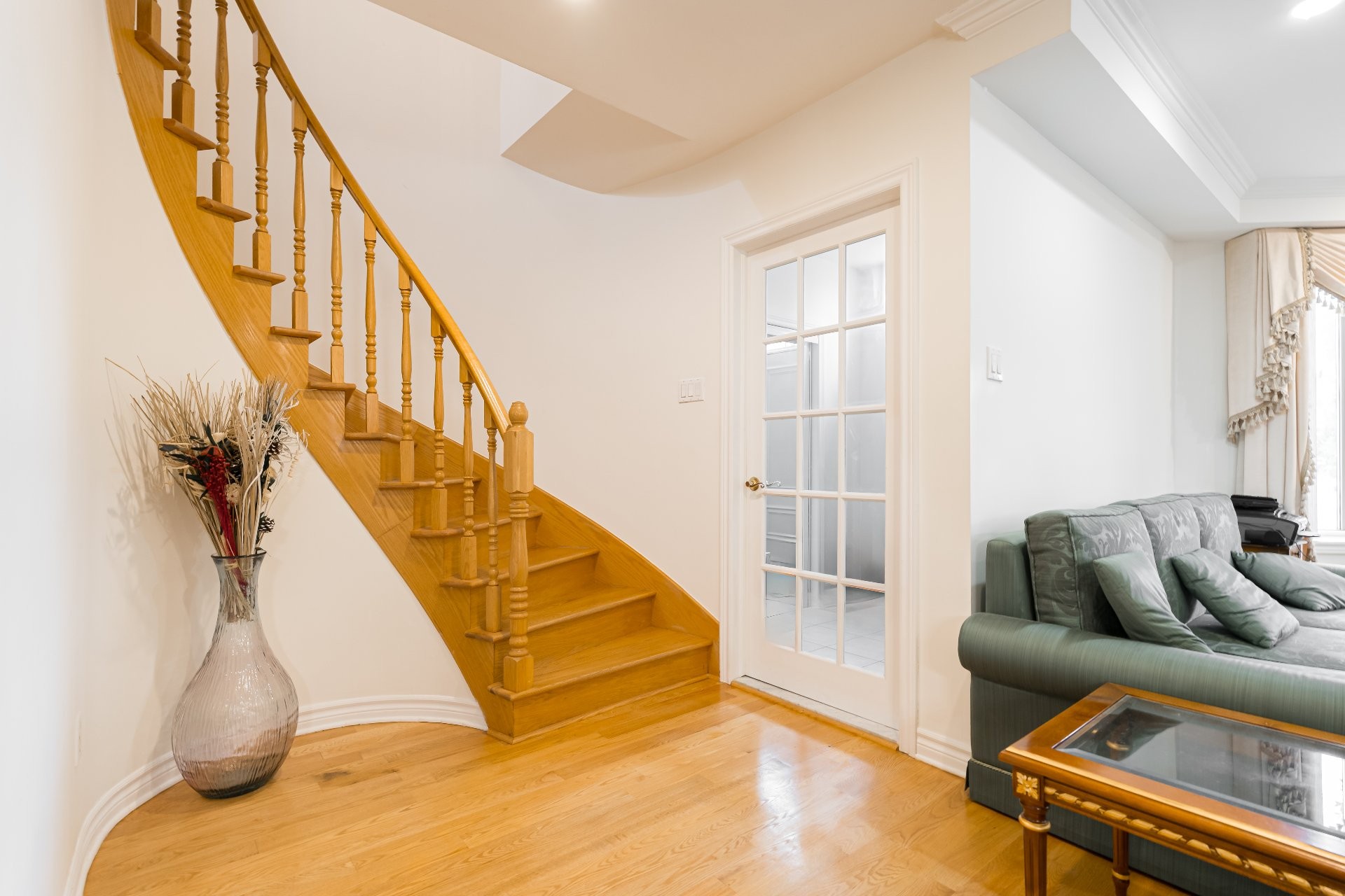 - Le vestibule fermé à l'entrée mène vers de grandes pièces lumineuses grâce à des fenêtres abondantes et un éclairage encastré