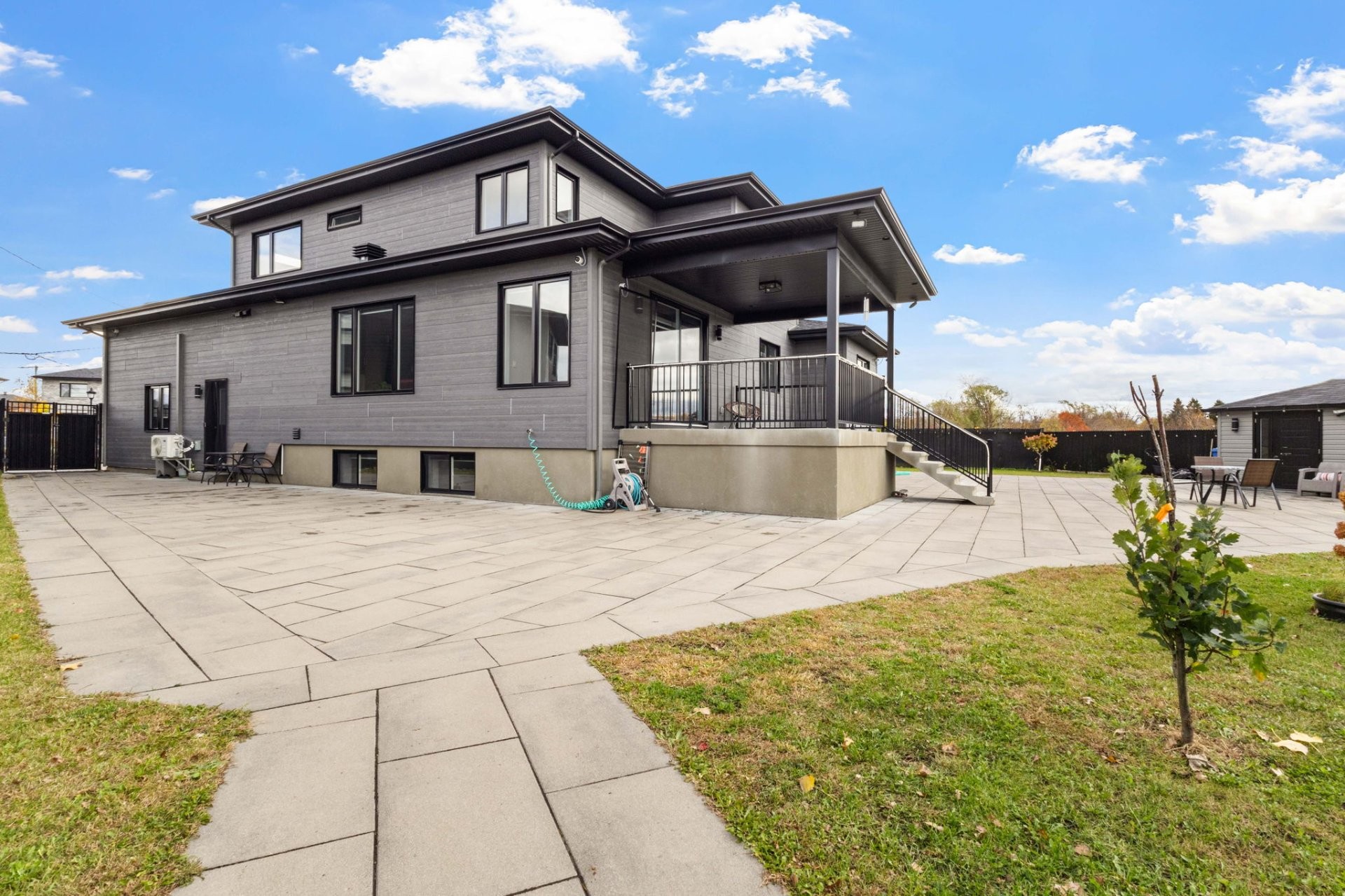 Érigée sur un terrain entièrement paysagé et clôturé de plus de 10 000 pi², cette résidence offre une intimité totale avec aucun voisin à l'arrière. Une vaste allée en pavé de pierre mène à une entrée imposante, tandis que la cour arrière a été conçue pour recevoir : terrasse et patio couverts, pavés de pierre, et éclairage extérieur abondant. La propriété est équipée d'un système complet de caméras et de surveillance extérieure, inclus dans la vente.