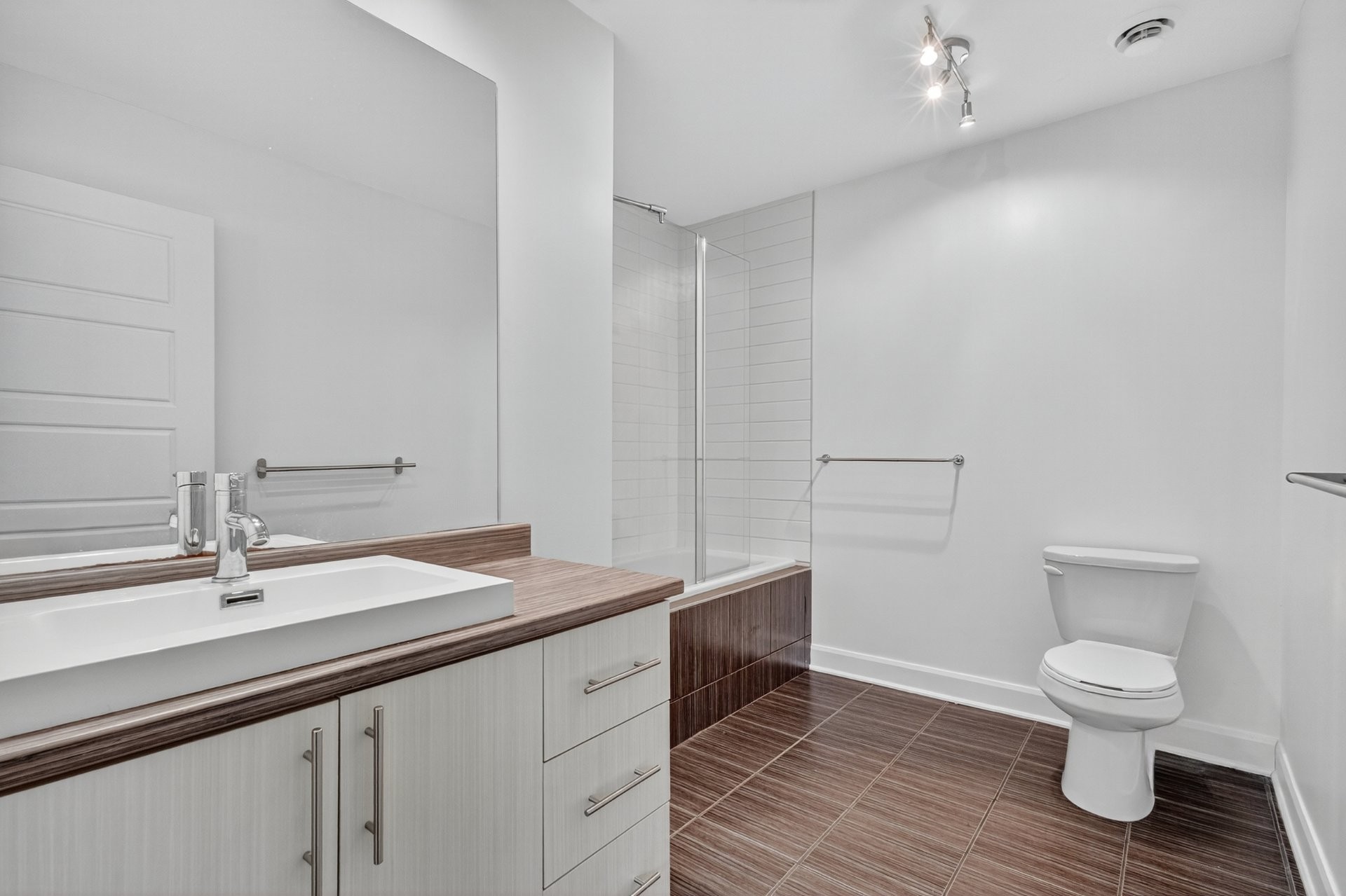 Caractéristiques principales :2 stationnements extérieurs inclusConstruction de haute qualitéIntérieur soigné Céramique à l'entrée, dans la salle de bain et la cuisineDalles de béton entre les étages pour une isolation acoustique maximaleArmoires de cuisine jusqu'au plafondAires ouvertes, cuisine contemporaine et salle de lavage indépendanteVue sur un charmant petit boisé en arrière
