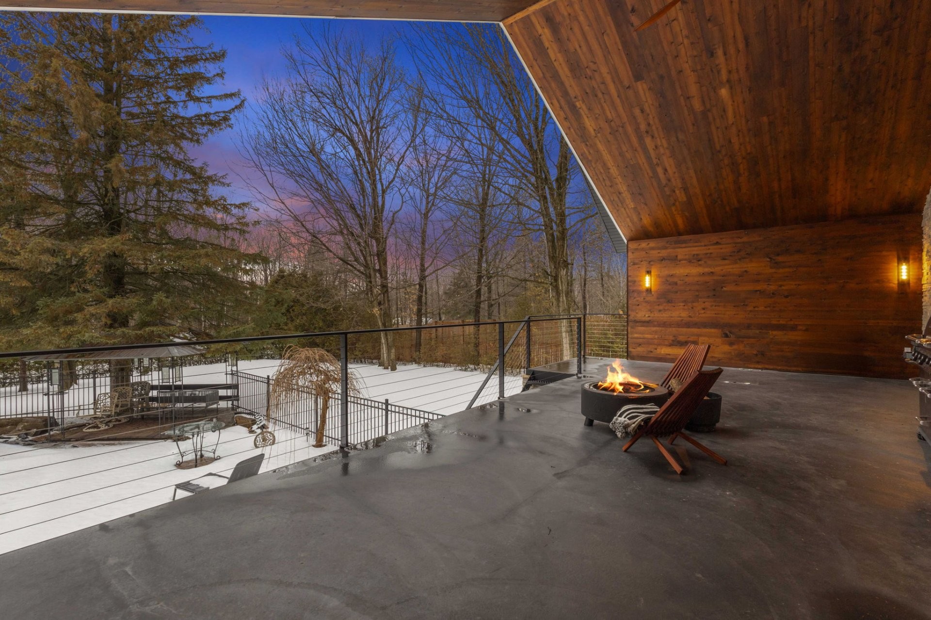 Bienvenue à Le Merle Noir. Cette propriété d'exception marie à la perfection la fonctionnalité familiale et le charme chaleureux d'un chalet de montagne - un refuge idéal pour les familles et les professionnels modernes à la recherche d'un style de vie unique, à seulement quelques minutes de la ville. Perchée au sommet du mont Rigaud, cette résidence sur mesure de 4 300 pi², nichée sur un terrain boisé de 34 000 pi², offre un espace de vie à aire ouverte, une grande salle voûtée avec foyer, un balcon chauffant, des jardins paysagers et une piscine avec gazebo -- tous soigneusement conçus pour recevoir, se détendre et vivre en parfaite harmoni